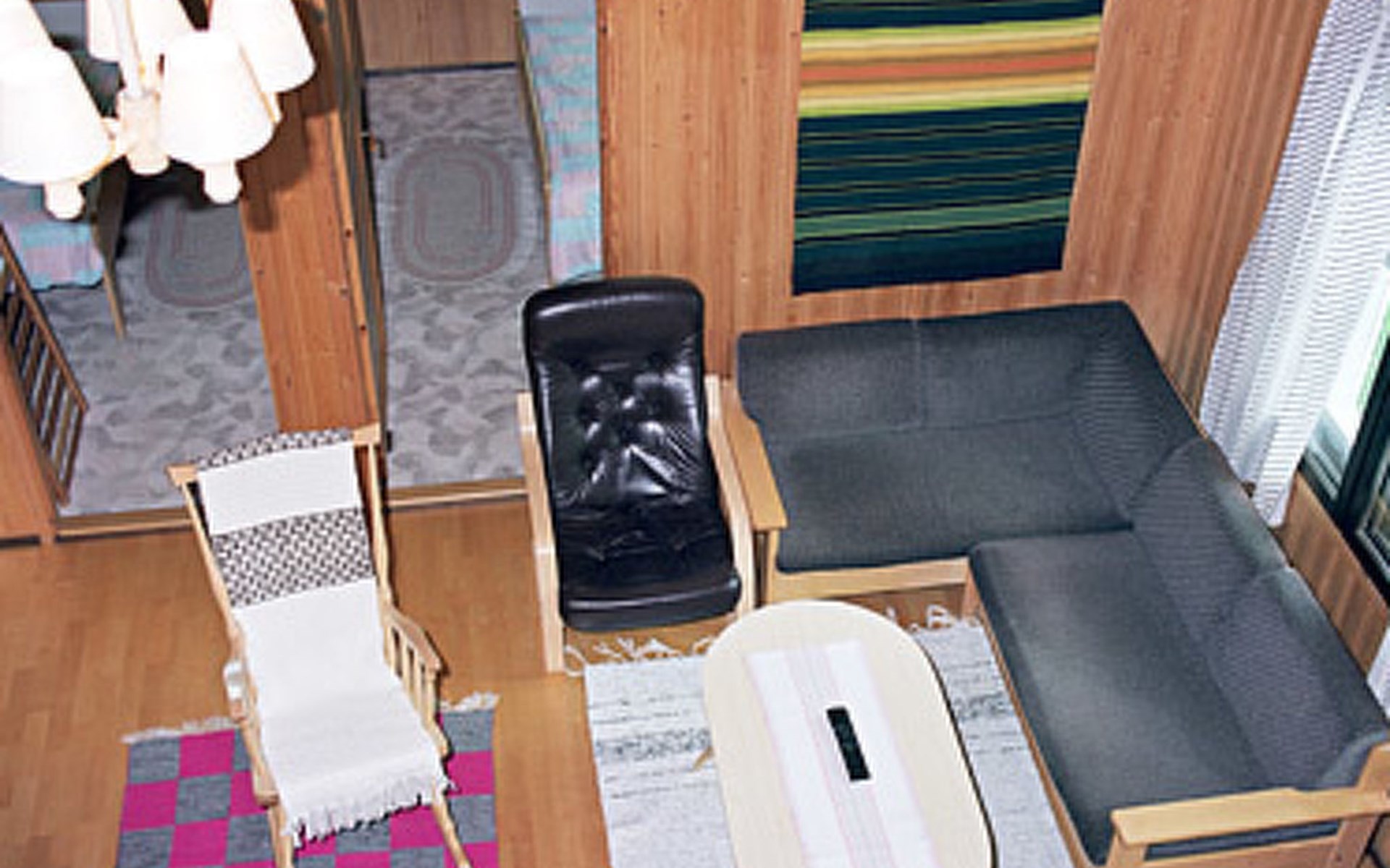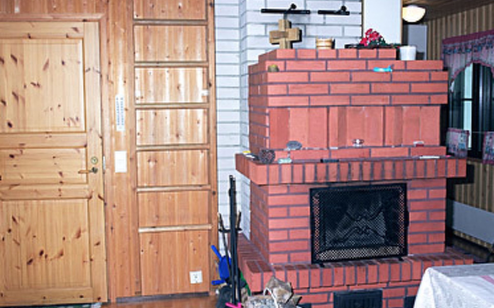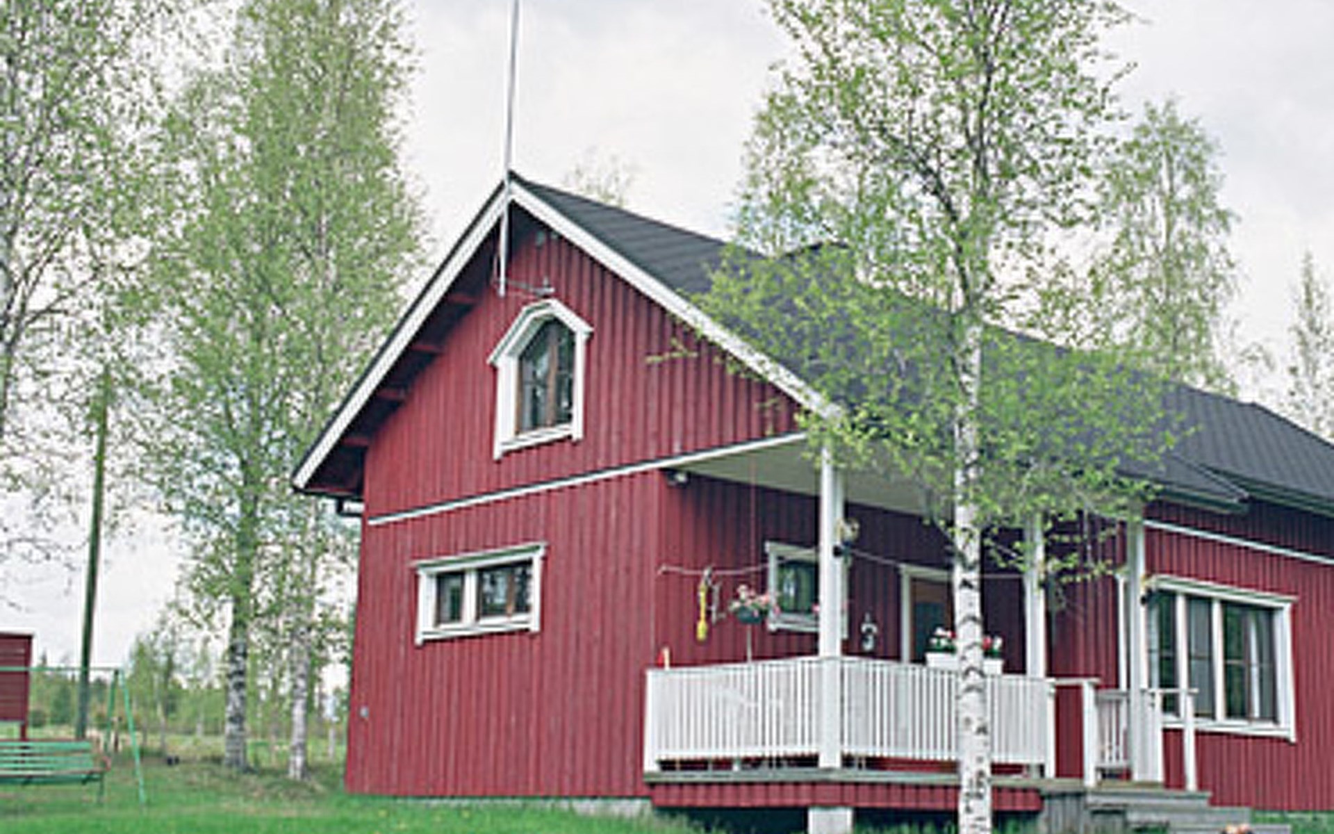 Wooden cottage 1990, 58 m² + 40 m², cooking corner, living room, 2 bedrooms double bed in each, sleeping loft 4 beds, second loft with 2 beds (ladder to this loft). Washroom, sauna (electric stove), open porch.