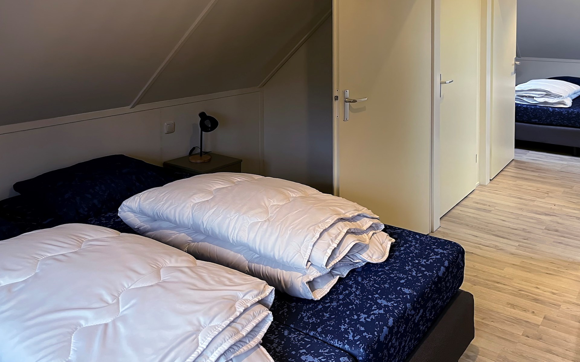 The Schoonhoven 4 bungalow at Summio Villaparc Schoonhovenseland is suitable for up to 4 people. This detached bungalow has 2 bedrooms and 1 bathroom, spread over 2 floors. The living room is located on the ground floor and is furnished with a comfortable seating area and a television with streaming capability. The living room adjoins the open kitchen with a dining area. The kitchen is equipped with a refrigerator, combination microwave, Nespresso machine, kettle, and dishwasher. This floor also has air conditioning. The bathroom on the ground floor has a bath, shower and washbasin. There is also a separate toilet. There are 2 bedrooms on the first floor. Each bedroom has 2 single box-spring beds. Schoonhoven 4 has a spacious garden with a furnished terrace and a parasol. The bungalow also has an external storage room and a charging point for electric bicycles.You can make use of free Wi-Fi and there is parking for up to two cars at the accommodation. There are also central parking spaces in the park.