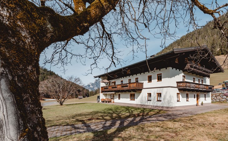 St. Martin bei Lofer: Fantastic, quiet location! Beautiful high valley hiking trails start from the house. Private spring 300 m away. The host owns an alpine hut in Leogang, ideal for hikes. Dogs are not allowed in the accommodations. Cosy, comfortable farmhouse "Weissbachergut", 2 storeys, surrounded by trees and meadows. In the resort 2.5 km from the centre of St. Martin bei Lofer, in a quiet, sunny position, 4.5 km from the skiing area. For shared use: garden. In the house: central heating system. In Winter: please take snow chains. Parking at the house. Shop 2.5 km, restaurant 2.5 km, bakery 2.5 km, café 2.5 km, bus stop 2 km. Golf course (18 hole) 41 km, gondola lift 4.5 km, skisport facilities 4.5 km, ski rental 4.5 km, ski school 4.5 km. Nearby attractions: Kneippanlage St. Martin 3 km, Festung Kniepass 12 km, Triassic Park 15 km. Well-known ski regions can easily be reached: Almbahn I 4 km, Steinplatte-Waidring 12 km, Leogang-Saalbach-Hintergelmm 25 km. Please note: the owner lives in the same residence.