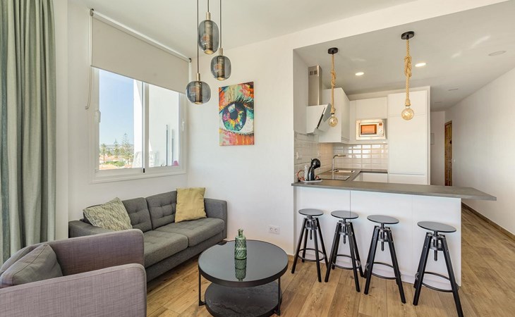 El Cotillo impresses with its charm far away from mass tourism. The place is a paradise for surfers, offers ideal conditions for a wide range of water sports and enchants with its authentic flair. In the immediate vicinity of the flats there are small shops for everyday needs, restaurants and bars for culinary explorations and a picturesque beach landscape that invites you to linger. The "Balćon de Cotillo" complex itself is separated from the village by a dune, promising privacy and tranquillity.