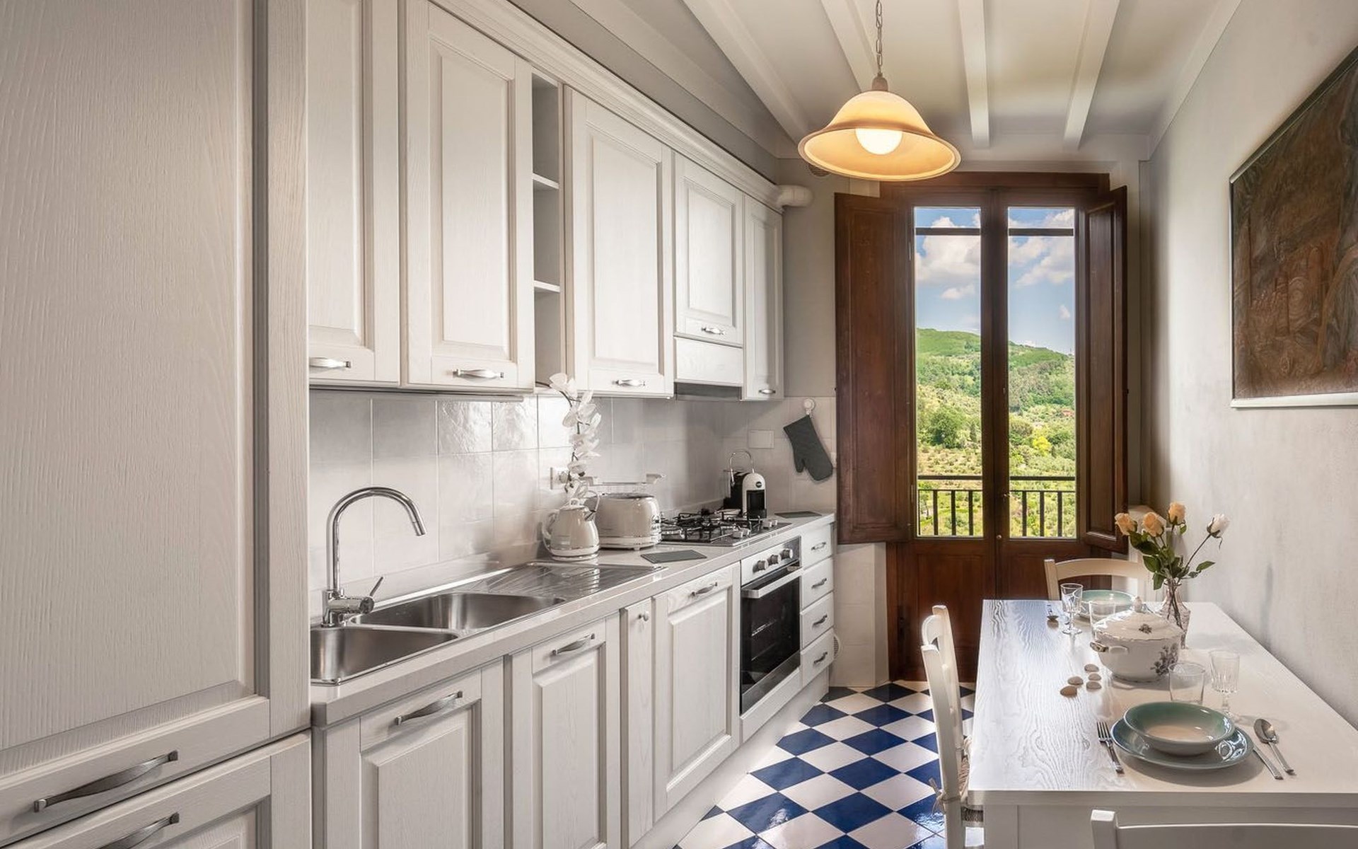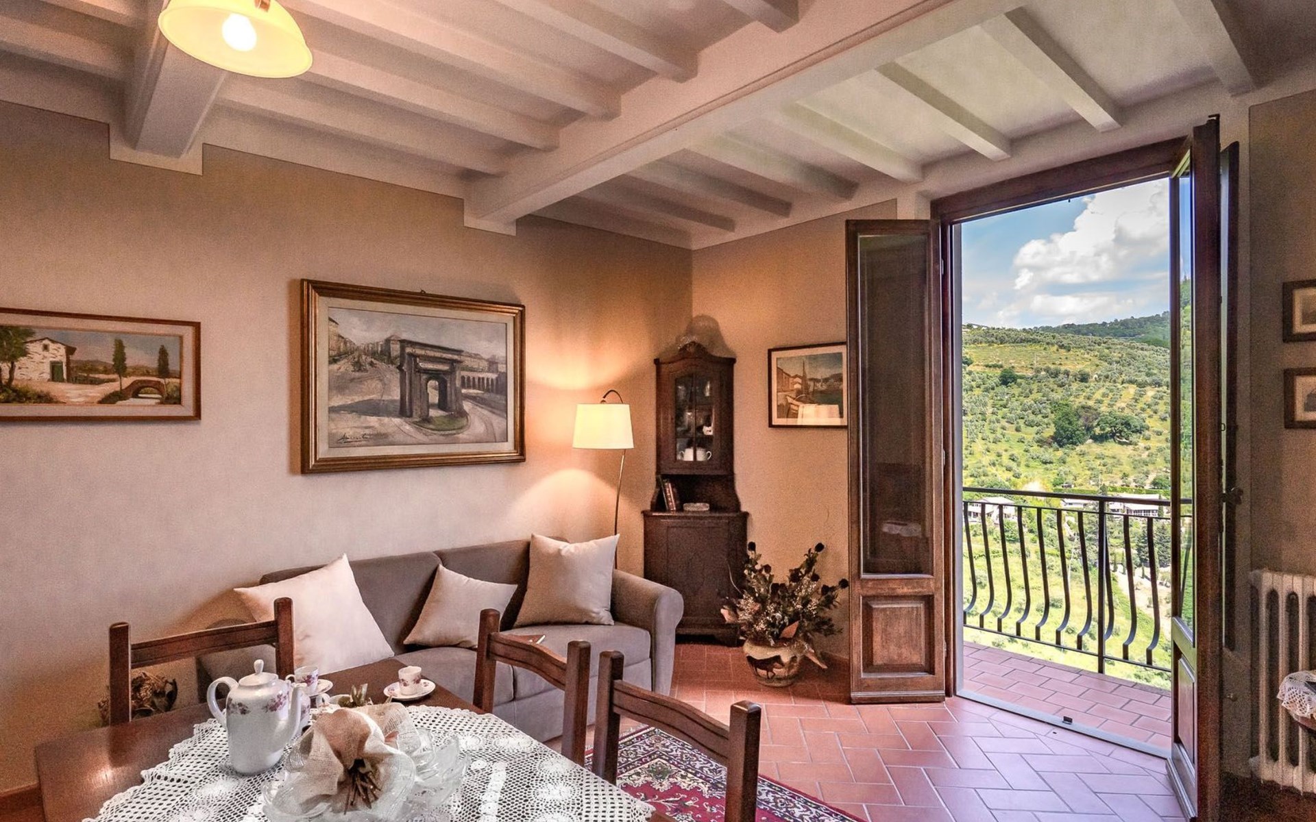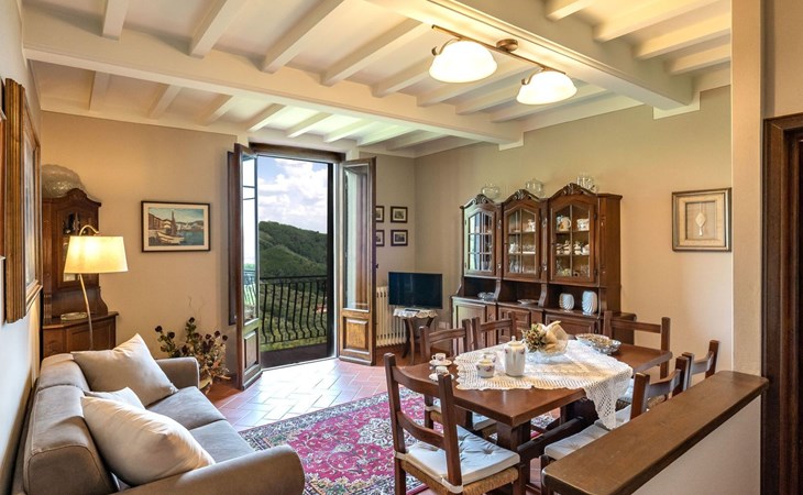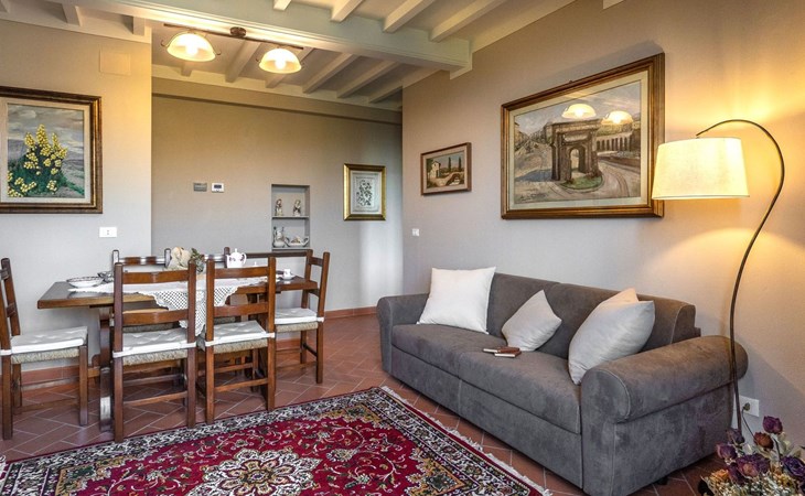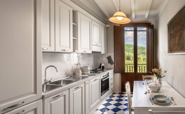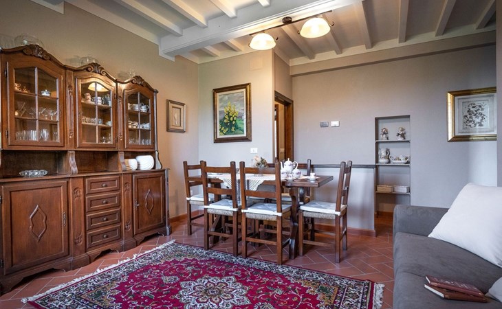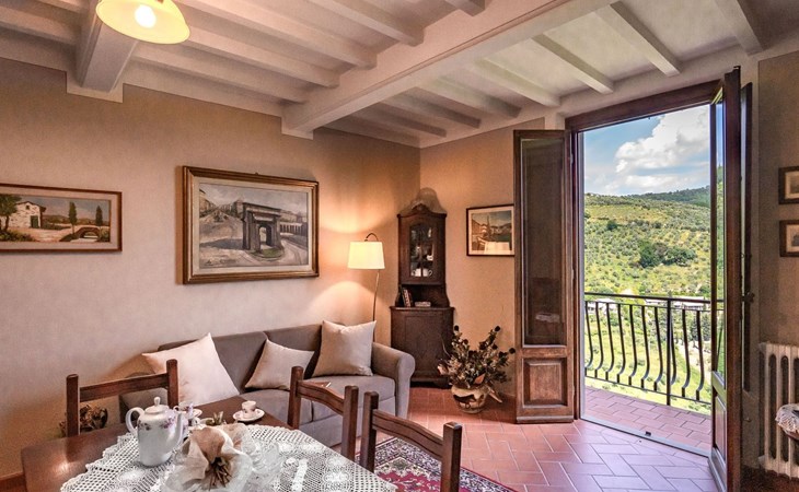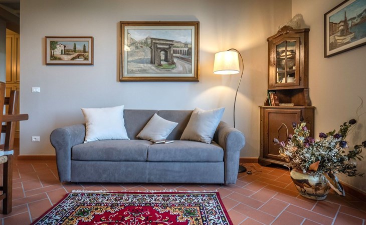 It consists of two bedrooms, one double and one single, bathroom, kitchen, living room and a terrace overlooking the valley below where the stream that gives the flat its name flows. The attention to detail and the services the house offers will make your holiday in Tuscany even more enjoyable. For a 'local' experience, sit at the bar-pizzeria in the village square about 50 metres from the property and feel part of the place.