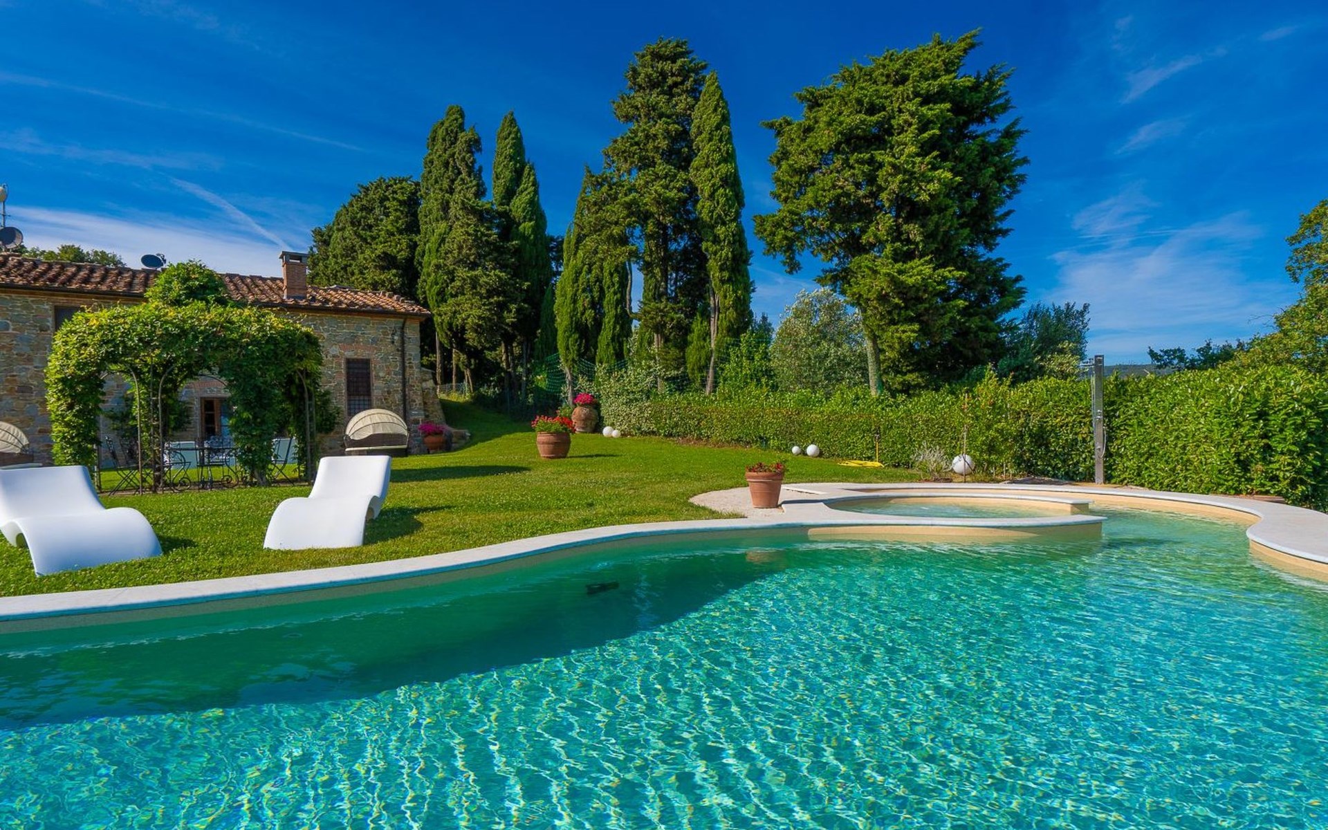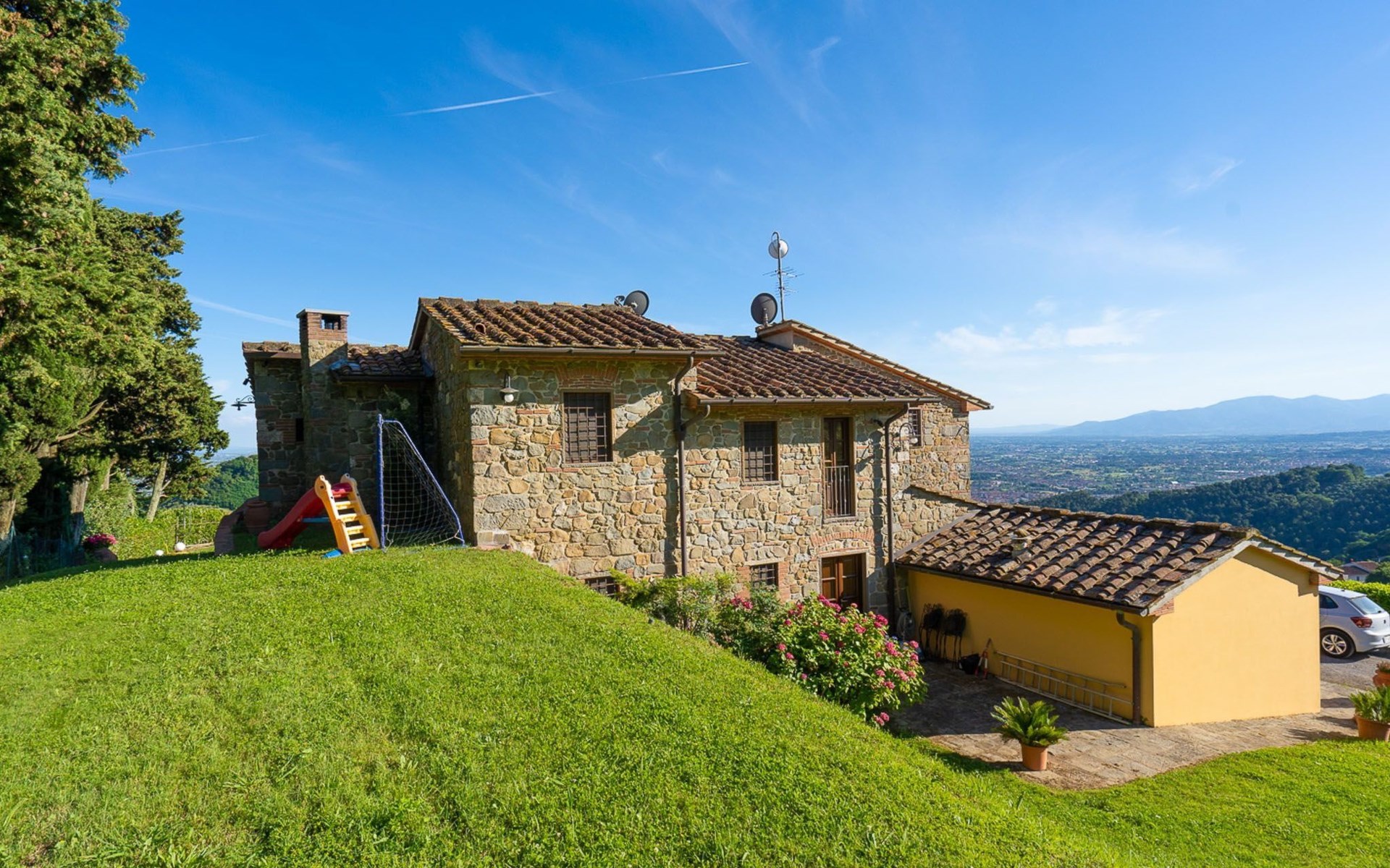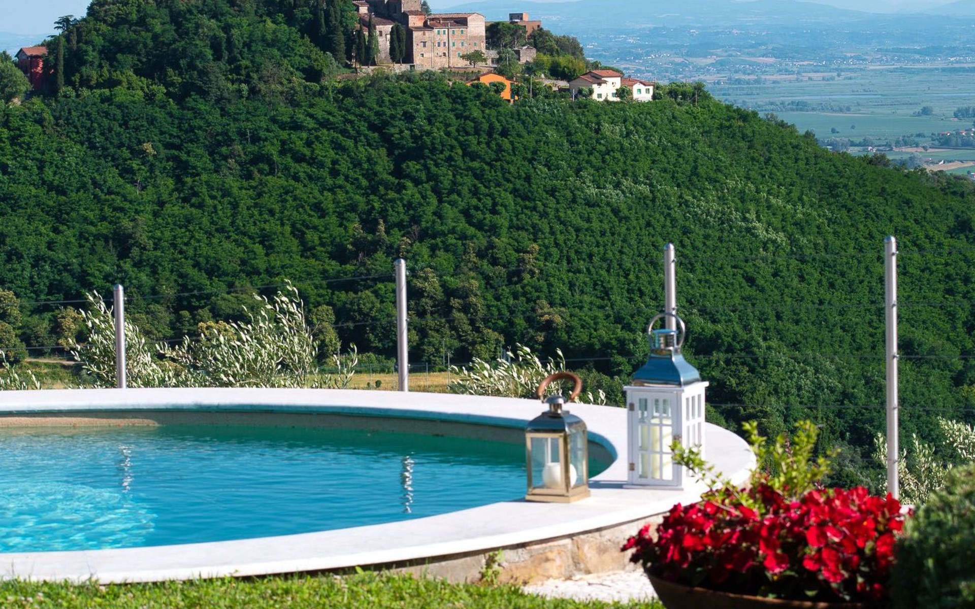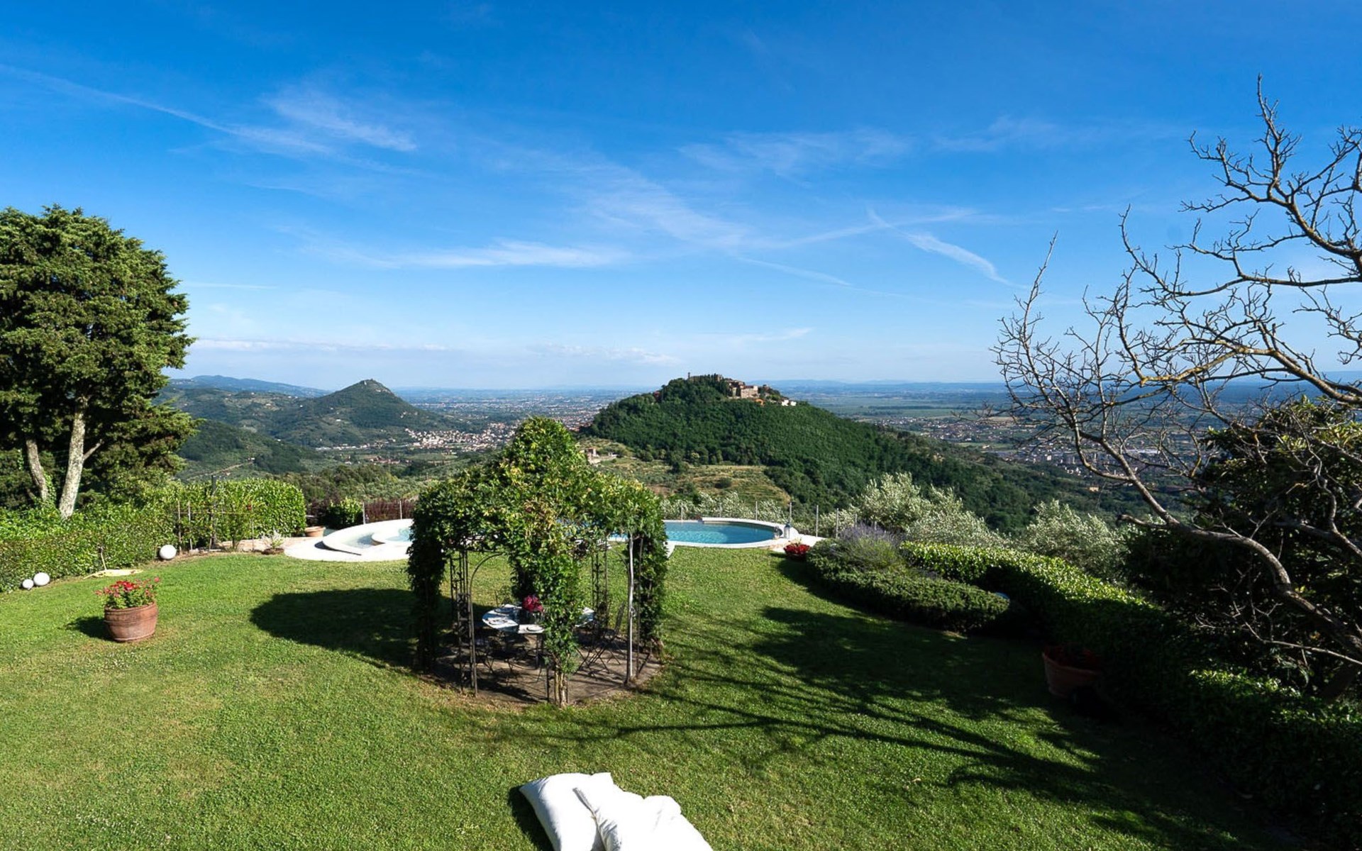 Elegant and comfortable, CASA LORETTA is located on the hills of Montecatini Terme a few kilometers from Lucca. The medieval village of Montecatini Alto can be reached in a few minutes. Florence, Pisa, Pistoia, San Gimignano, Forte dei Marmi are less than an hour away by car. In 1 hour and 30 minutes you’ll be at the famous Cinque Terre close to La Spezia.