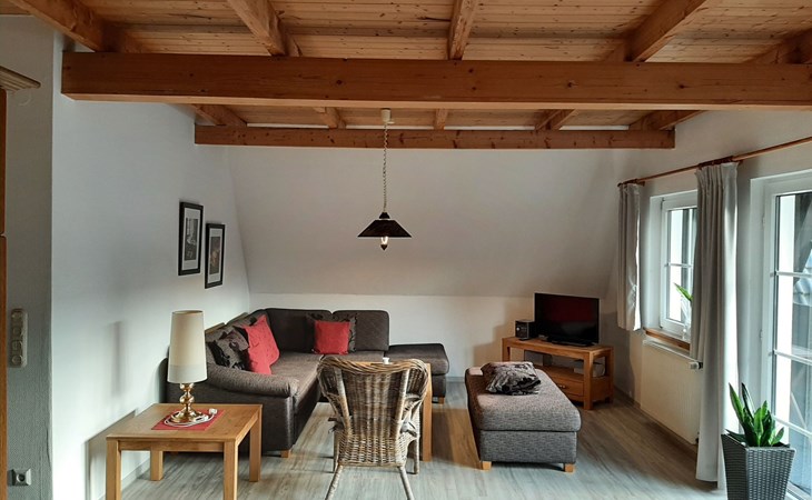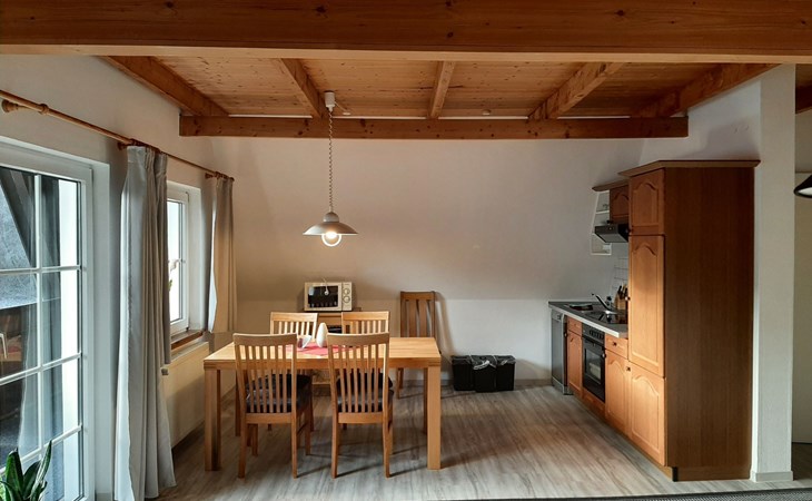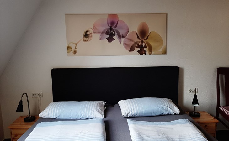 Each of our type B holiday flats is lovingly and functionally furnished for 2-4 people. On a generous 65 square metres you will find two bedrooms with comfortable double beds, a fully equipped kitchen and practical amenities such as a washing machine and tumble dryer. The cosy dining area invites you to enjoy meals together, while the bathroom with shower and WC leaves nothing to be desired. The furnished balcony with a view of our well-tended garden also provides the perfect setting for relaxing hours outdoors.
