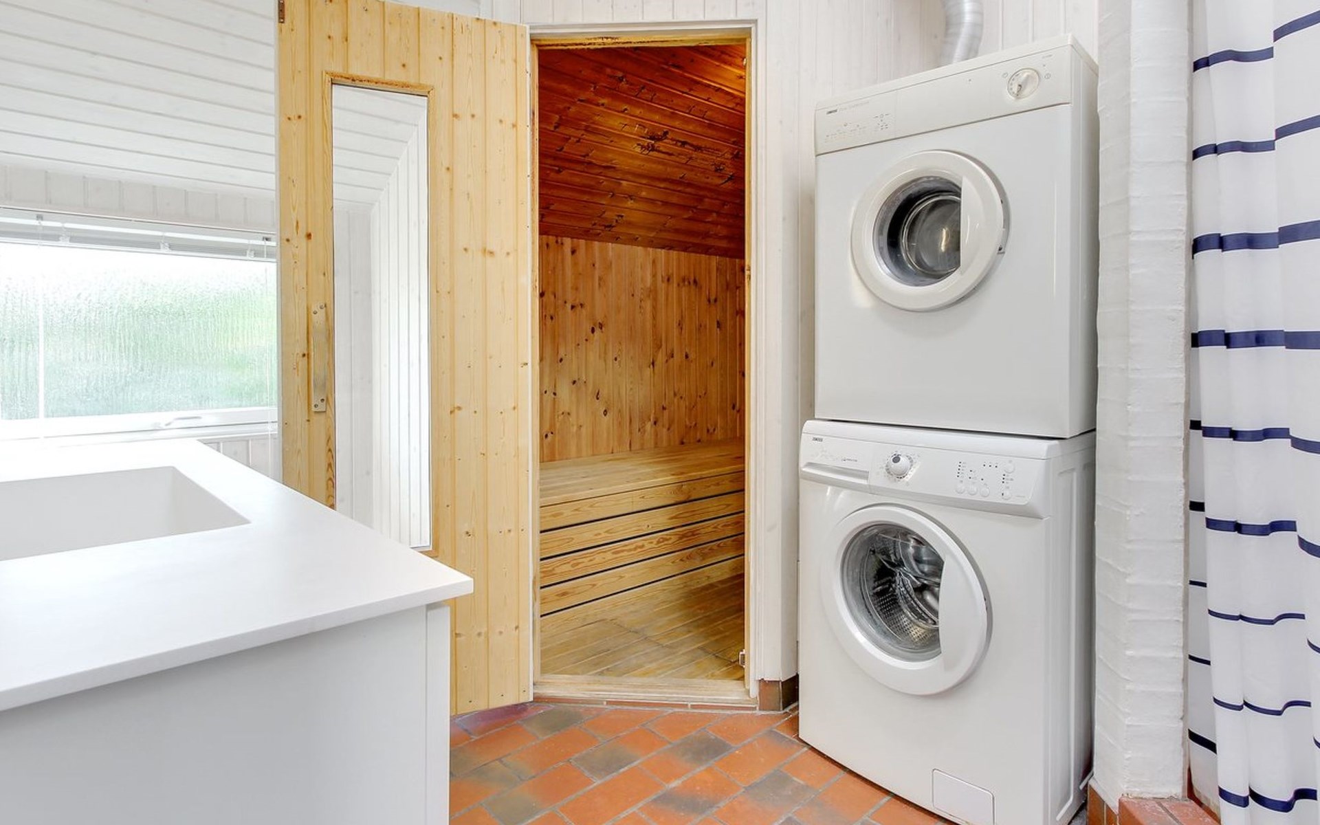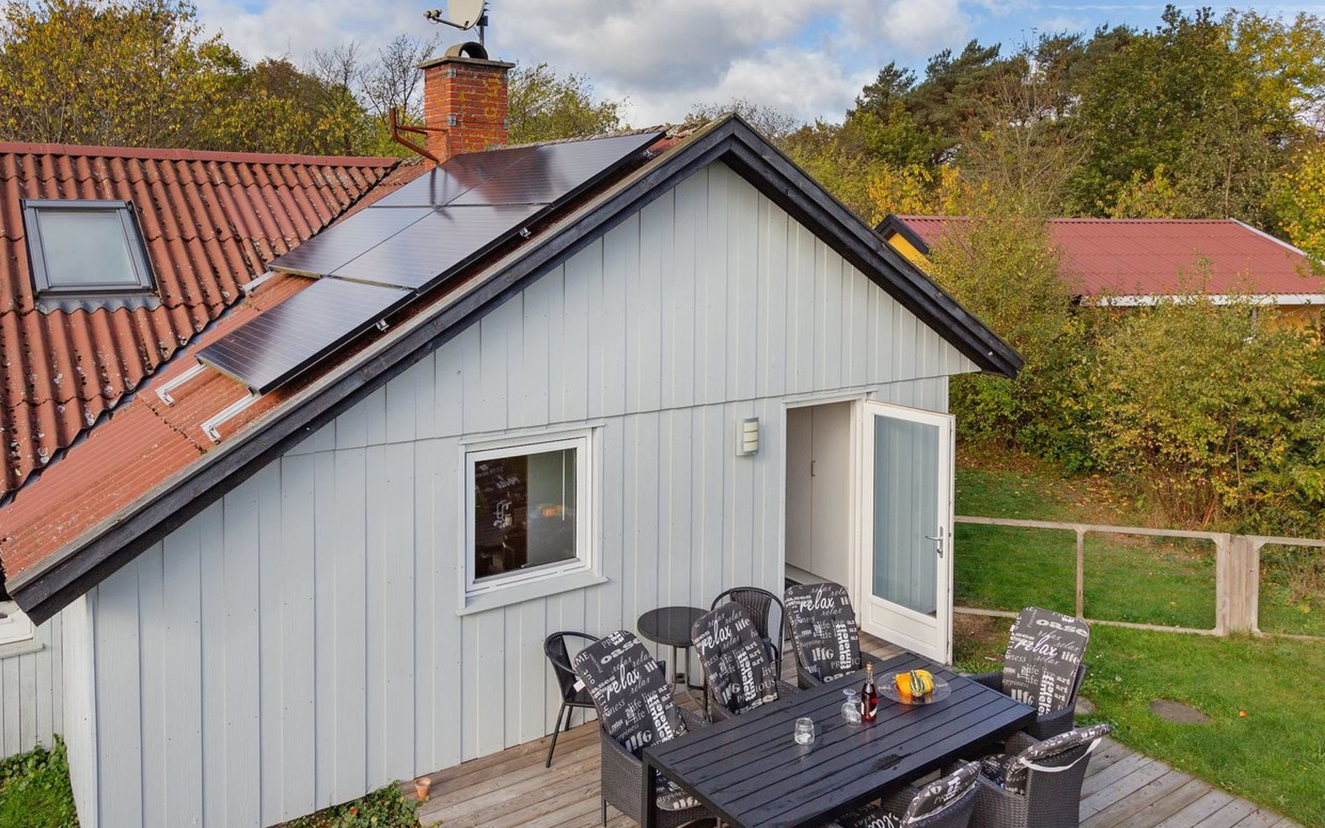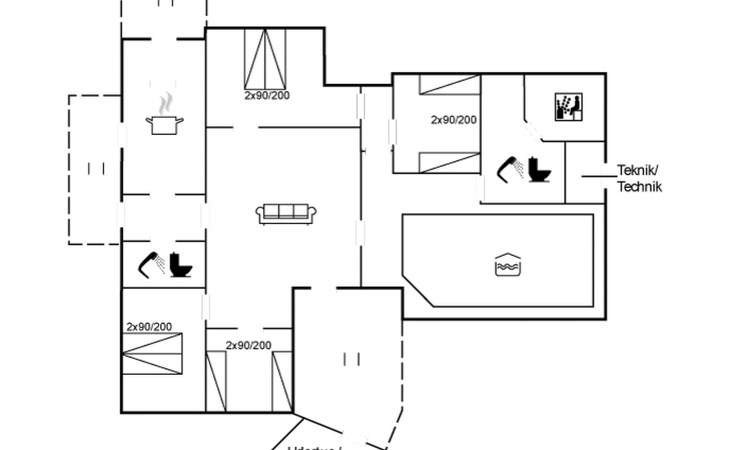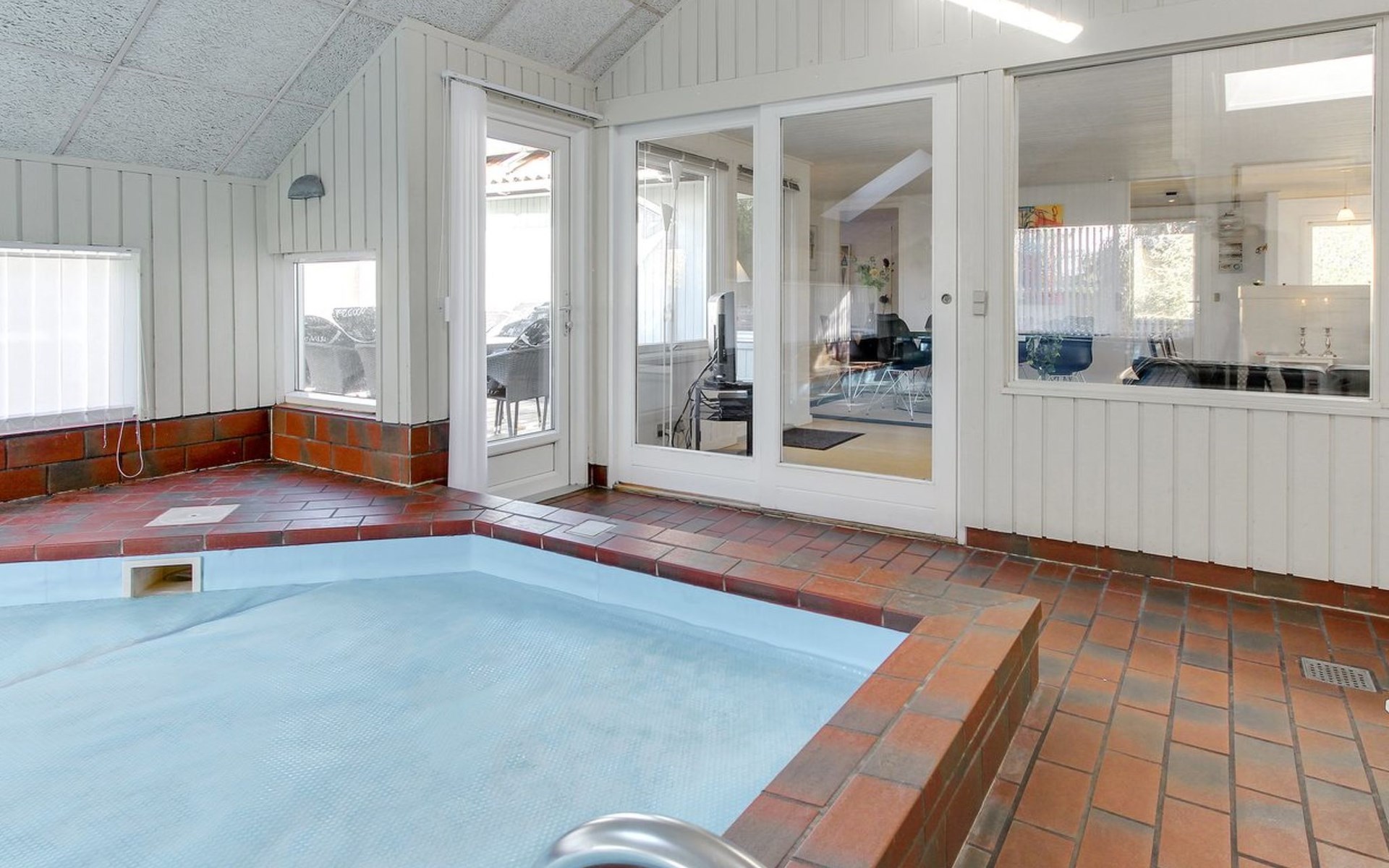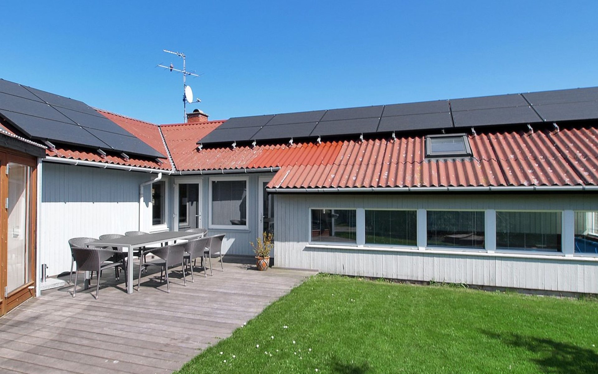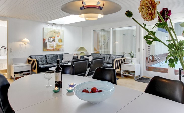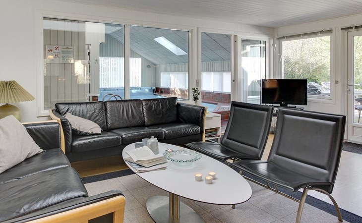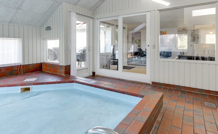Single-family house, built in 1985. 400 m from the sea. For shared use: garden. Private: natural state property 1'360 m2, garden (fenced), indoor pool (3 x 6 m, 18 m2, depth 120 - 120 cm). Terrace (52 m2), children's playground. In the house: sauna, washing machine, tumble dryer. Parking at the house. Grocery 1.4 km. The owner does not accept any youth groups.