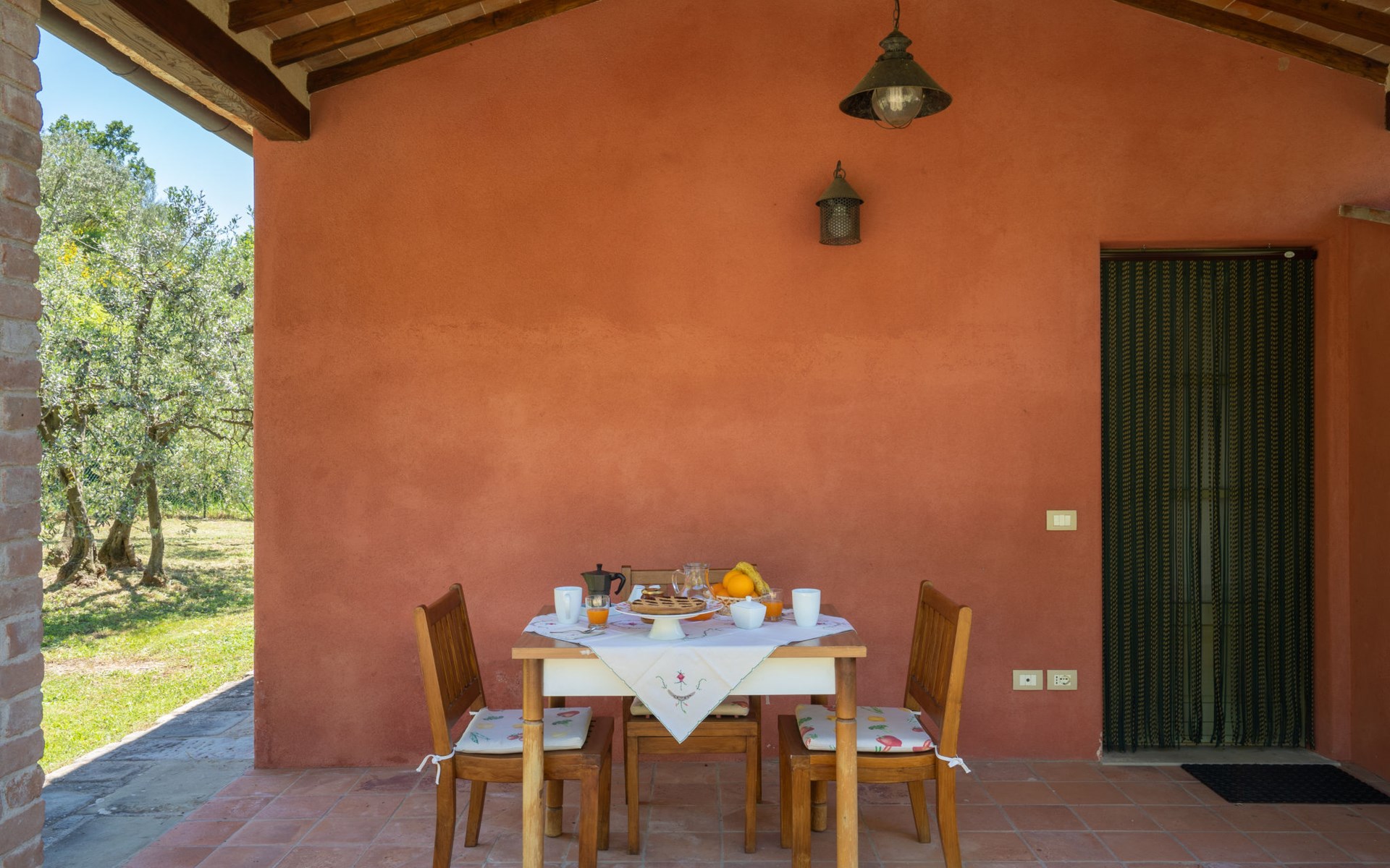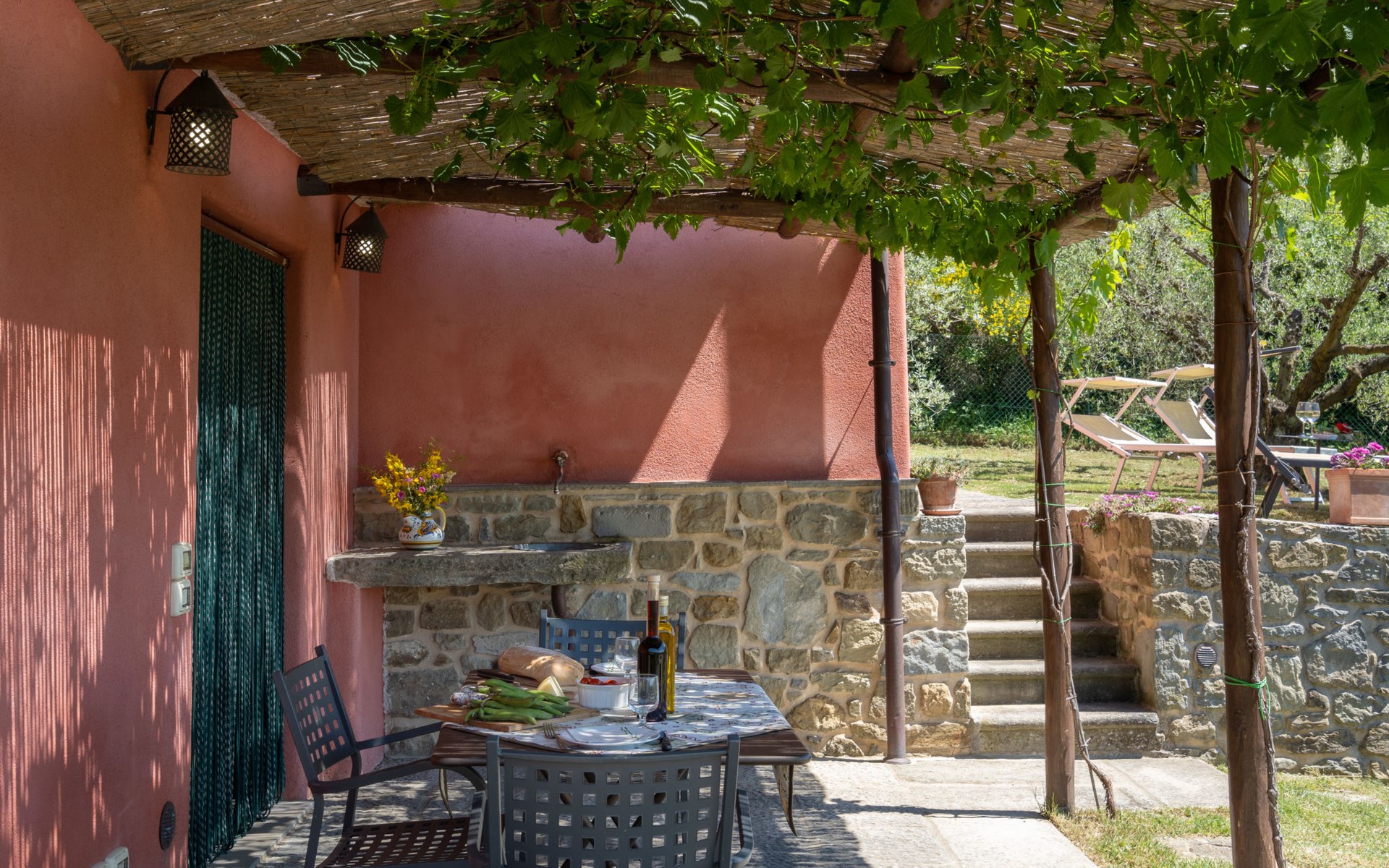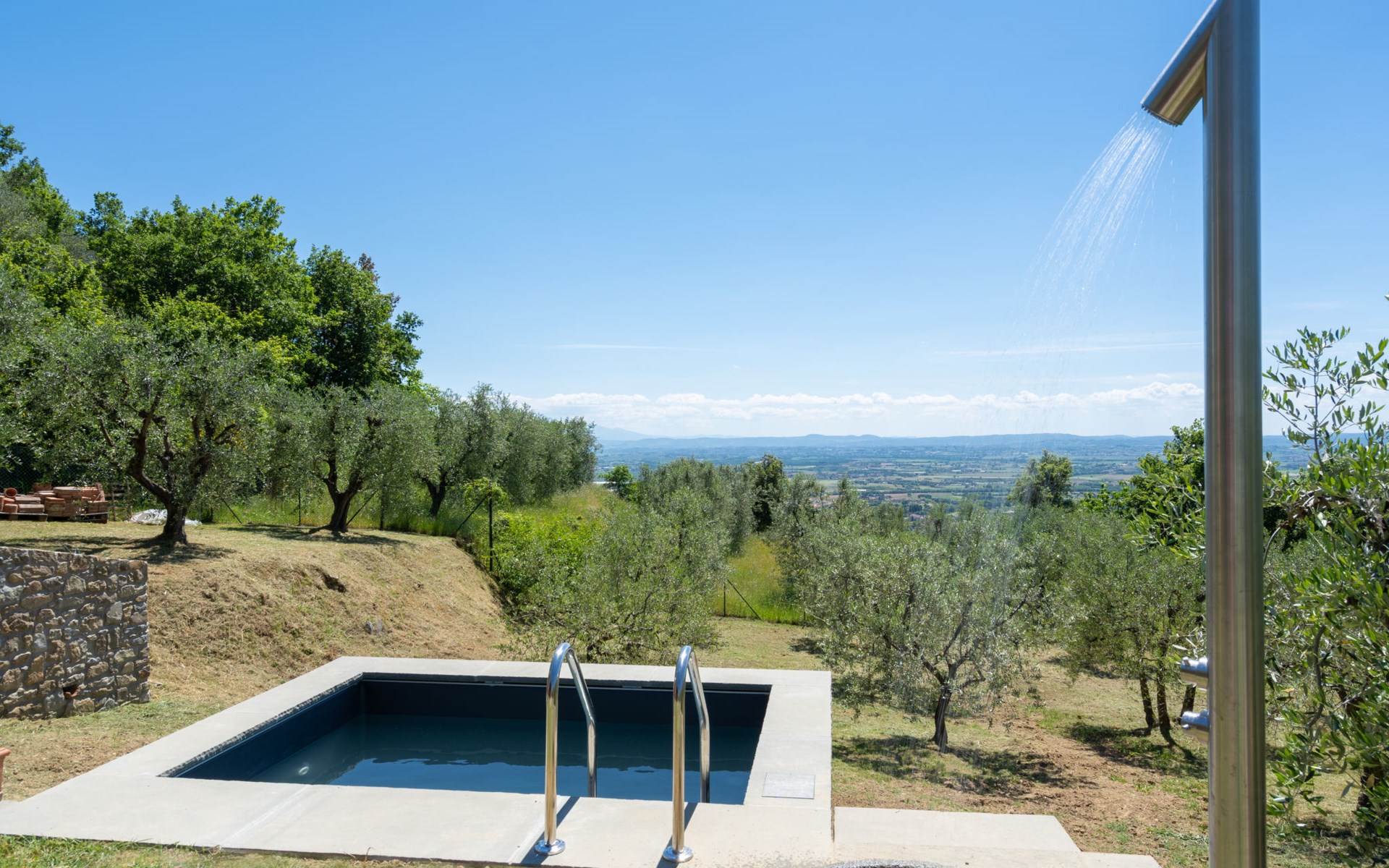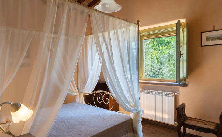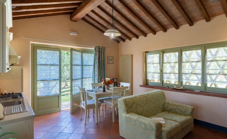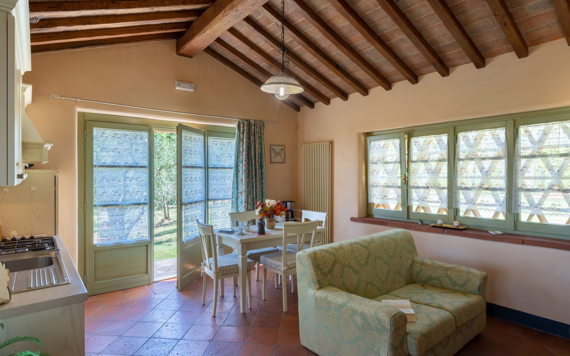 "rustico" cottage "Nido del Sorbino", 460 m a.s.l.. 4 km from the centre of Castiglion Fiorentino, 15 km from the centre of Arezzo, in an elevated position on a slope, 35 km from the lake. Private: property 2'000 m2 (fenced), terraced garden, natural garden, swimming pool (3 x 2 m, depth 140 cm, seasonal availability: 01.May. - 30.Sep.). In the house: WiFi. Narrow motor access (200 m via unmade road). Parking on the premises. Shop 1.5 km, supermarket 2 km, bus stop 1 km, railway station "Castiglion Fiorention" 4 km, sandy beach "Castiglione della Pescaia" 160 km, bathing lake "Trasimeno" 35 km. Golf course (18 hole) 15 km. Nearby attractions: Cortona 15 km, Firenze 100 km, Valdichiana Outlet Village 25 km. Please note: car recommended.