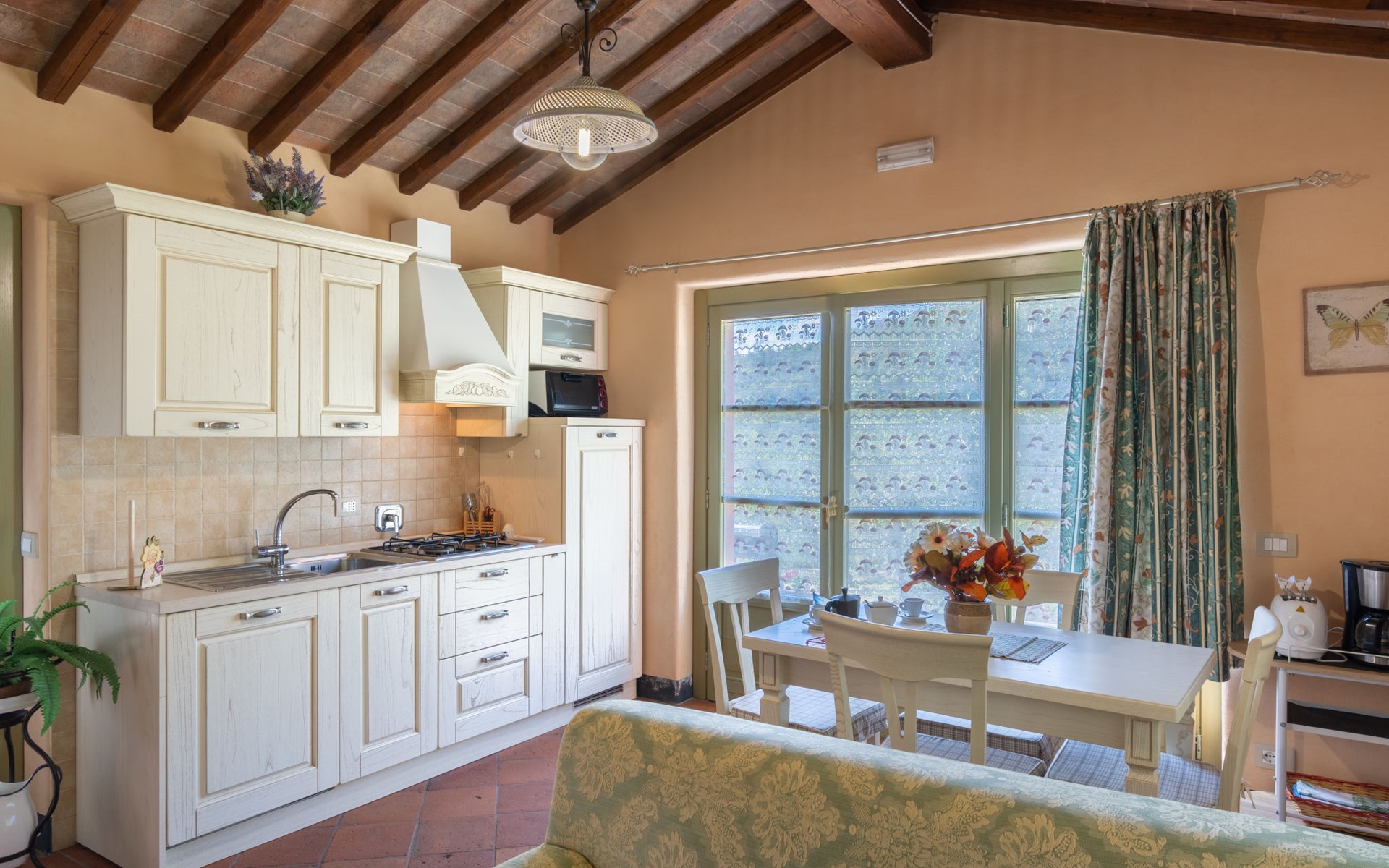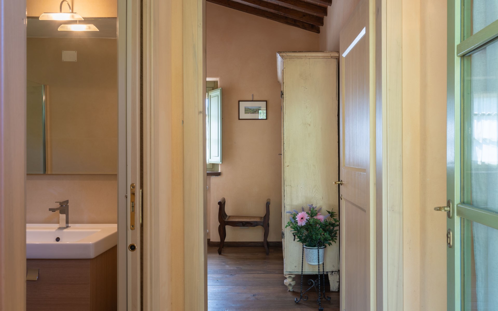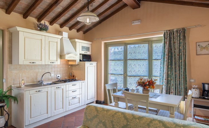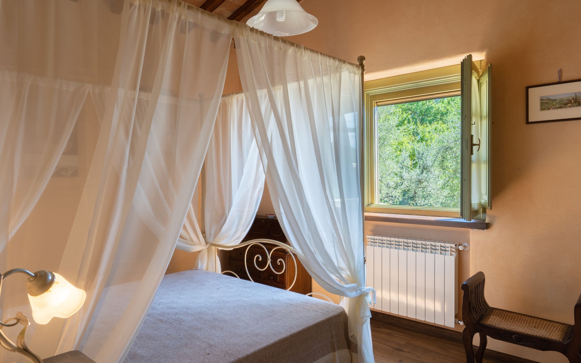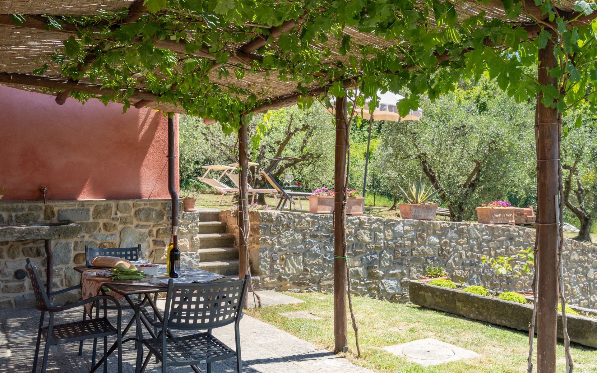 "rustico" cottage "Nido del Sorbino", 460 m a.s.l.. 4 km from the centre of Castiglion Fiorentino, 15 km from the centre of Arezzo, in an elevated position on a slope, 35 km from the lake. Private: property 2'000 m2 (fenced), terraced garden, natural garden, swimming pool (3 x 2 m, depth 140 cm, seasonal availability: 01.May. - 30.Sep.). In the house: WiFi. Narrow motor access (200 m via unmade road). Parking on the premises. Shop 1.5 km, supermarket 2 km, bus stop 1 km, railway station "Castiglion Fiorention" 4 km, sandy beach "Castiglione della Pescaia" 160 km, bathing lake "Trasimeno" 35 km. Golf course (18 hole) 15 km. Nearby attractions: Cortona 15 km, Firenze 100 km, Valdichiana Outlet Village 25 km. Please note: car recommended.