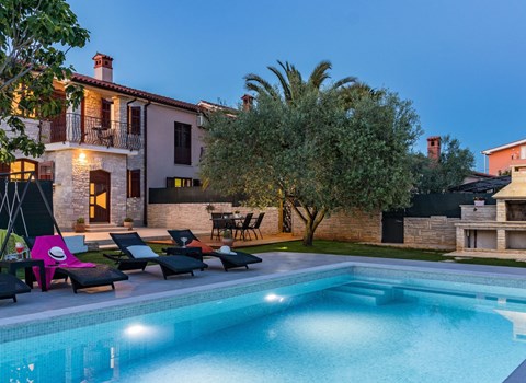 Each apartment has a balcony and free Wi-Fi , air-conditioned and have satellite TV . The apartments are equipped for self-catering , and the hosts are always at your disposal . All guests have acces outdoor swimming pool and sun terrace in the garden . Heated pool will provide fun and somewhat colder months . The courtyard is completely enclosed by a fence and provides guests with privacy . In addition to the pool there is a barbecue , and the back yard playground and table tennis .