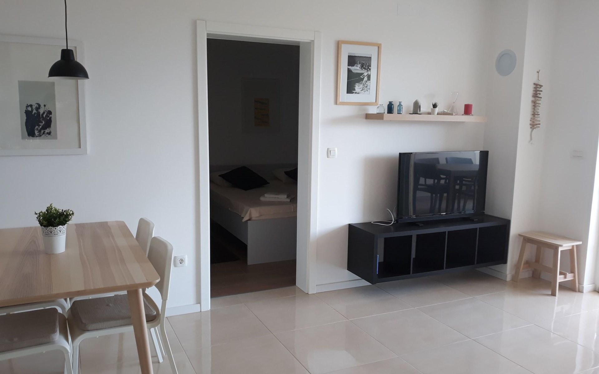 Venturing outside, the apartment’s prime location becomes evident. Just a leisurely stroll away, at approximately 400 meters, you'll find both the beach and the sea, promising endless water-related activities and relaxation under the sun. Additionally, the proximity to the town center means you're never far from a variety of dining and shopping options, as well as a grocery store for all your essentials, ensuring convenience throughout your stay.