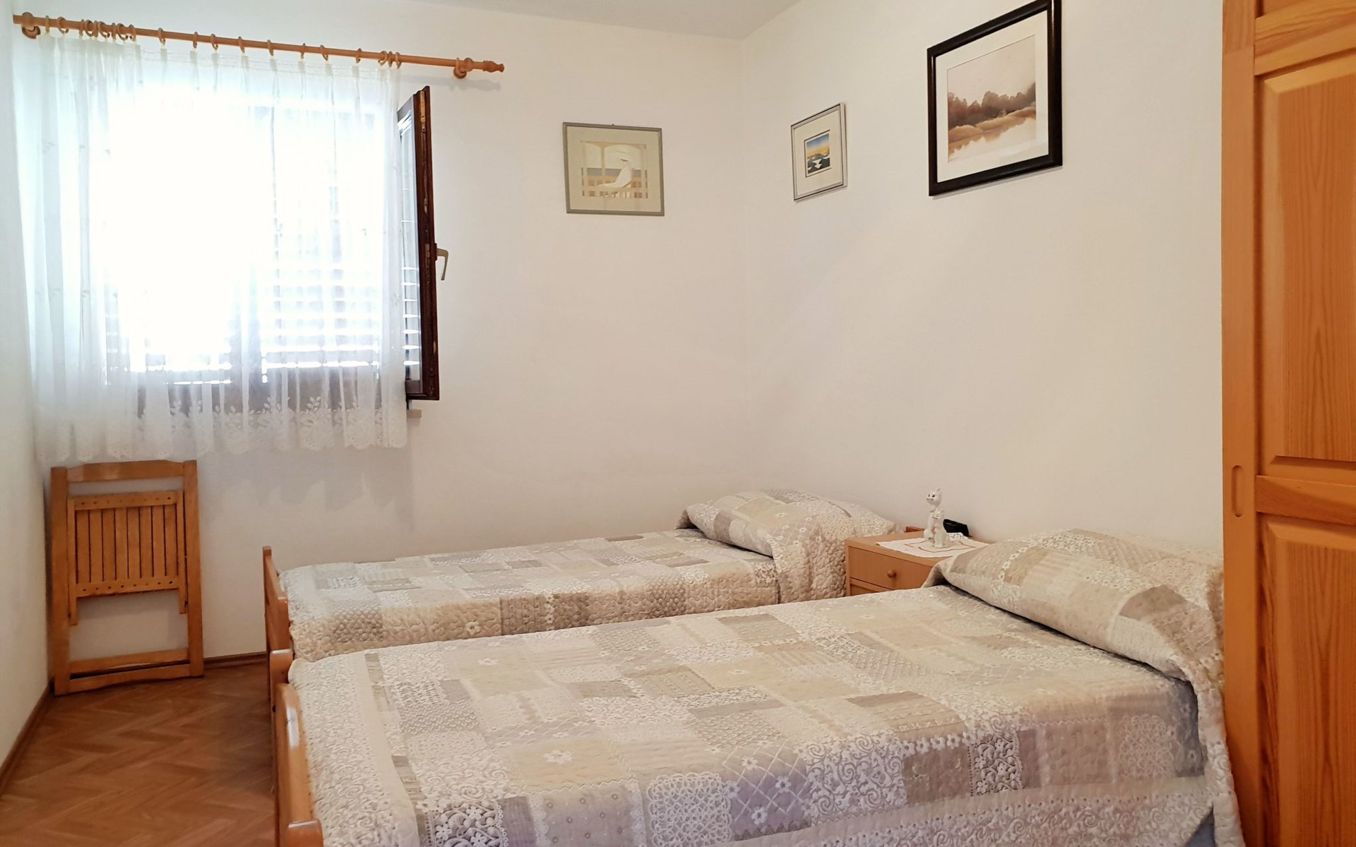 This two-bedroom apartment (60 m2, ***) i s located only 500 m from the sandy beach. The apartment has a balcony (10 m2), there is a possibility to barbecue, and you have free parking on the premises.