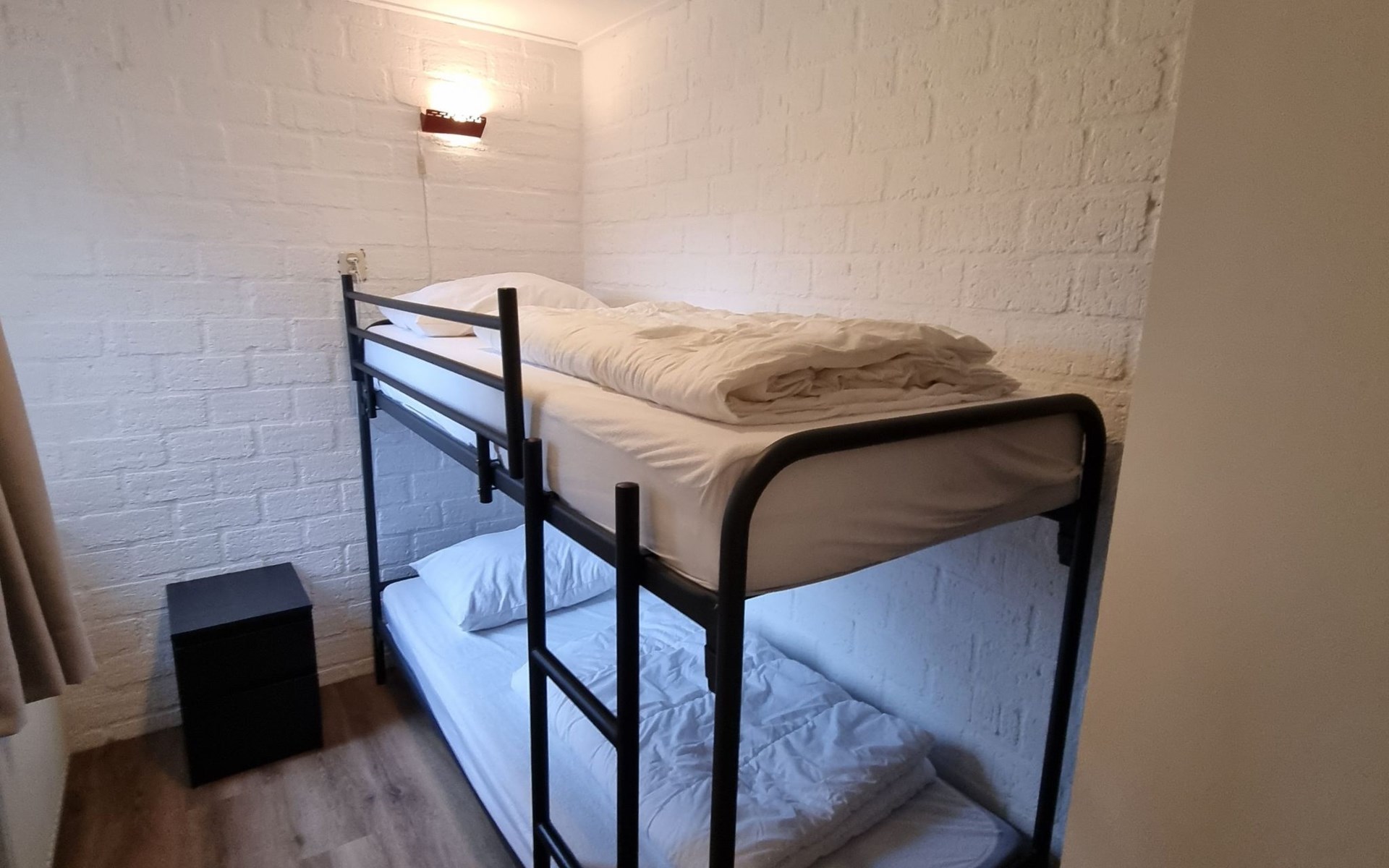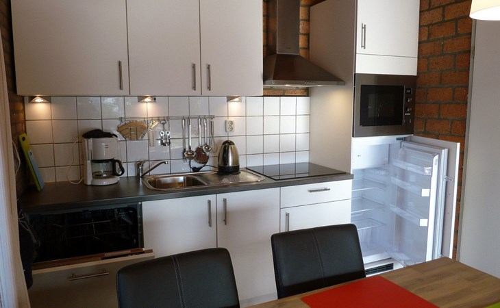The cottage has a hall, living room, kitchen and bathroom and three bedrooms. The open kitchen is equipped with an induction hob, fridge-freezer, microwave oven, toaster, coffee maker, kettle and a wide range of pans and cutlery, as well as a dining table with four chairs. The bathroom has a toilet, sink and shower. In the living room there is a 3-seater sofa and 2 armchairs, coffee table, a sideboard and there is a TV with digital reception, DVD player and a HIFI set are also present. The master bedroom has two beds and a wardrobe for your clothes. The second bedroom has a bunk bed and a wardrobe. The third bedroom has a single bed, a wardrobe and a desk.