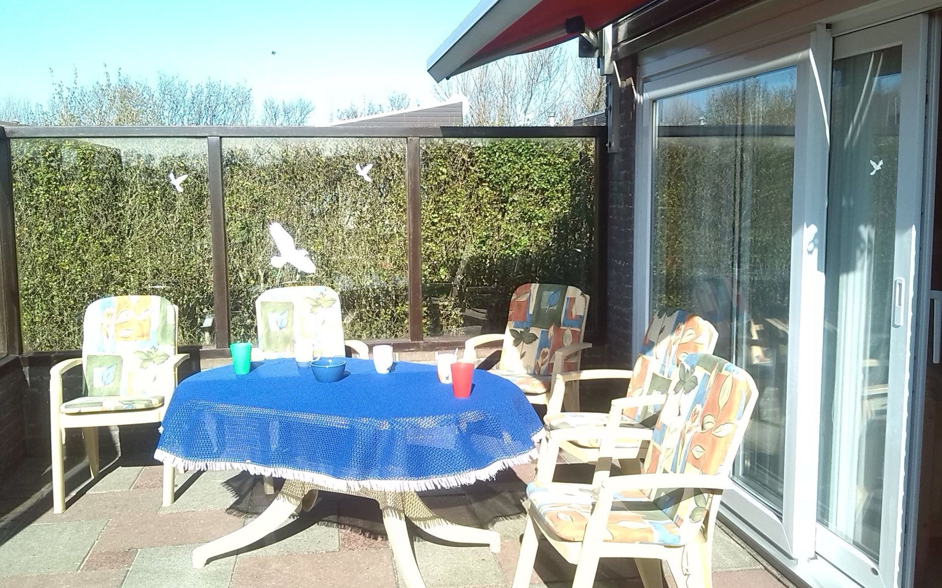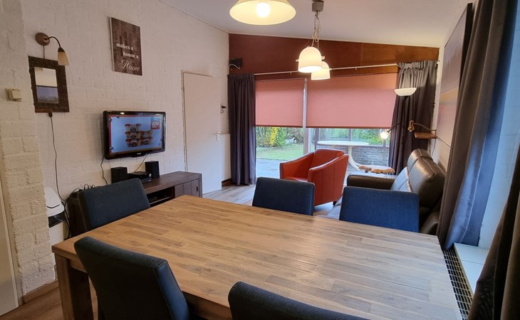 From the living room you access the sunny private terrace with garden furniture. If you are looking for shade, you can leave the awning down. There is also a storeroom with a wagon and enough space for your bicycles. The house has a spacious private garden and its own parking space.