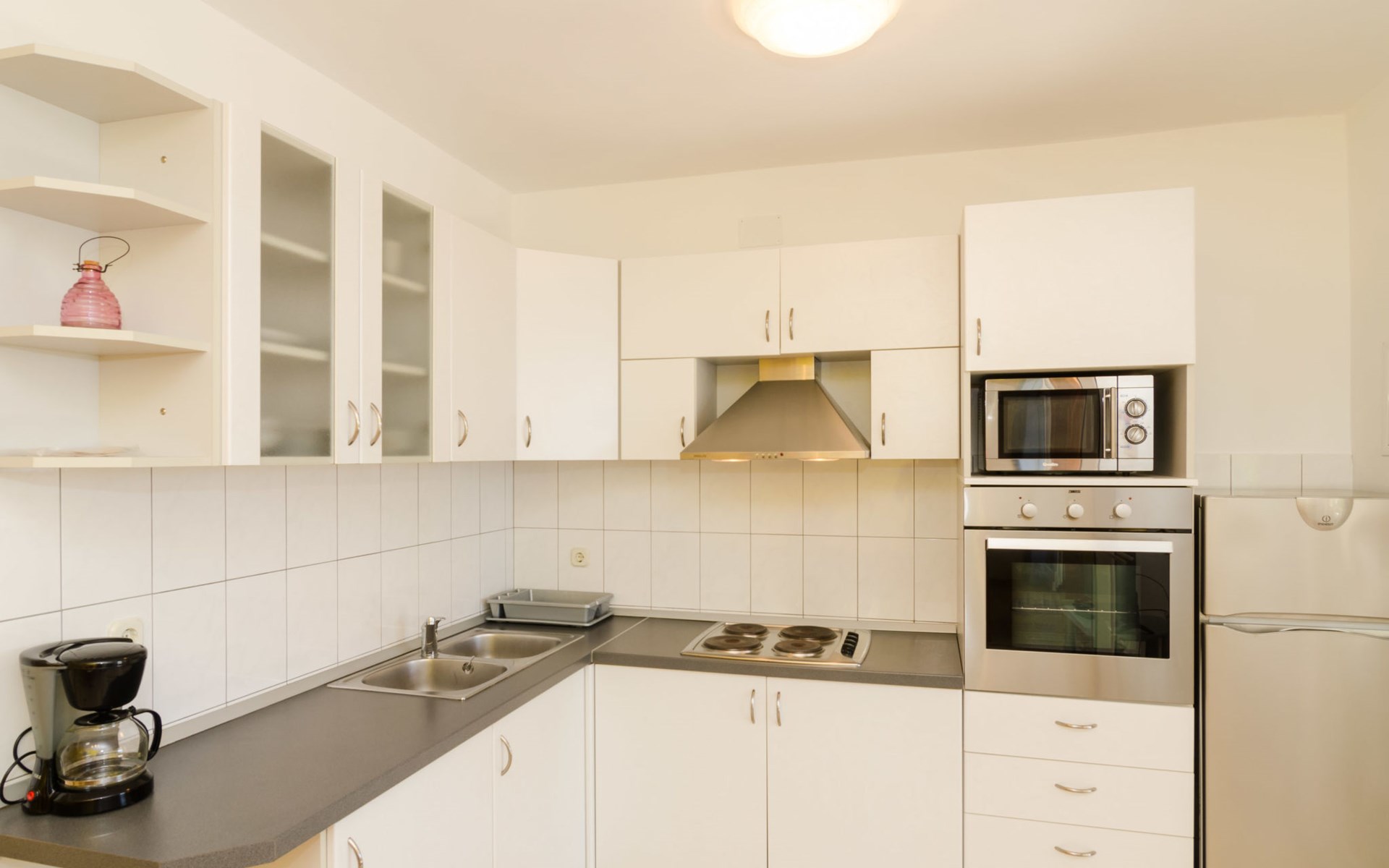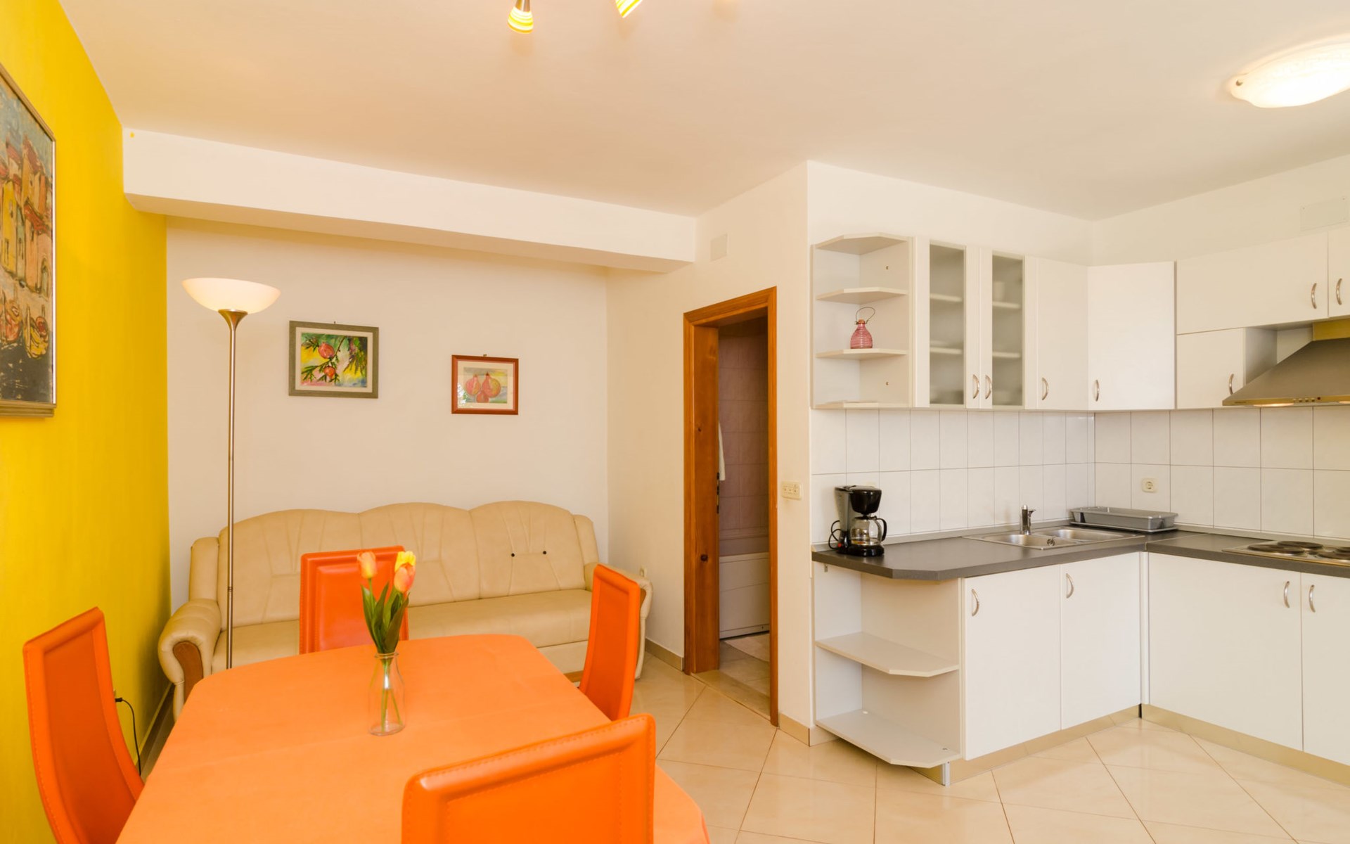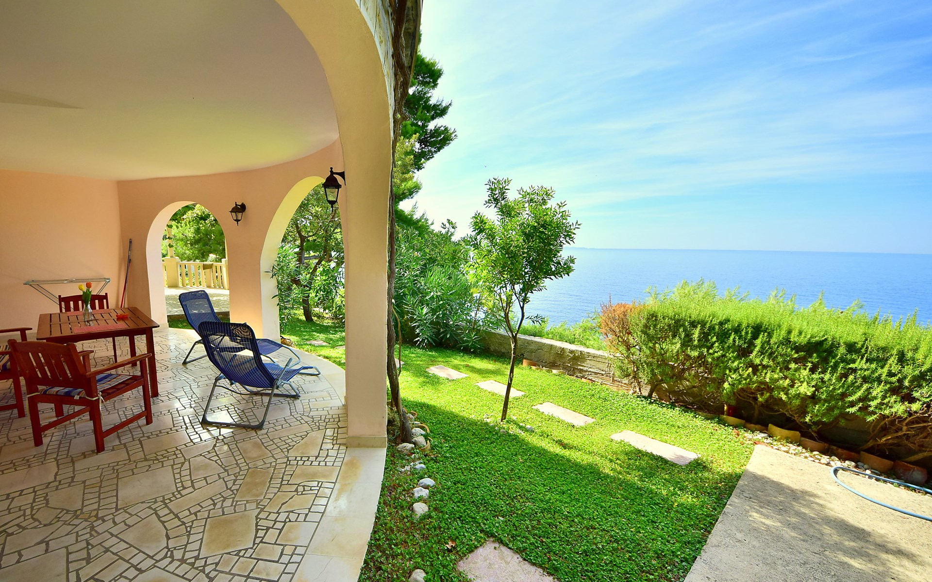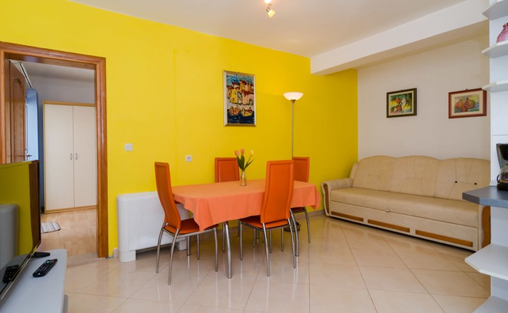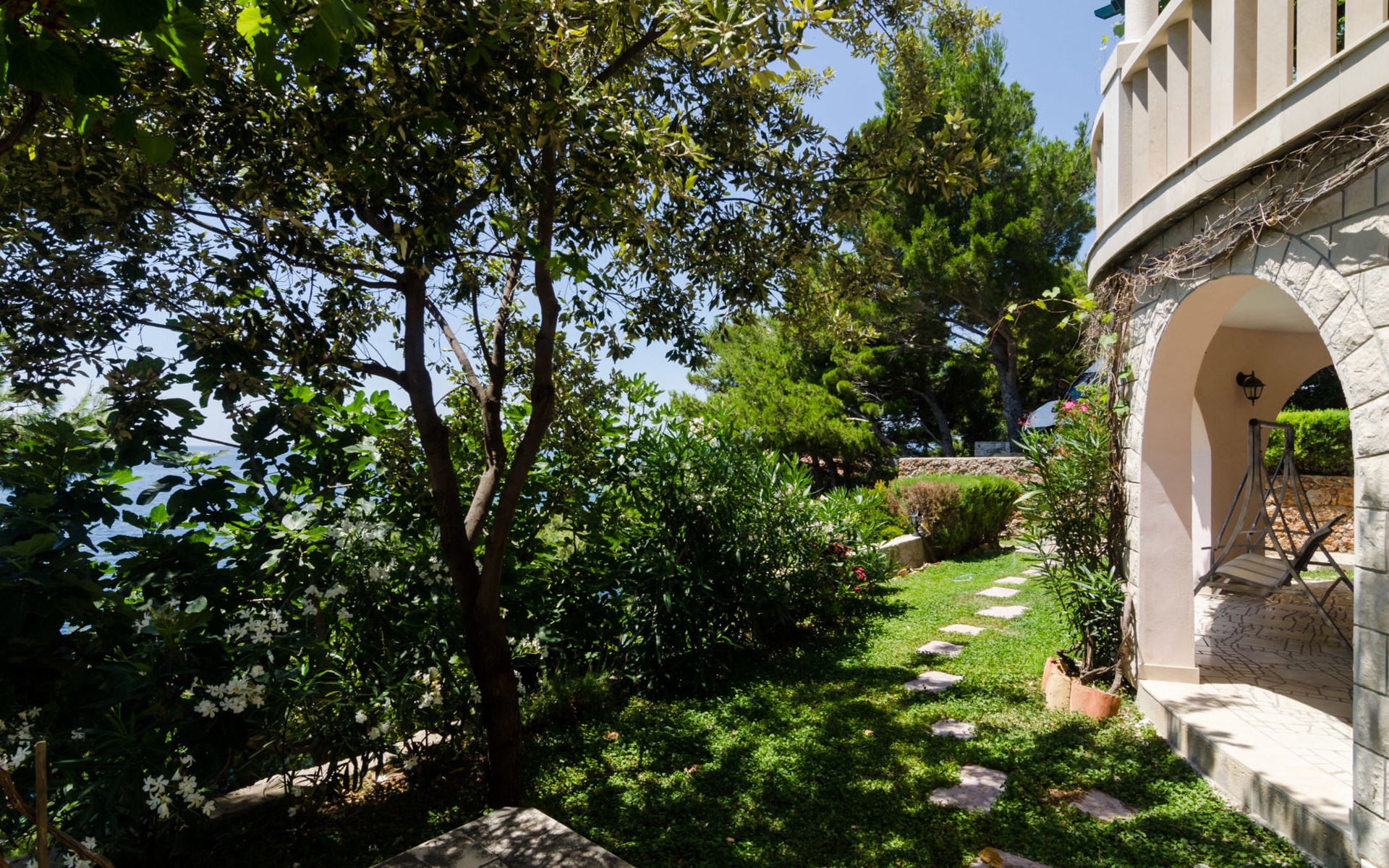 Dingač - Borak 5 km from Trstenik: Beautiful apartment house "Plavac Mali". Outside the resort, 4 km from the centre of Potomje, in a quiet, sunny position on a slope, 30 m from the sea, 30 m from the beach, in a cul-de-sac, in the countryside, south facing position. For shared use: outdoor shower, barbecue. In the house: internet access. Parking at the house on the premises. Shop 4 km, restaurant 30 m, bus stop 4.2 km, pebble beach 130 m, rocky beach 30 m. The restaurant 30m from the house opened from 20.06. - 01.09. Further restaurant in Trstenik, 5km from the house. In Borak renting of diving equipement and boat diving excursions. In Žuljana diving school, 24 km from Borak.