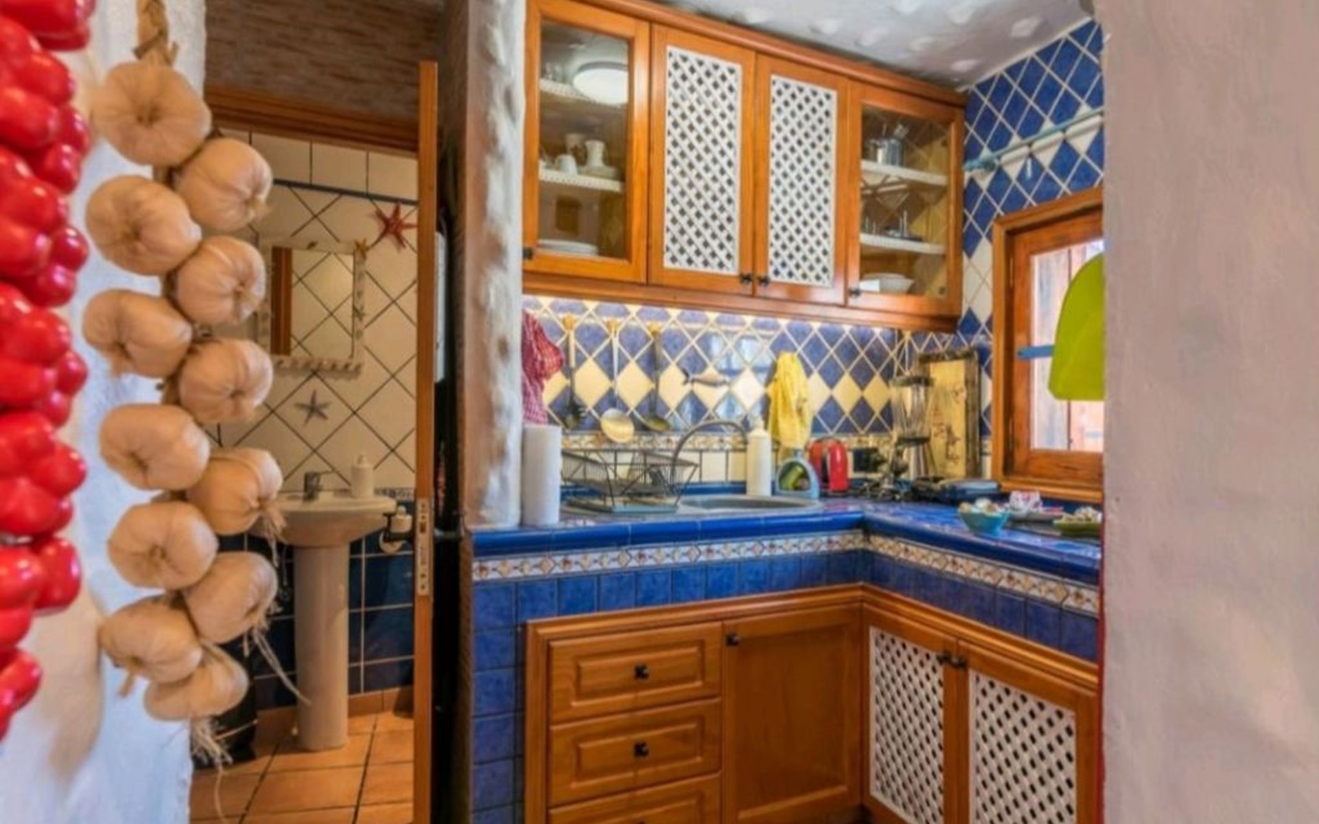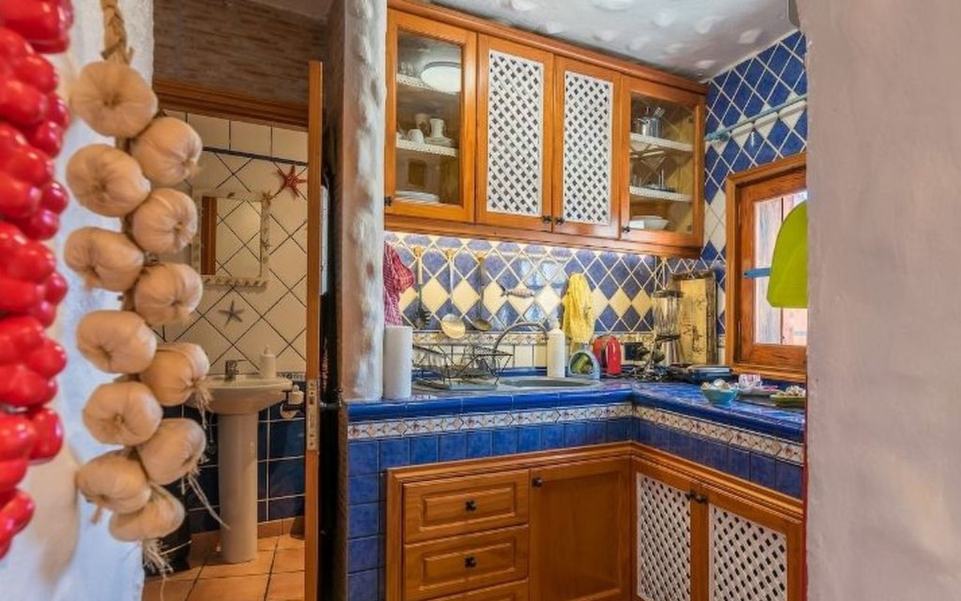 Inside, the house is equipped with all the necessary comforts to ensure a pleasant and carefree stay. Two bedrooms offer the perfect rest after a day of exploring the island. For those who enjoy preparing their own meals, the kitchen is fully equipped with a ceramic hob, gas cooker, an Italian/Moka coffee maker, a capsule coffee machine and a kettle, making it easy to prepare any dish or drink you desire.