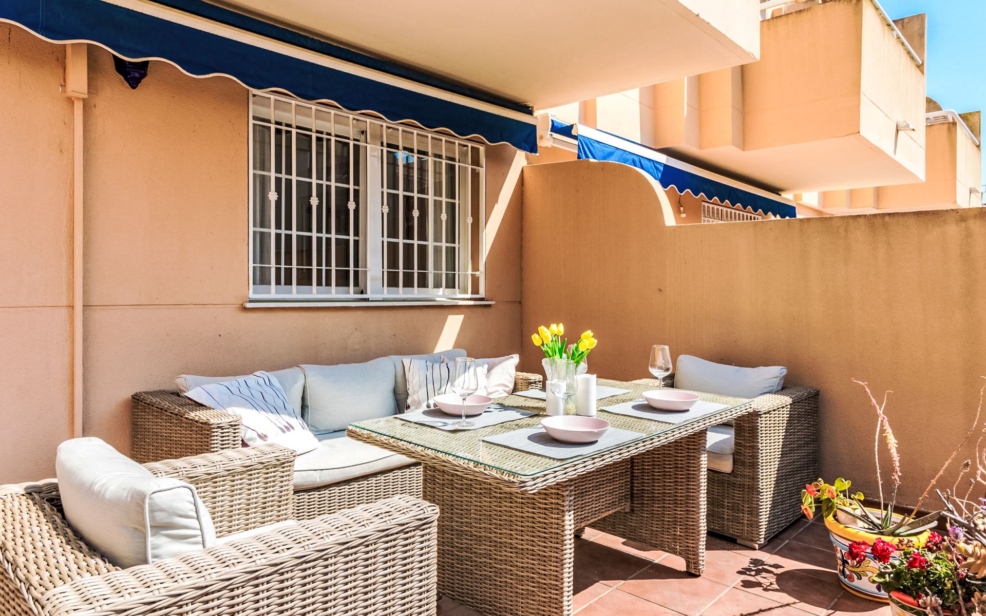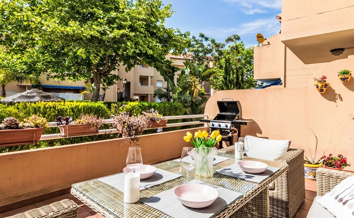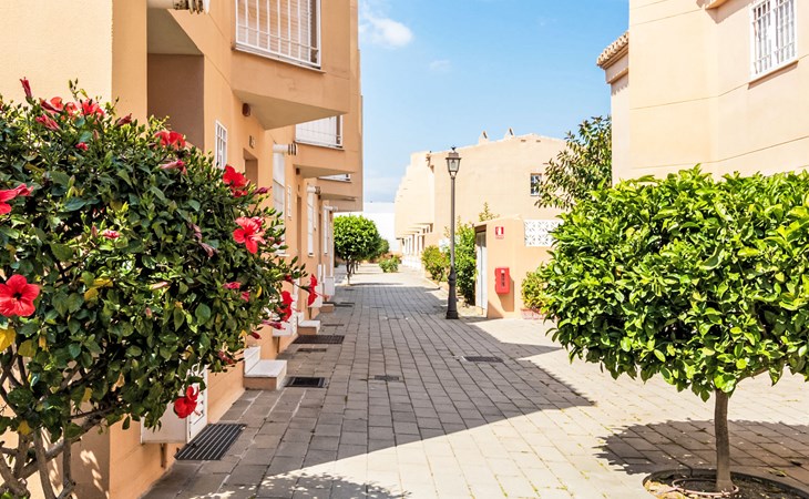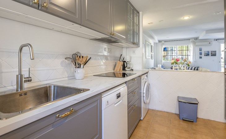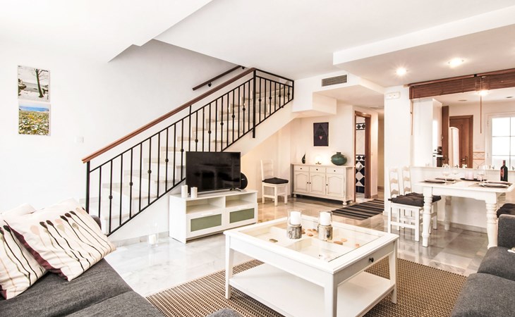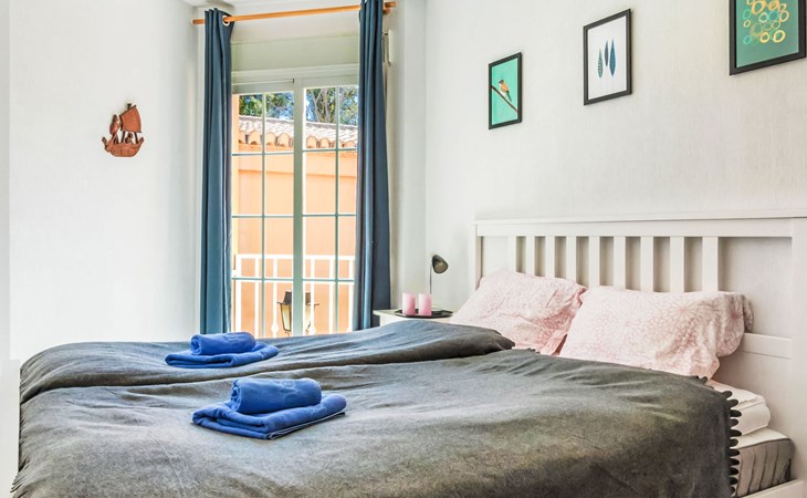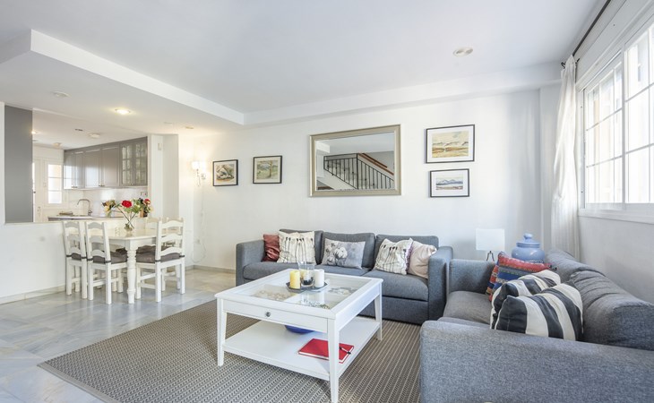 Terraced house "Reserva de Alvarito". 8 km from the centre of Marbella, 200 m from the sea, 200 m from the beach. For shared use: garden with lawn, swimming pool angular (8 x 15 m, depth 120 - 180 cm, seasonal availability: 01.May. - 31.Oct.). Public parking on the road. Grocery, restaurant 500 m, bus stop "Los Alicate" 900 m, sandy beach 200 m. Golf course (18 hole) 4 km. The owner does not accept any youth groups. Neighbourhood highly sensitive to noise. Quietness and good behaviour expected.