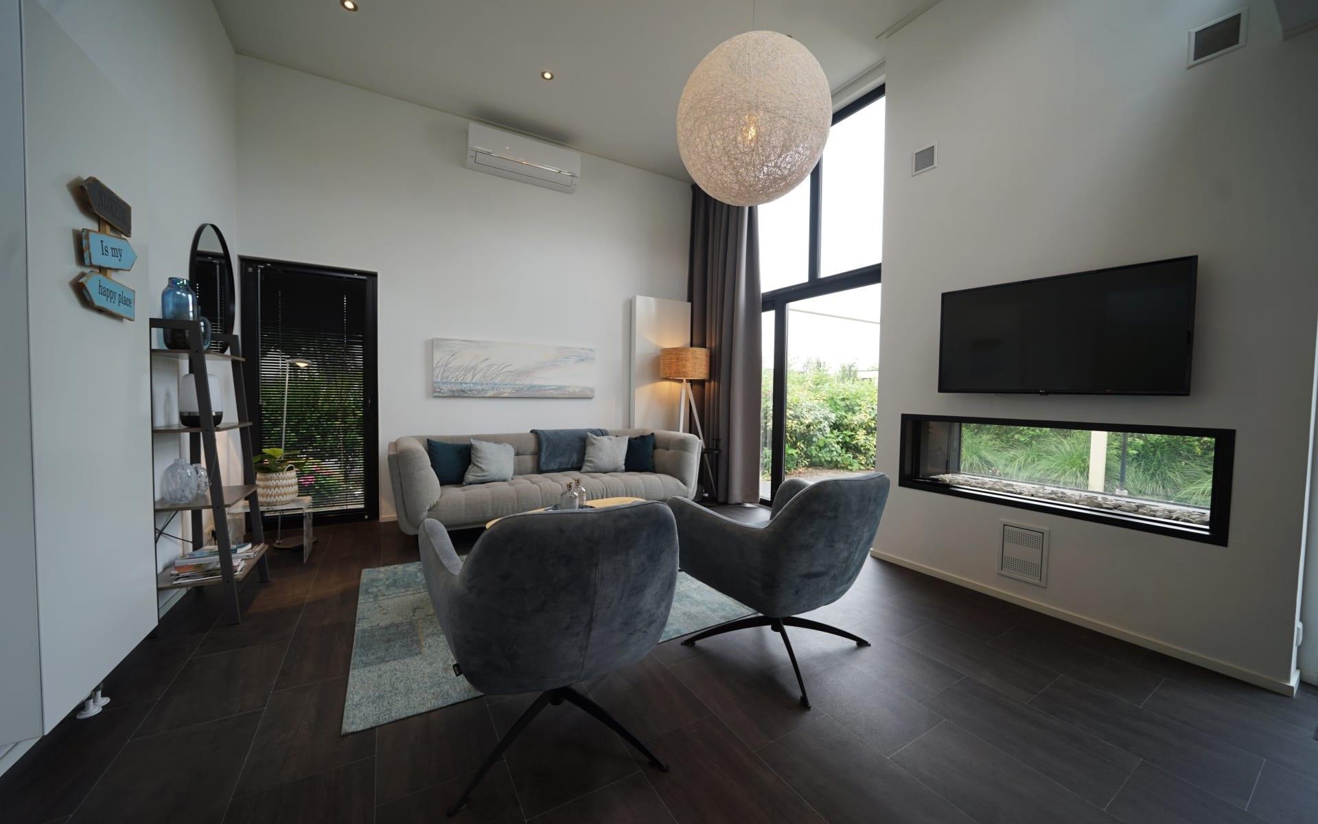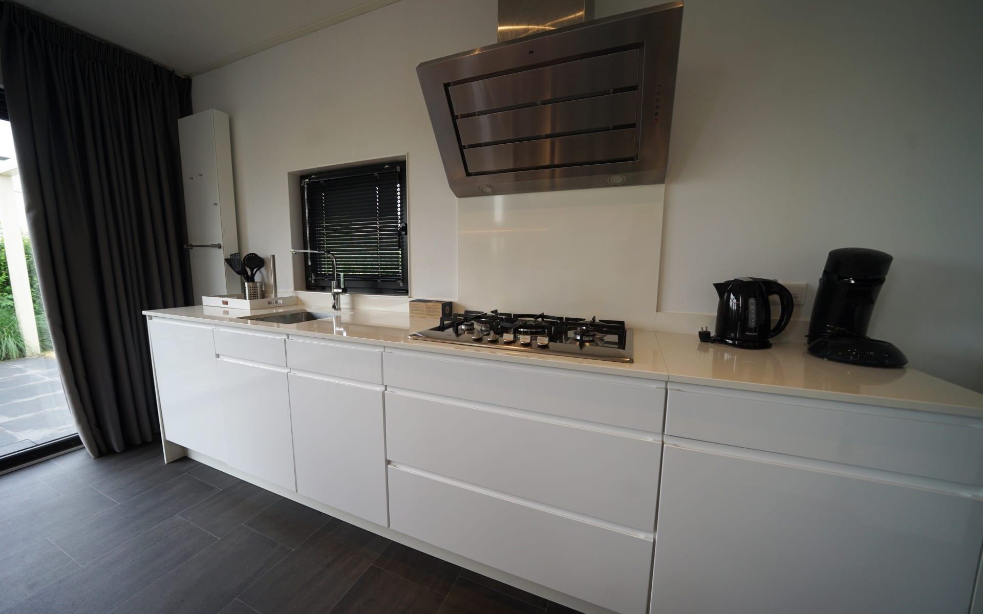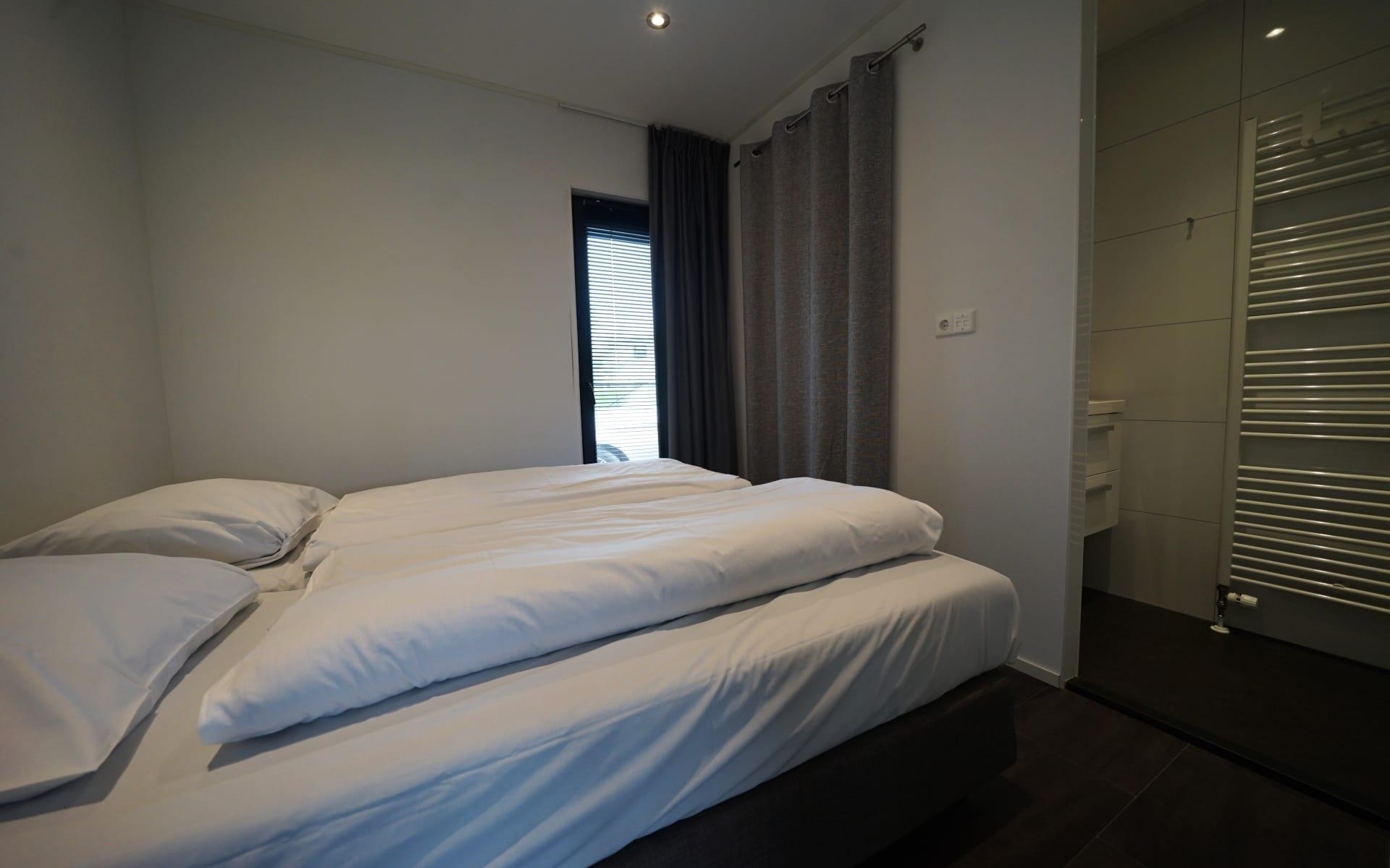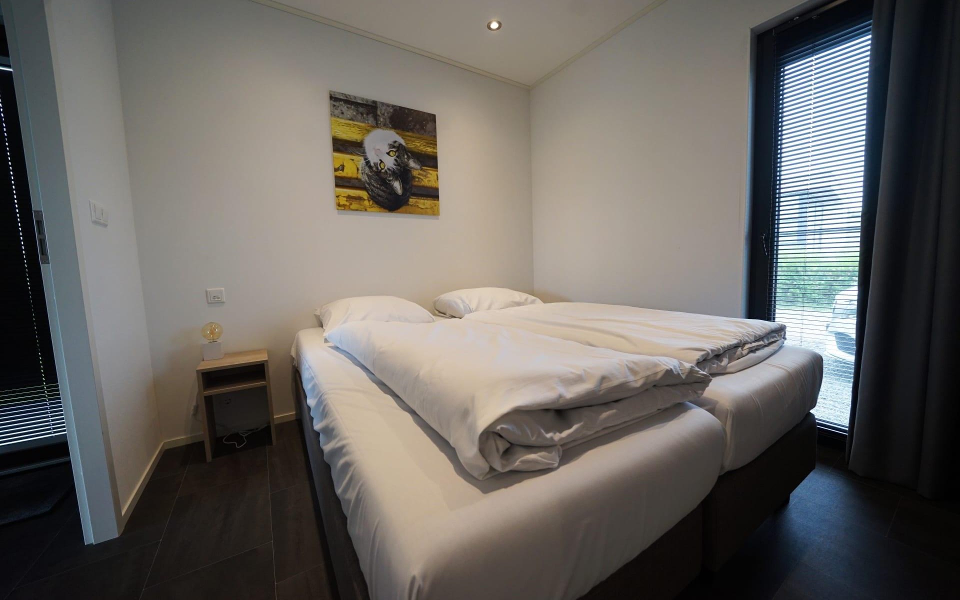 The Cube Elite 6 exudes luxury with its abstract shapes, modern amenities and roof terrace. This detached chalet consists of two floors and can accommodate up to six people. The living room has high windows and is furnished with a sitting area where you can watch television, a dining area and a kitchen with a dishwasher, filter coffee machine and combination microwave. The chalet has two bedrooms with double beds and a double sleeping loft (suitable for children). The bathroom has a shower, toilet and washbasin. Outside, you can enjoy the sun on both the roof terrace and in the garden. You can park one car at Cube Elite and free Wi-Fi is available.