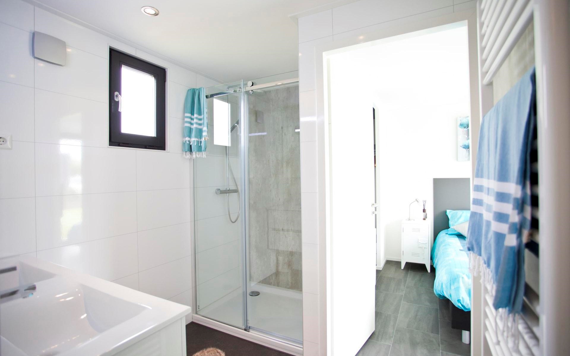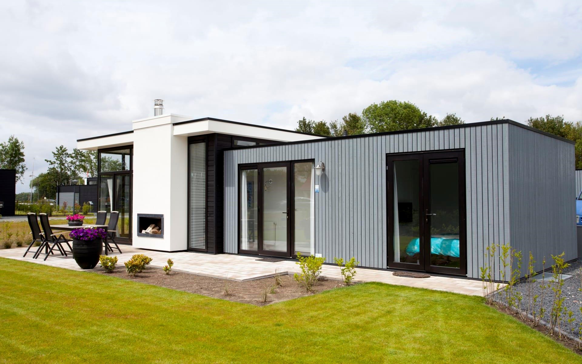 The Cube Exclusif 6 is a modern and stylish house with every comfort. This detached house is suitable for a maximum of 6 persons and is on the ground floor. In the living room you will find a cosy sitting area with high windows and a television, a dining area with a see-through fireplace and a kitchen with a dishwasher, coffeemaker and microwave. There are 3 bedrooms, 2 of which have 2 single beds and 1 has a bunk bed. The bathroom has a shower cabin and a washbasin. The toilet is separate from the bathroom. Outside you have a furnished terrace. You can park 1 car at the house and there is free Wi-Fi available.