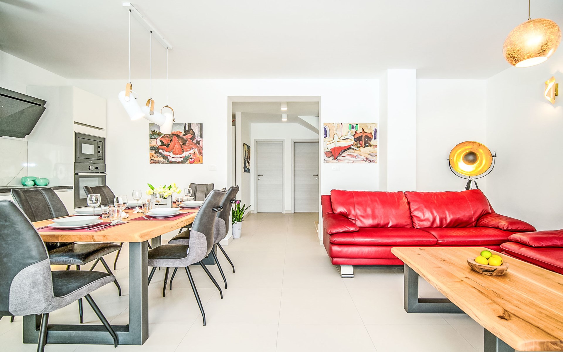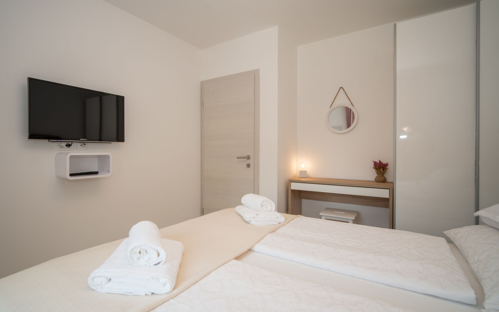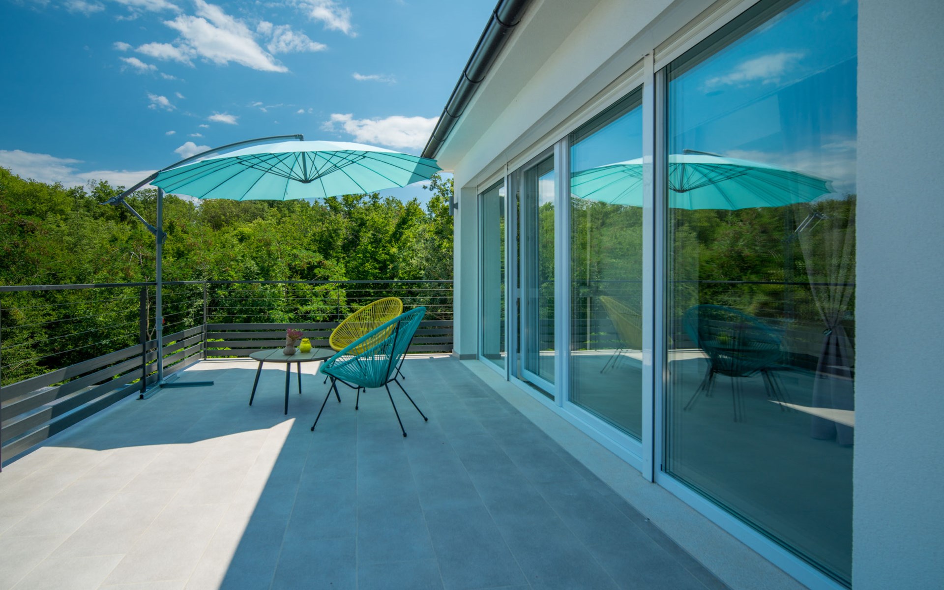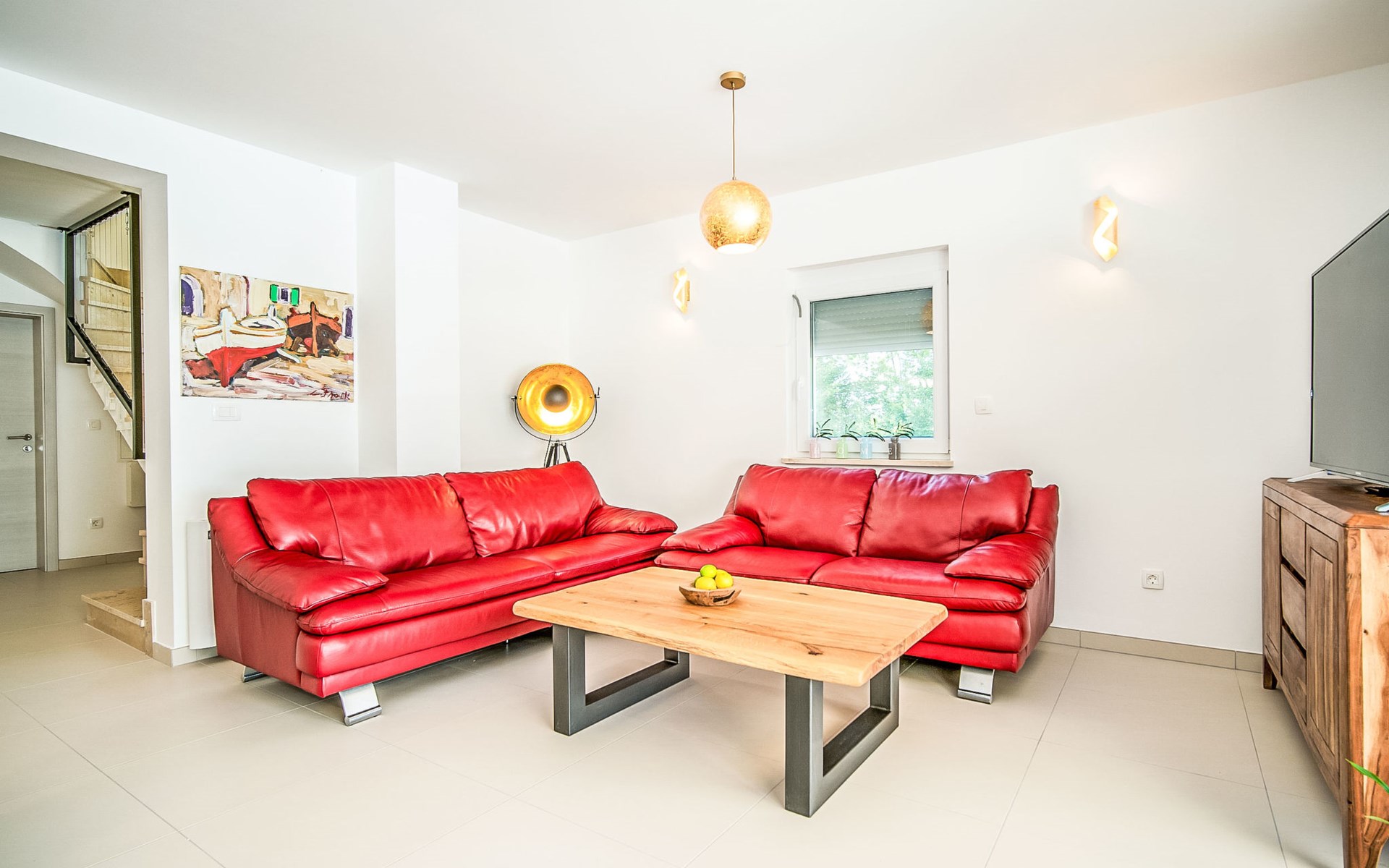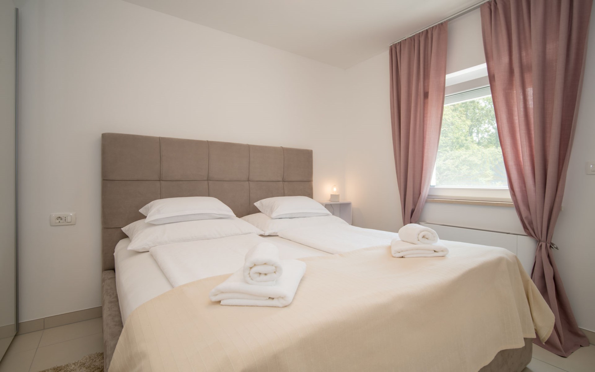 Gornja Hlapa 2 km from Dobrinj: Single-family house "Ivana", 3 storeys, built in 2018. 3 km from the centre of Solin, 5 km from the centre of Klimno, 12.5 km from the centre of Malinska, in a quiet, sunny position, 2.5 km from the sea, 2.5 km from the beach, in a cul-de-sac. Private: property 580 m2 (fenced) with wildlife garden, swimming pool angular, heated (8 x 4 m, depth 140 cm, seasonal availability: 01.May. - 15.Oct.) with internal staircase. Outdoor shower. In the house: internet access, sauna, burglar alarm system, washing machine. Parking (for 3 cars) at the house on the premises. Shop 950 m, supermarket 11 km, restaurant 950 m, bus stop 5.2 km, pebble beach 2.5 km, concrete beach 2.5 km. Groups of teenagers on request only. By groups of young people double deposit is requested on arrival. Swimming pool heated (extra).