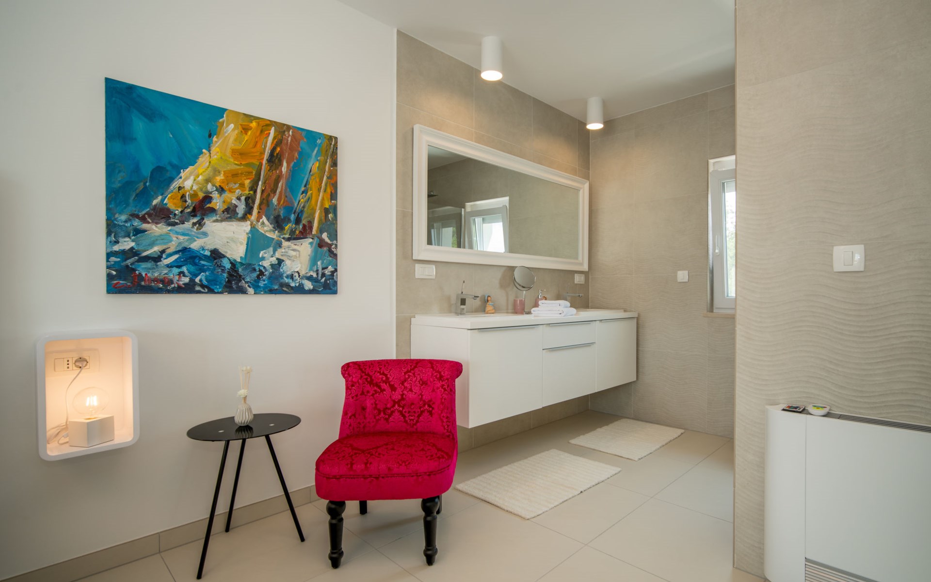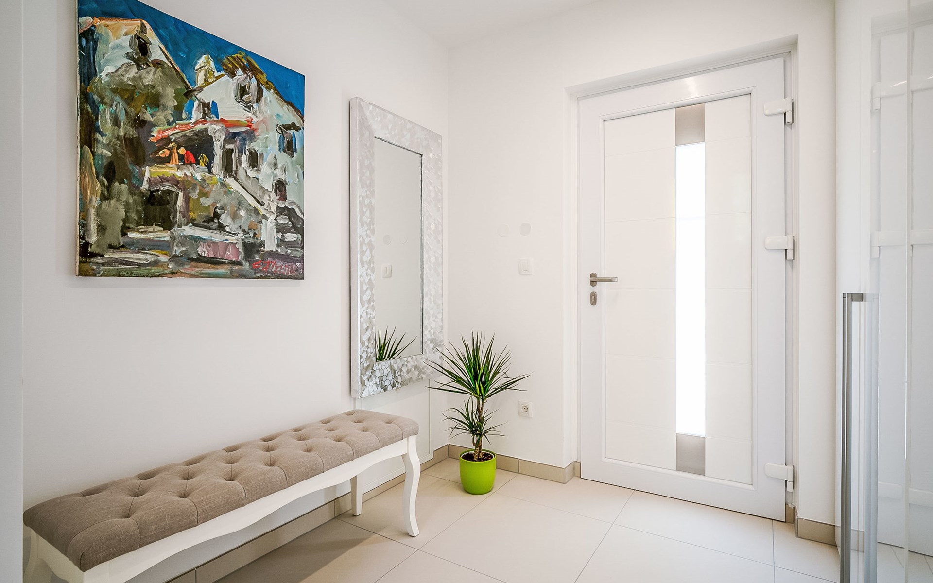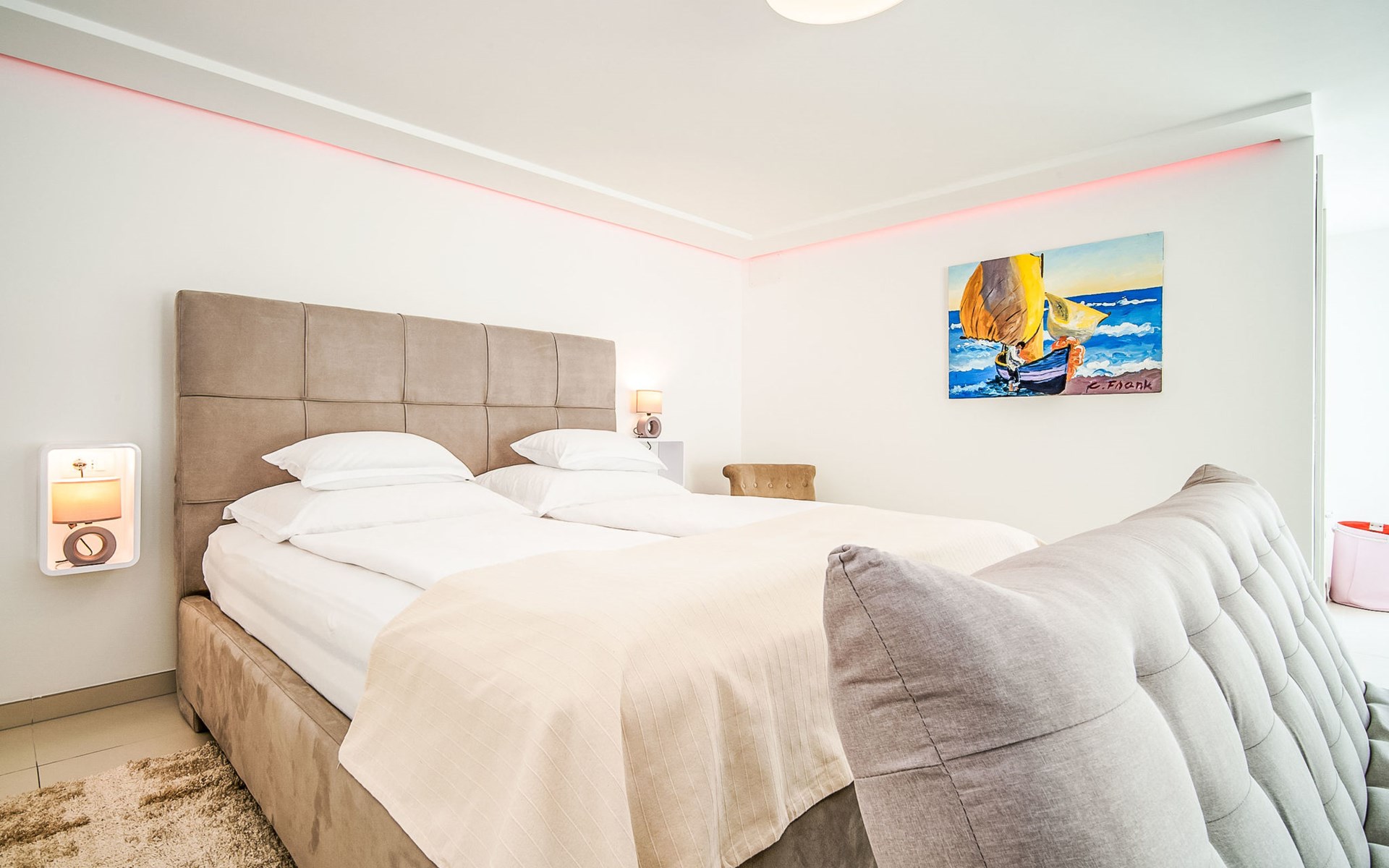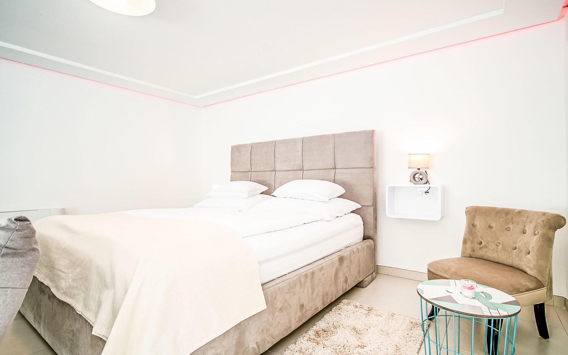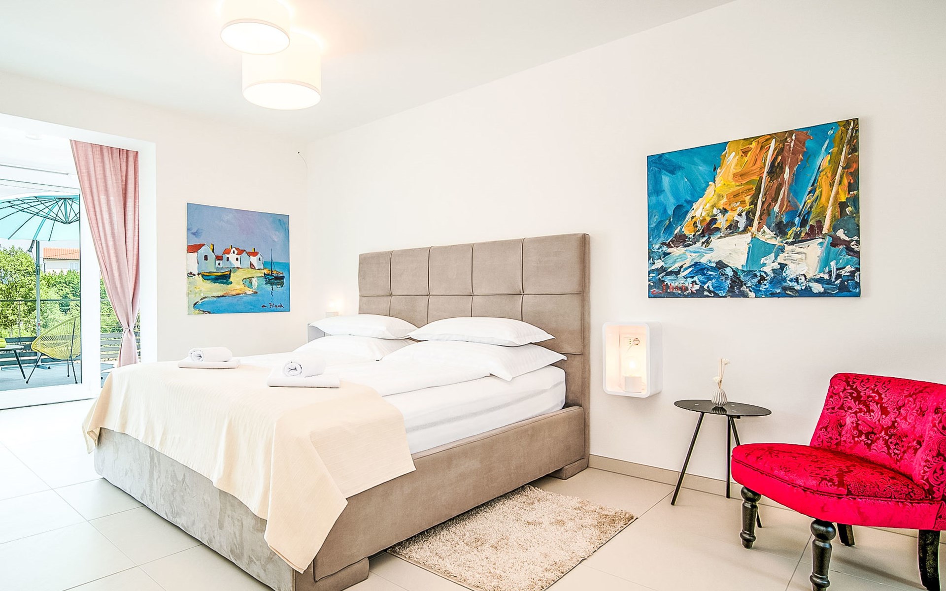 Gornja Hlapa 2 km from Dobrinj: Single-family house "Ivana", 3 storeys, built in 2018. 3 km from the centre of Solin, 5 km from the centre of Klimno, 12.5 km from the centre of Malinska, in a quiet, sunny position, 2.5 km from the sea, 2.5 km from the beach, in a cul-de-sac. Private: property 580 m2 (fenced) with wildlife garden, swimming pool angular, heated (8 x 4 m, depth 140 cm, seasonal availability: 01.May. - 15.Oct.) with internal staircase. Outdoor shower. In the house: internet access, sauna, burglar alarm system, washing machine. Parking (for 3 cars) at the house on the premises. Shop 950 m, supermarket 11 km, restaurant 950 m, bus stop 5.2 km, pebble beach 2.5 km, concrete beach 2.5 km. Groups of teenagers on request only. By groups of young people double deposit is requested on arrival. Swimming pool heated (extra).