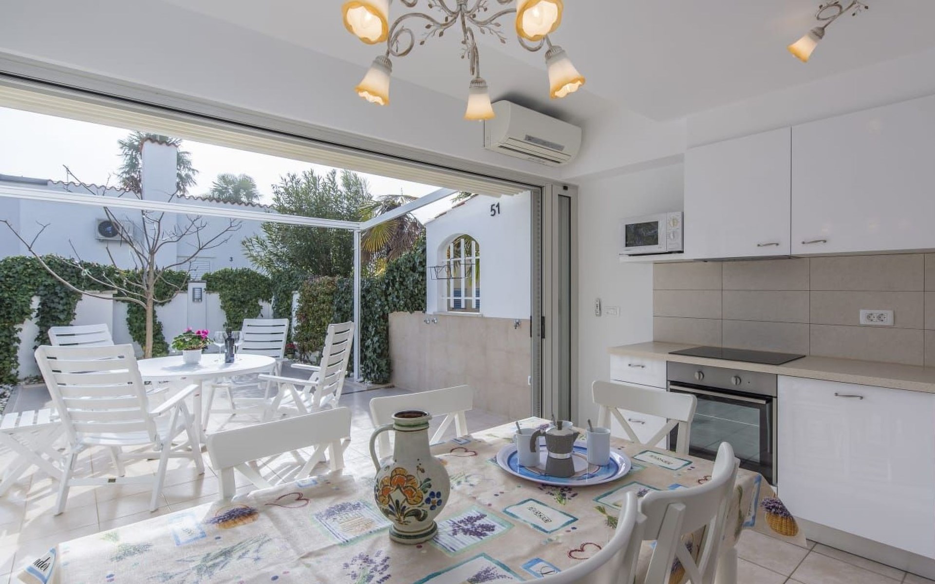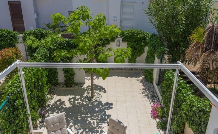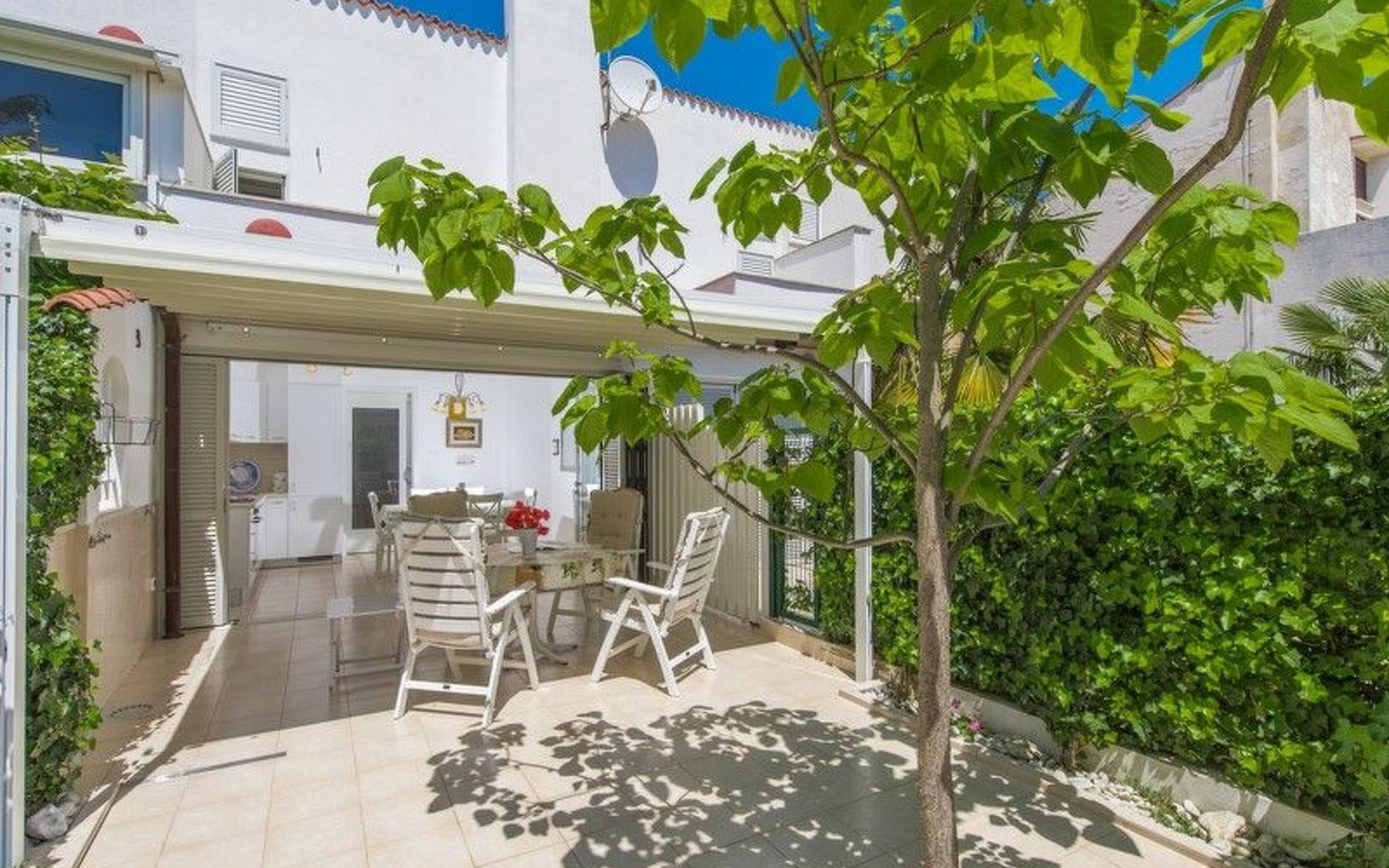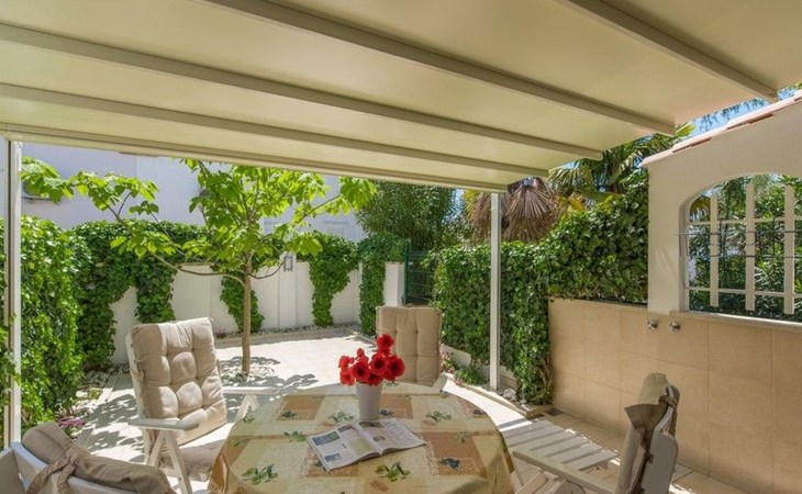 The garden offers plenty of space and has garden furniture. The terrace is partially covered, so you can easily find shade.