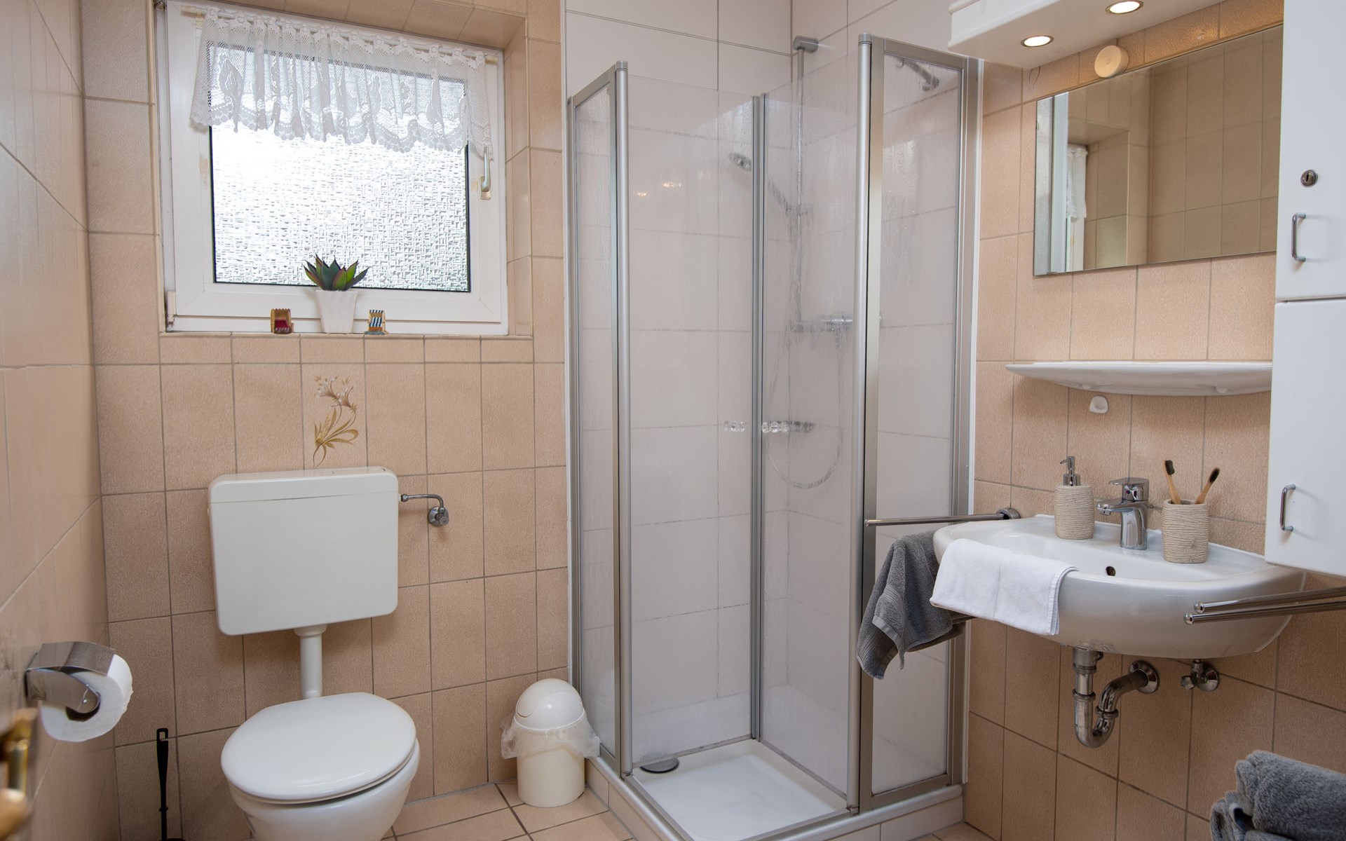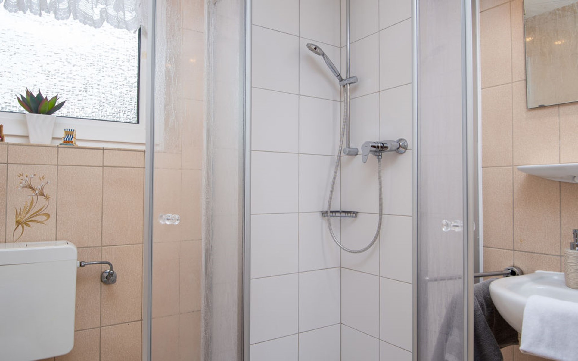 Apartment house "Am Koper Sand". In the resort, 200 m from the centre, 350 m from the sea, from the beach. In the house: central heating system, washing machine (for shared use, extra). Parking at the house. Supermarket 1.6 km, restaurant 200 m, bakery 200 m, café, bus stop 200 m, railway station 1.5 km, ferry 1.5 km, sandy beach 350 m, outdoor swimming pool 14 km, indoor swimming pool 500 m. Golf course (18 hole) 8 km, surf school 700 m, tennis 2.5 km.