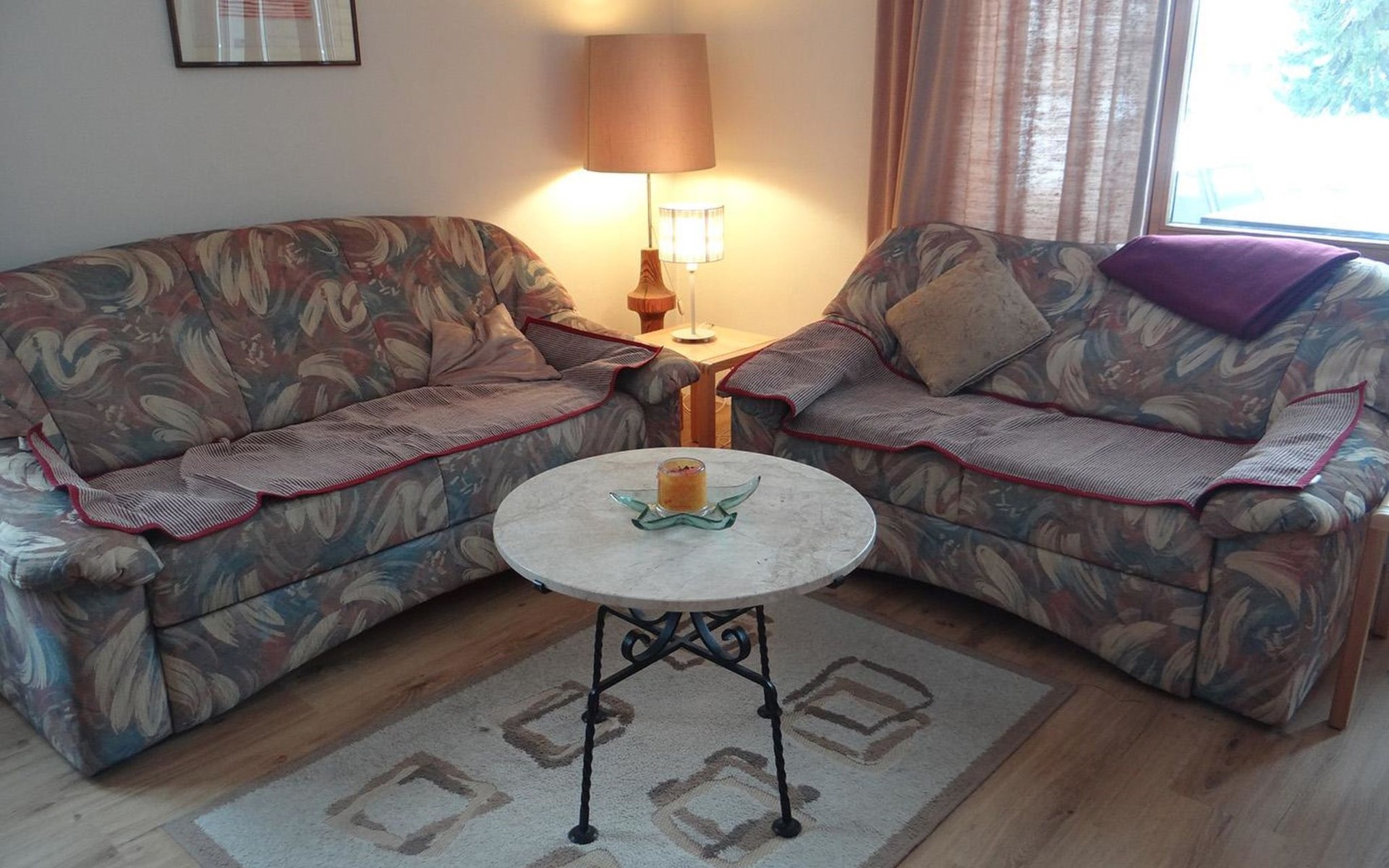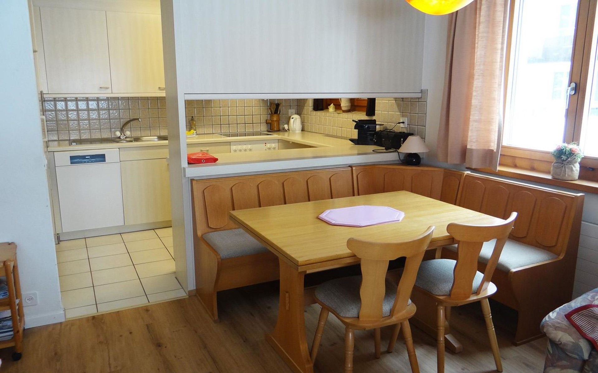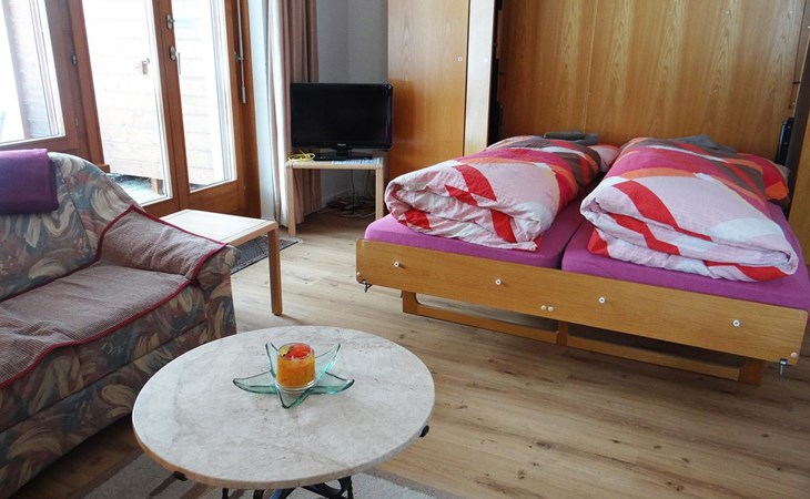 2-room apartment on high ground floor: living/ dining room with 2 wall-trunk beds, 1 double bedroom, open kitchen, bath/WC