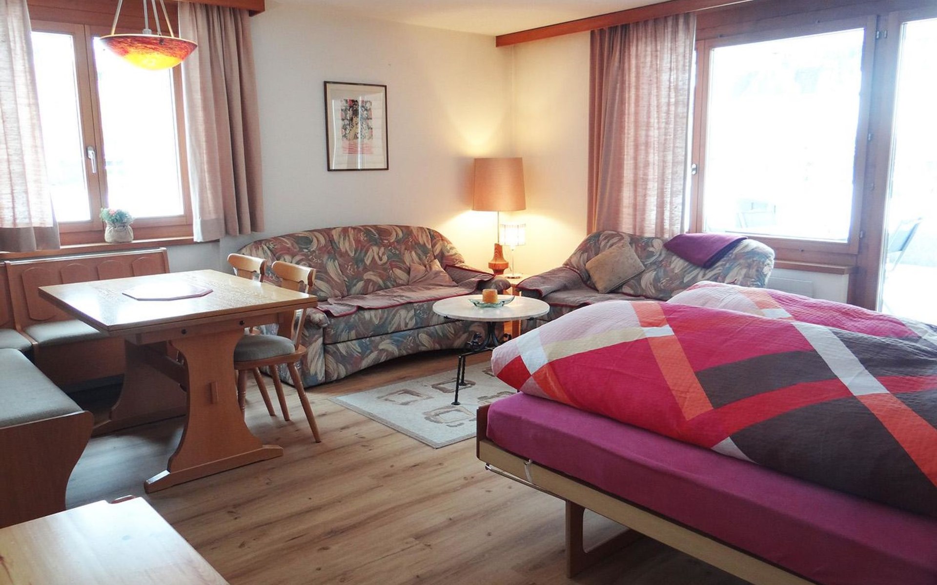 Included: Bath- and kitchen towels, garage parking and electricity, local tax. Excluded: Baby cot CHF 20.00, key deposit CHF 300.00 with credit card.
