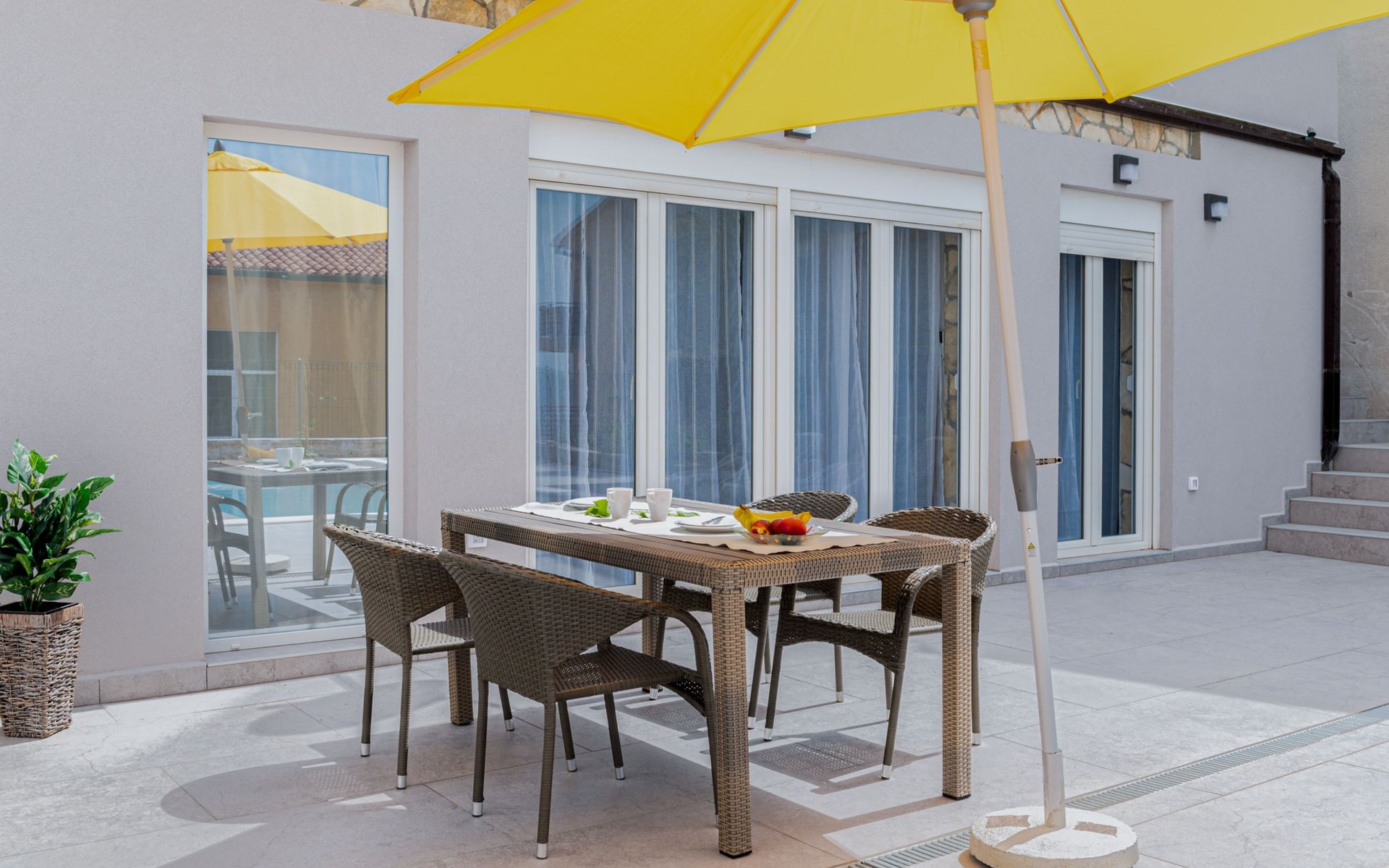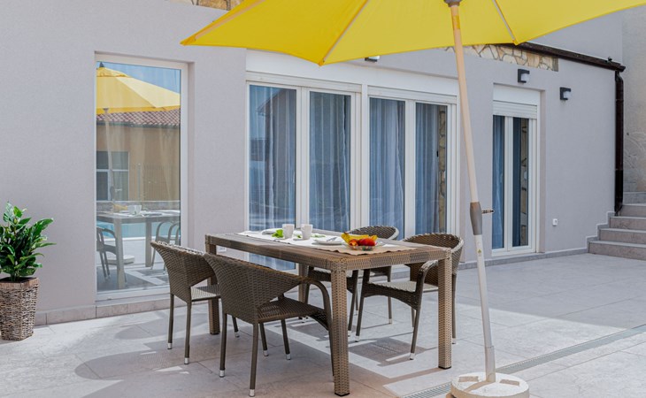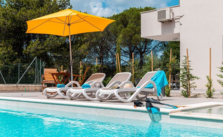 Directly from the living room you can access the sunny terrace with **spacious private pool** and an **outdoor barbecue** - perfect for relaxing afternoons and cosy evenings under the starry Istrian sky. The pool is for the exclusive use of our guests.