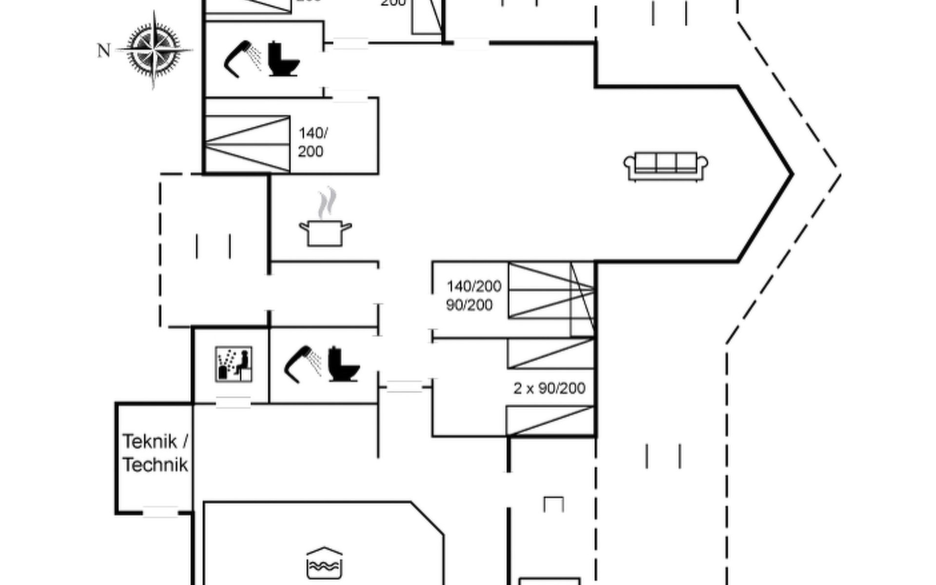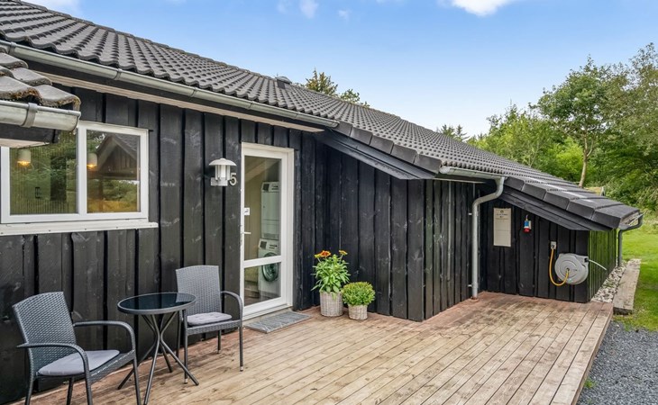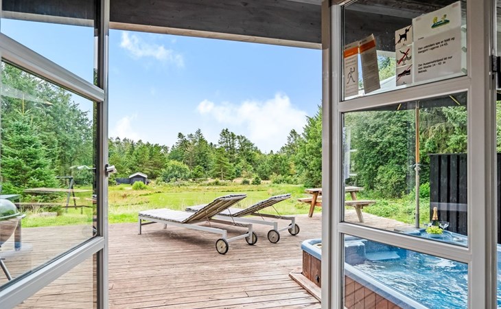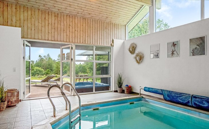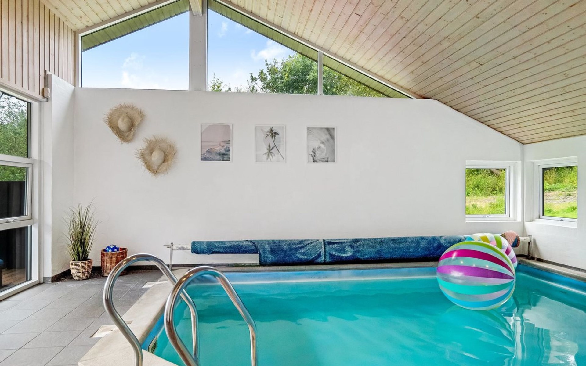 Single-family house, built in 2006. 2 km from the sea. Private: natural state property 5'409 m2, indoor pool (3 x 4 m, 1'5.7 m2, depth 135 - 135 cm). Terrace (50 m2), children's playground (slide, swing). In the house: sauna, washing machine, tumble dryer. Parking at the house. Carport. Grocery 900 m. The owner does not accept any youth groups.