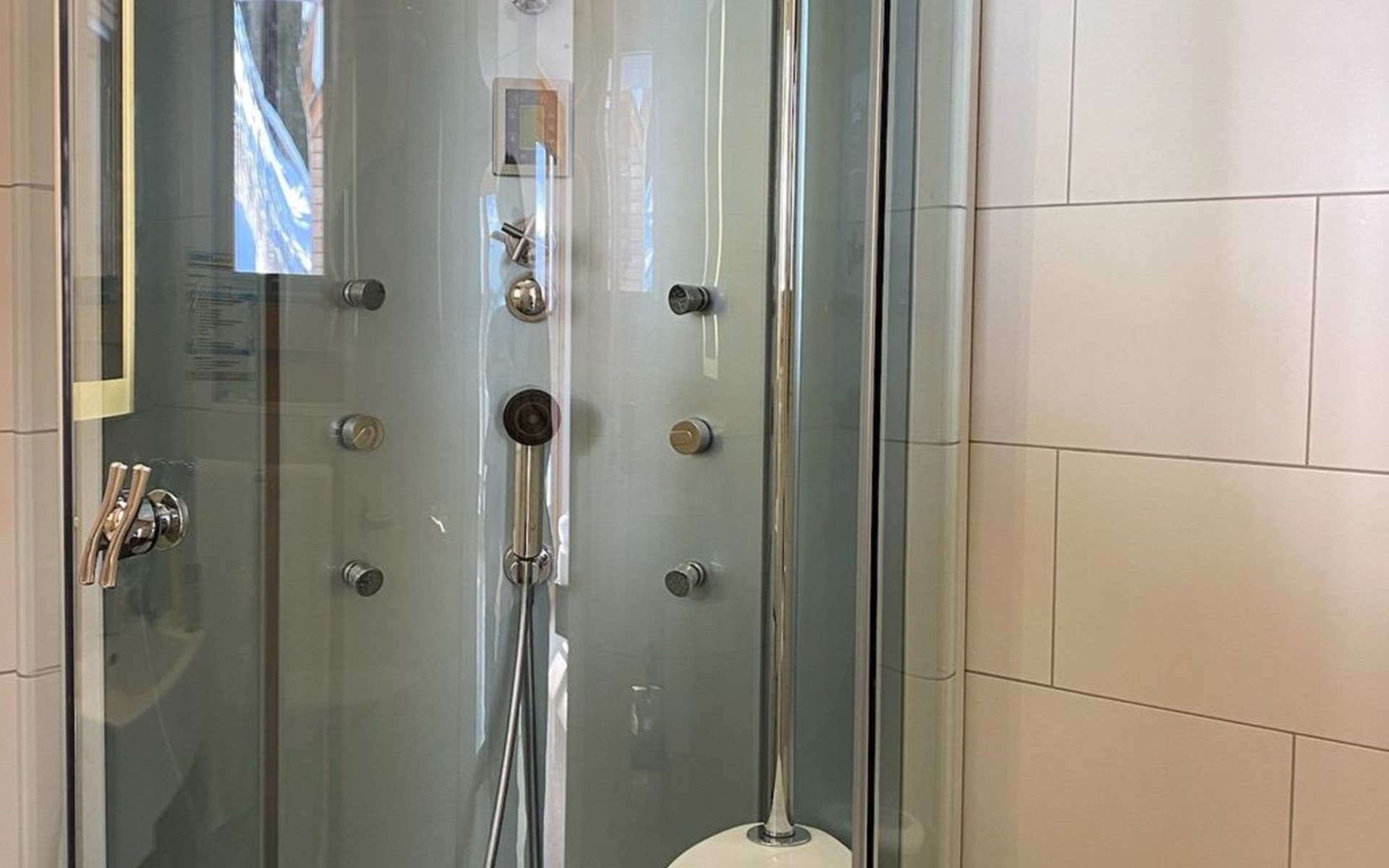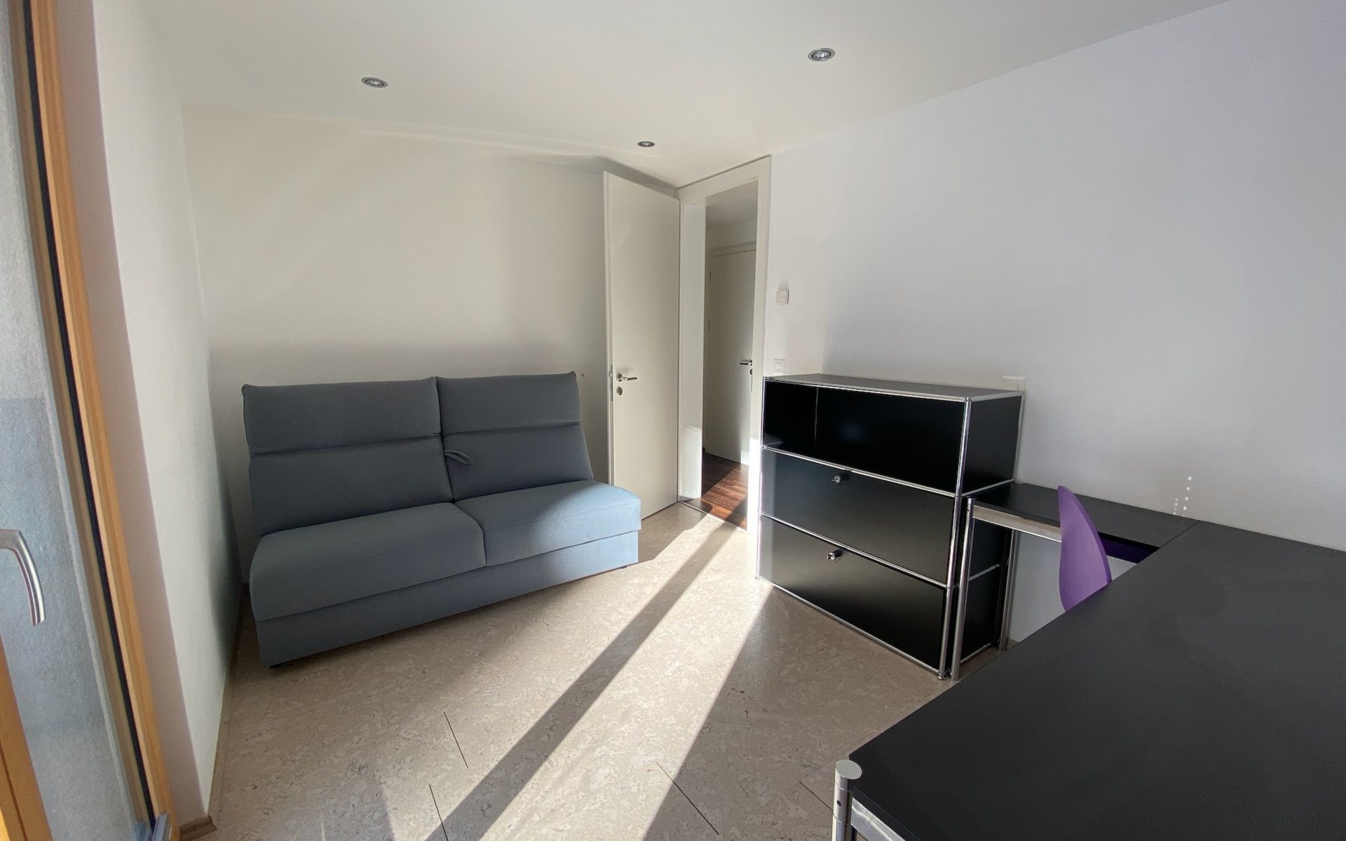 On the lowest floor there is a room with a double bed, wardrobe and access to the outside. This floor also has a bathroom. There is also an office with a pull-out sofa bed, also with access to the outside. The laundry room is also located on this floor.