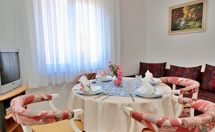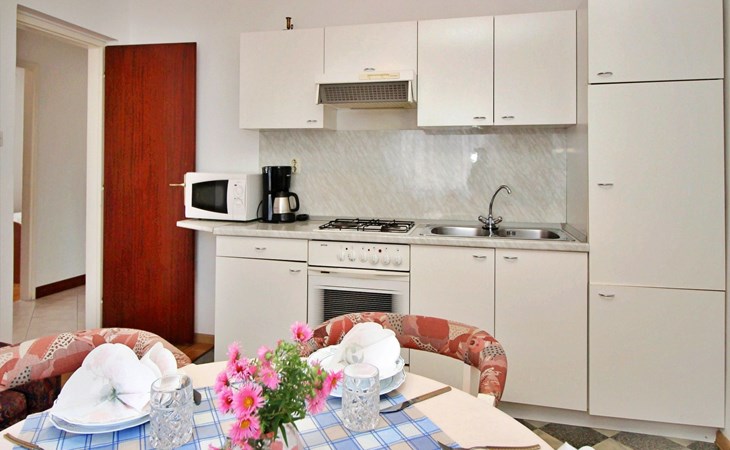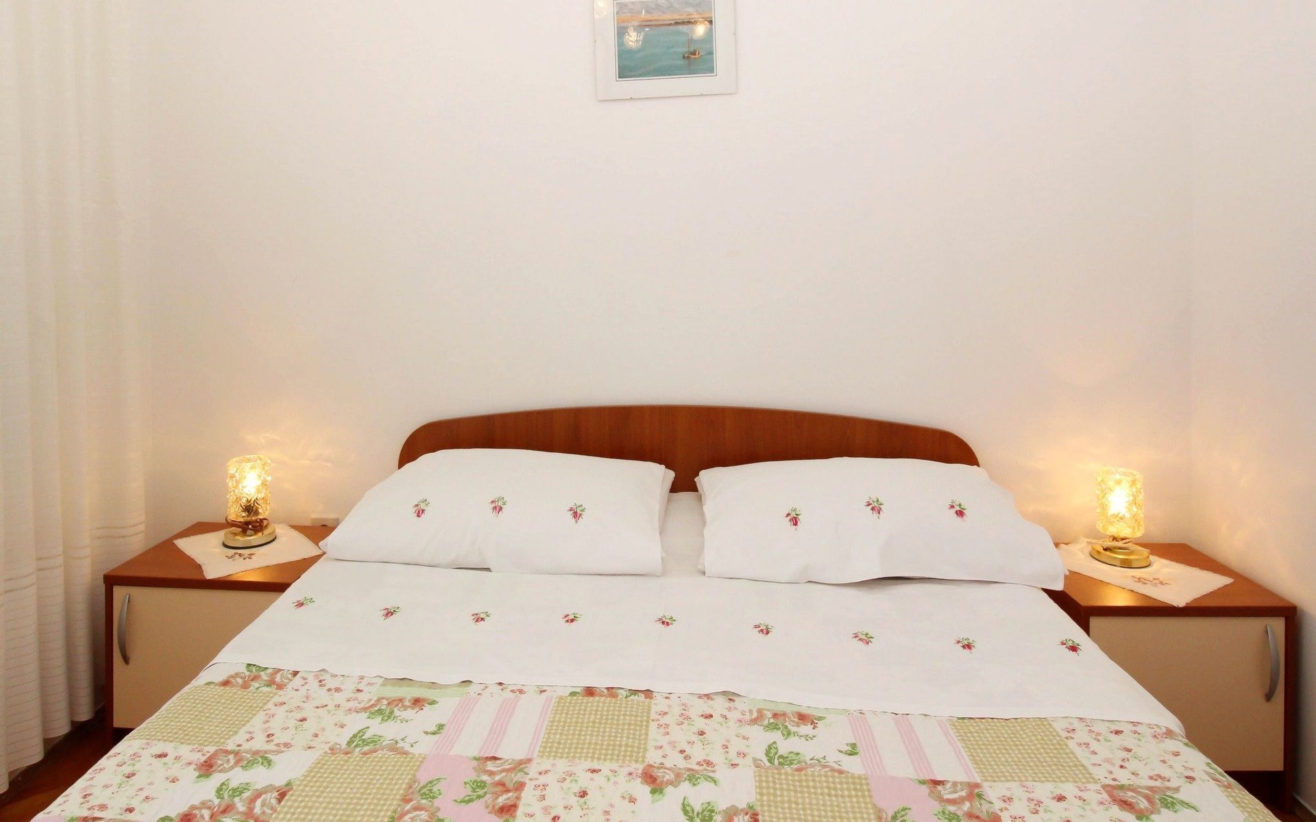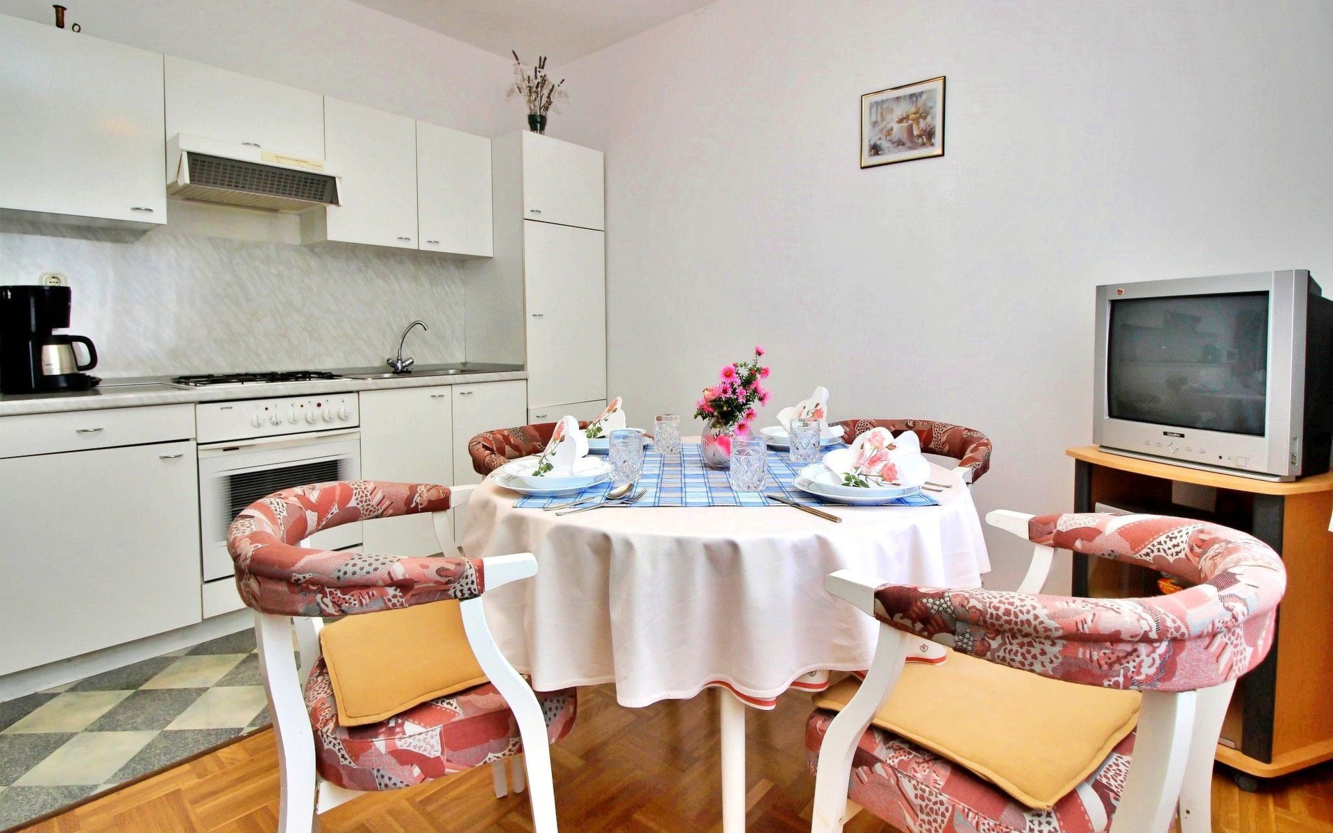 The flat has a spacious 20 m2 terrace with stunning sea views, complete with a portable barbecue for your outdoor meals. Amenities such as air conditioning, Wi-Fi and a private parking space are included in the price.