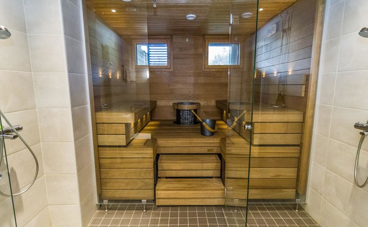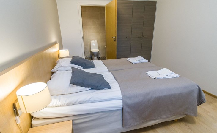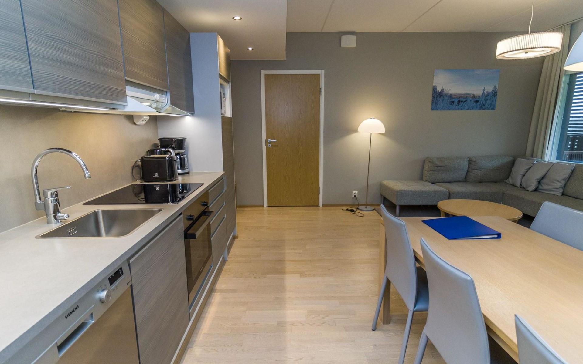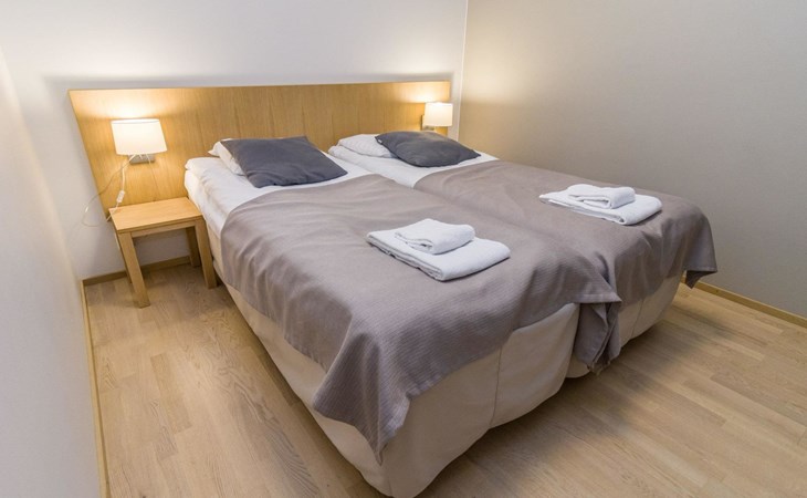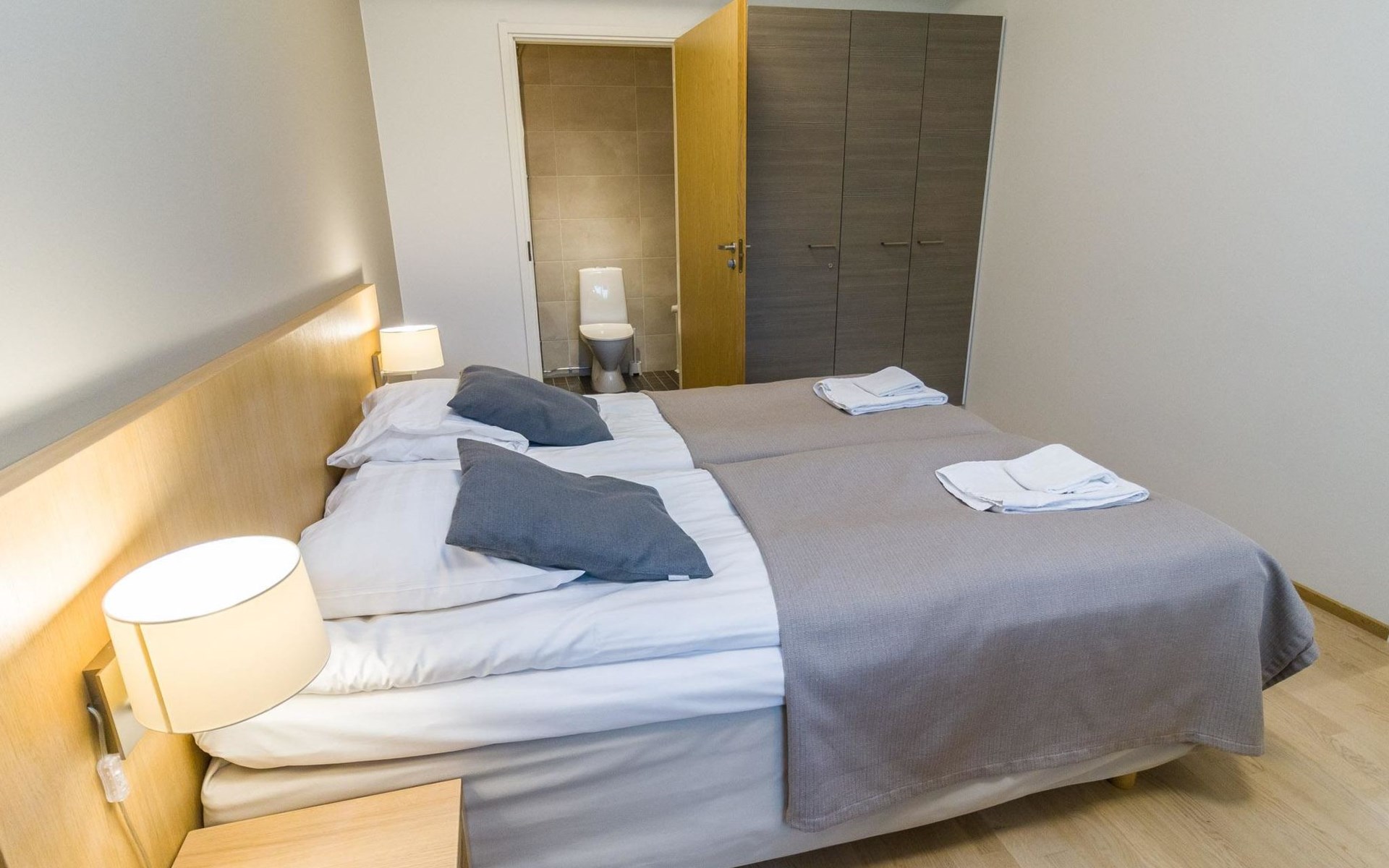 With three bedrooms, the apartment comfortably accommodates a family or group of friends: two bedrooms have two single beds each, and the third has a bunk bed with a 120 cm wide lower bed. The spacious open-plan kitchen and living area are perfect for spending time together, and after a day of adventures, you can unwind in the large electric sauna.