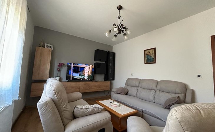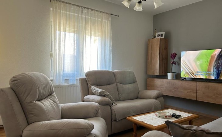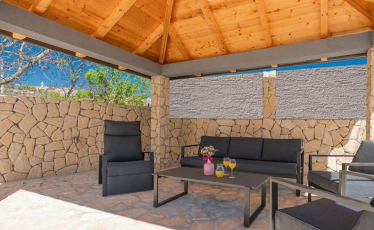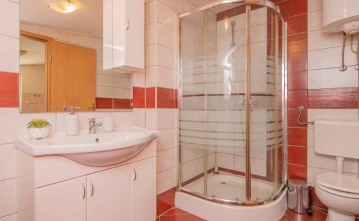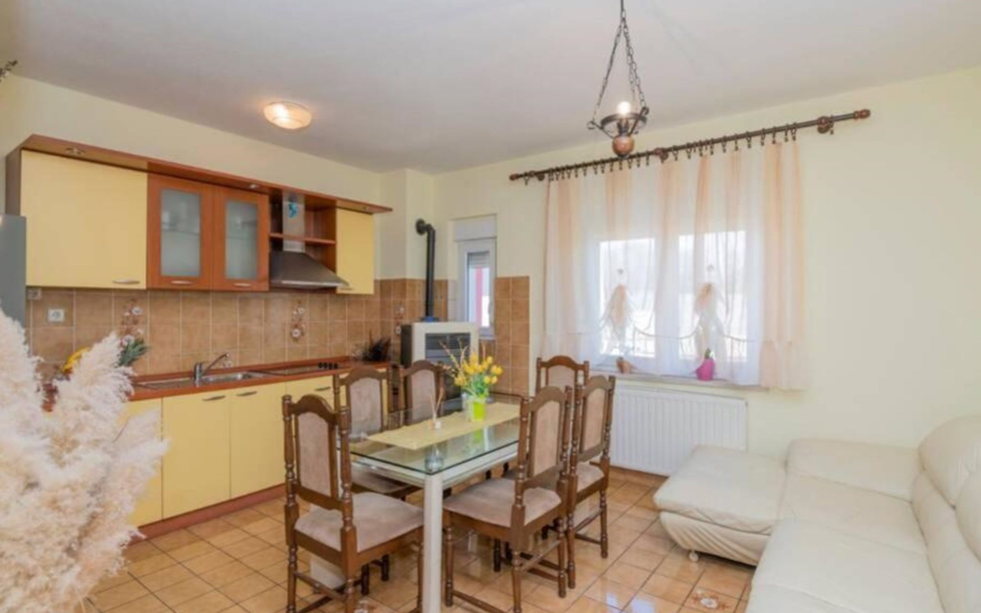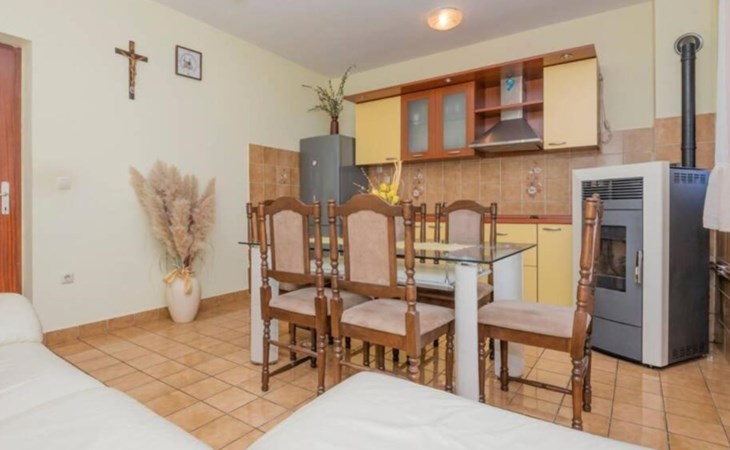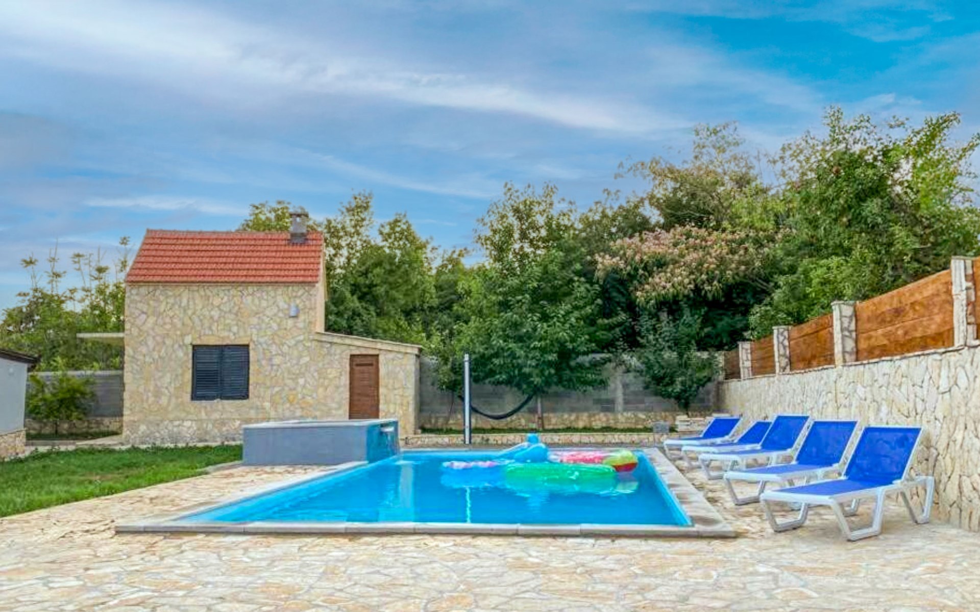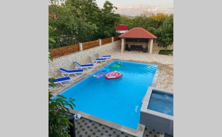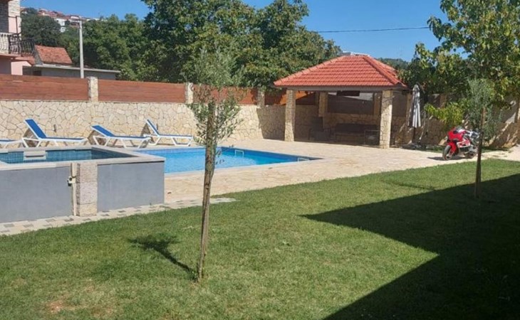 Single-family house "Lucija", 2 storeys. 2 km from the centre of Imotski, 34 km from the sea. Private: property 650 m2 (fenced), swimming pool angular (10 x 5 m, depth 150 cm, seasonal availability: 01.Jun. - 15.Sep.). Shower/WC in the pool area, outdoor shower, hot tub, pool house with fridge, shower, WC and cooking stove, terrace (30 m2), garden furniture, barbecue. In the house: internet access, washing machine. Parking (for 3 cars) at the house on the premises. Supermarket 200 m, restaurant 100 m, bus stop 1.2 km, pebble beach 34 km, rocky beach 34 km. Nearby attractions: Modro jezero 2 km.