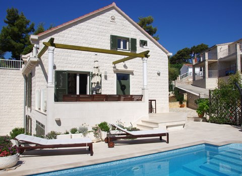 Single-family house "Lucija", 2 storeys. 2 km from the centre of Imotski, 34 km from the sea. Private: property 650 m2 (fenced), swimming pool angular (10 x 5 m, depth 150 cm, seasonal availability: 01.Jun. - 15.Sep.). Shower/WC in the pool area, outdoor shower, hot tub, pool house with fridge, shower, WC and cooking stove, terrace (30 m2), garden furniture, barbecue. In the house: internet access, washing machine. Parking (for 3 cars) at the house on the premises. Supermarket 200 m, restaurant 100 m, bus stop 1.2 km, pebble beach 34 km, rocky beach 34 km. Nearby attractions: Modro jezero 2 km.