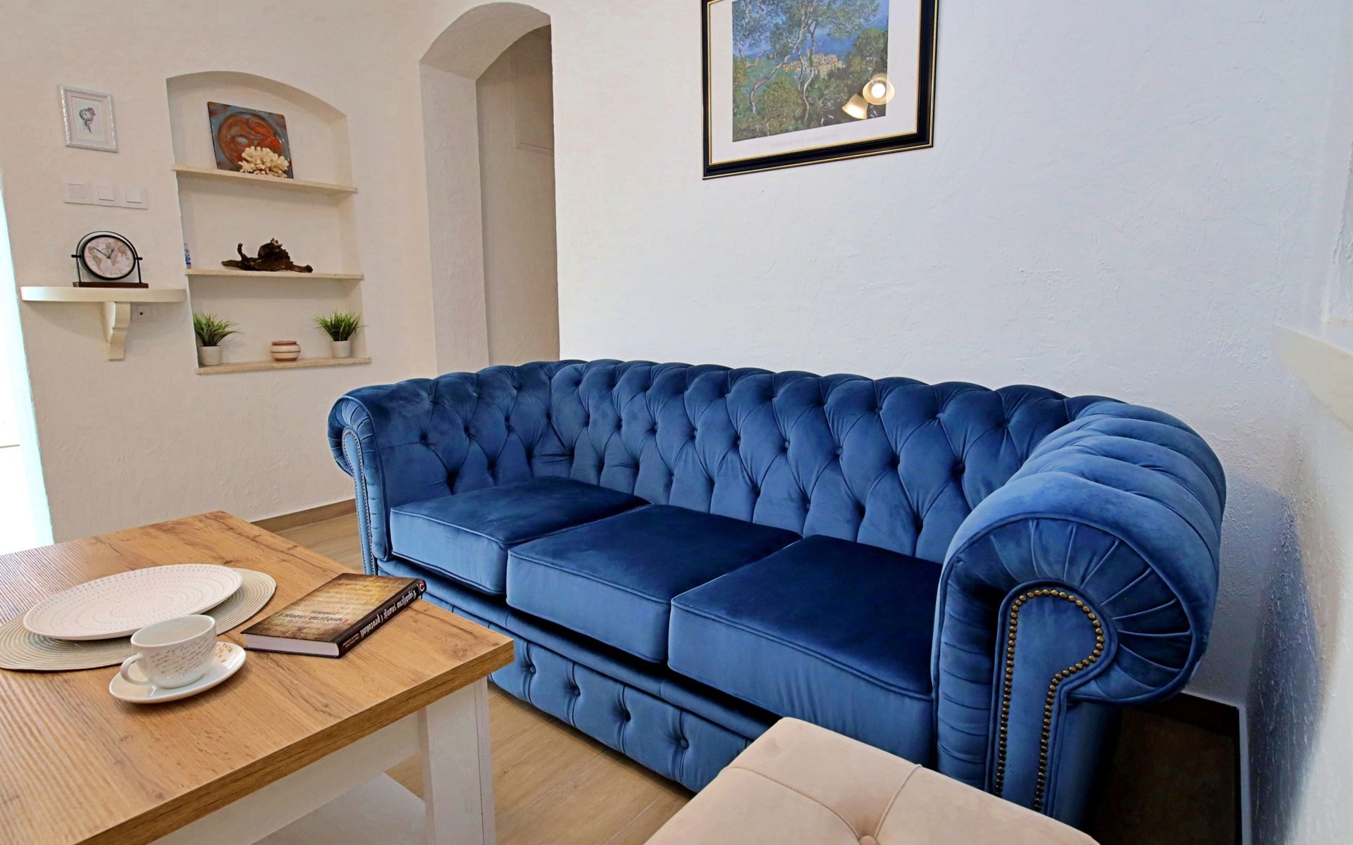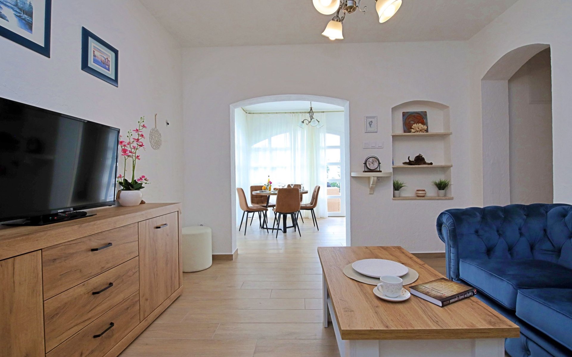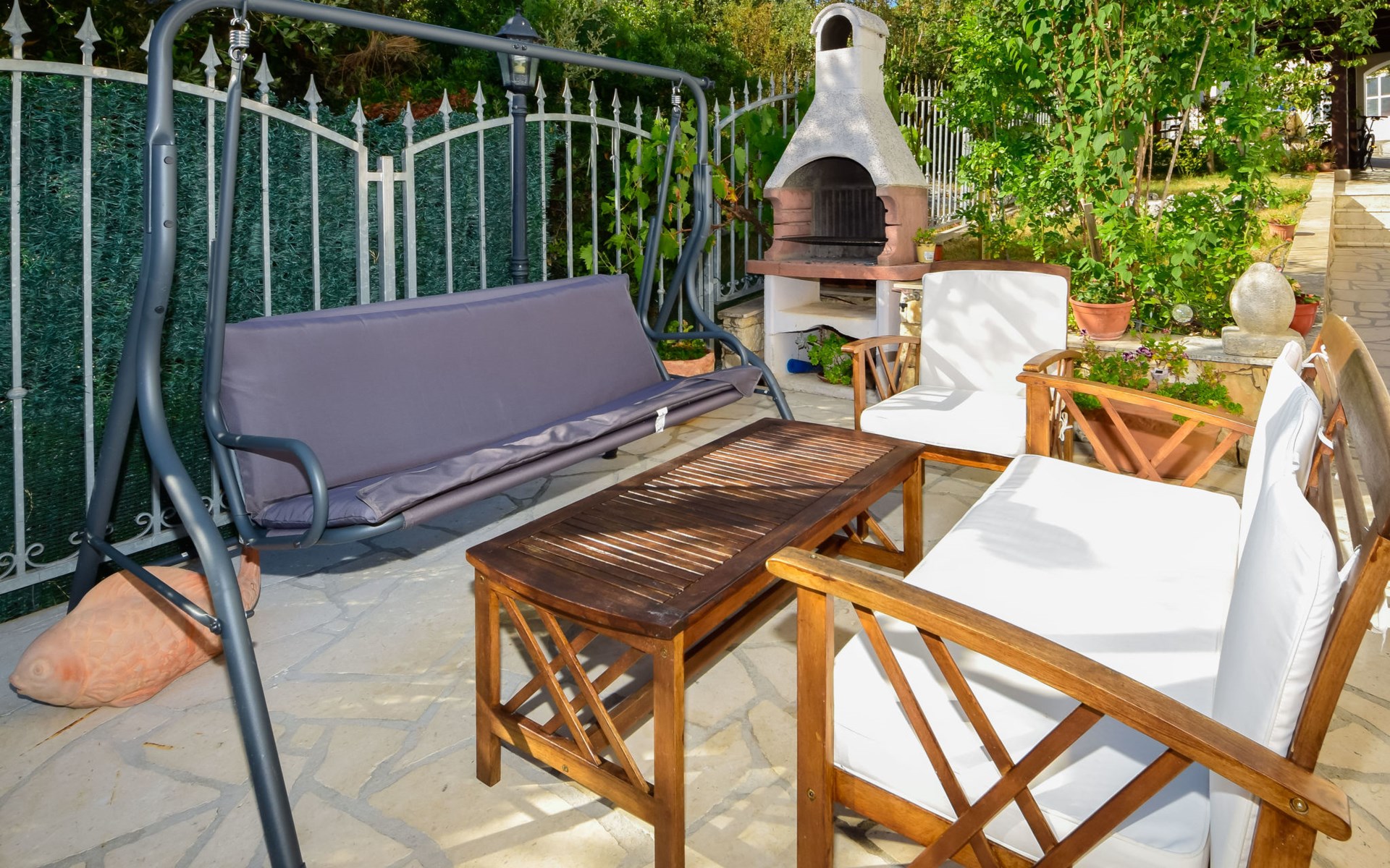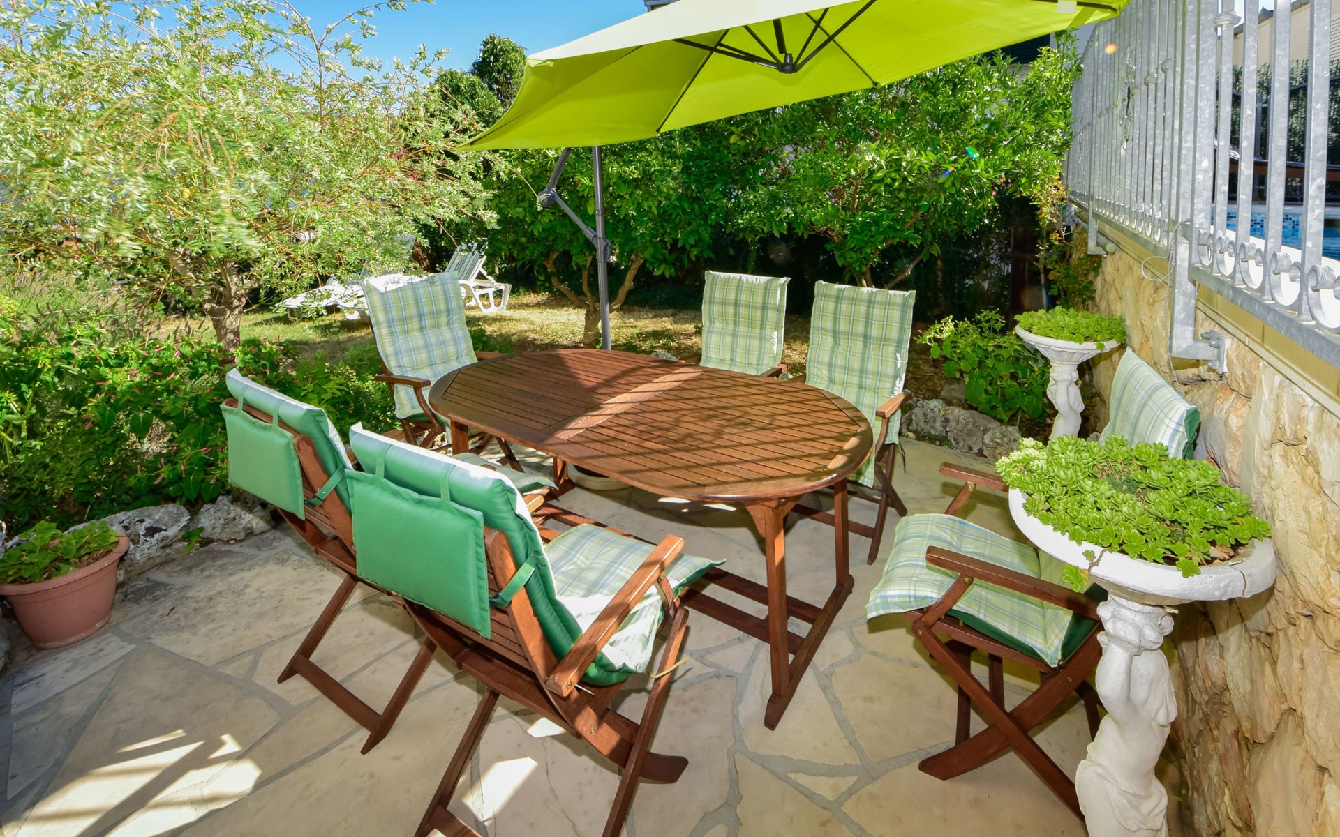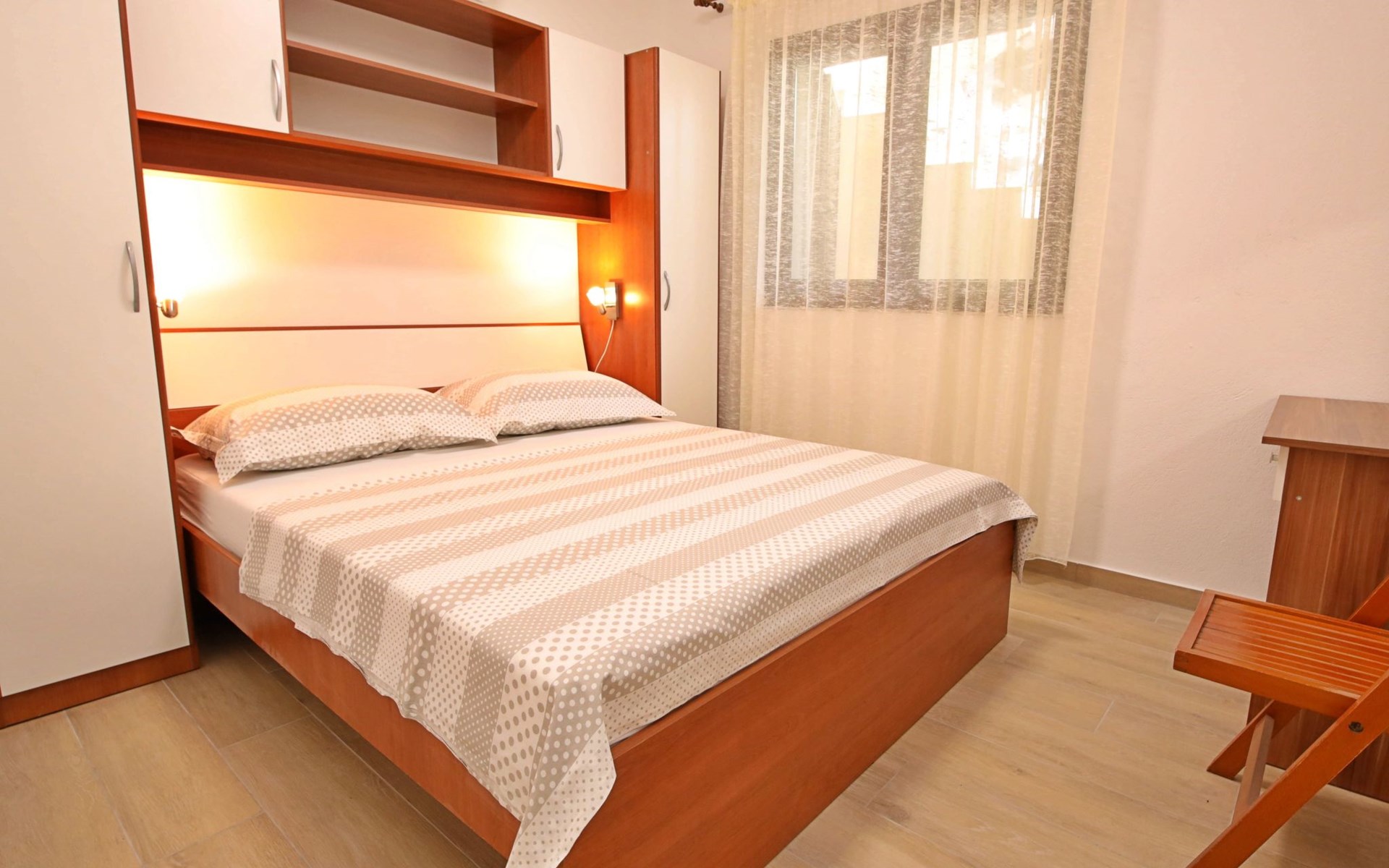 3-family house "Antoine". 700 m from the centre of Marina, in a quiet, sunny, elevated position, 360 m from the sea, 1.2 km from the beach. Private: property 500 m2 (fenced), swimming pool angular (6 x 3 m, depth 150 cm, seasonal availability: 01.Jun. - 01.Oct.) with internal staircase. Outdoor shower, garden furniture, barbecue. In the house: internet access. Parking at the house on the premises. Shop 280 m, restaurant 700 m, bus stop 800 m, pebble beach 1.2 km.