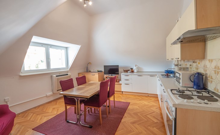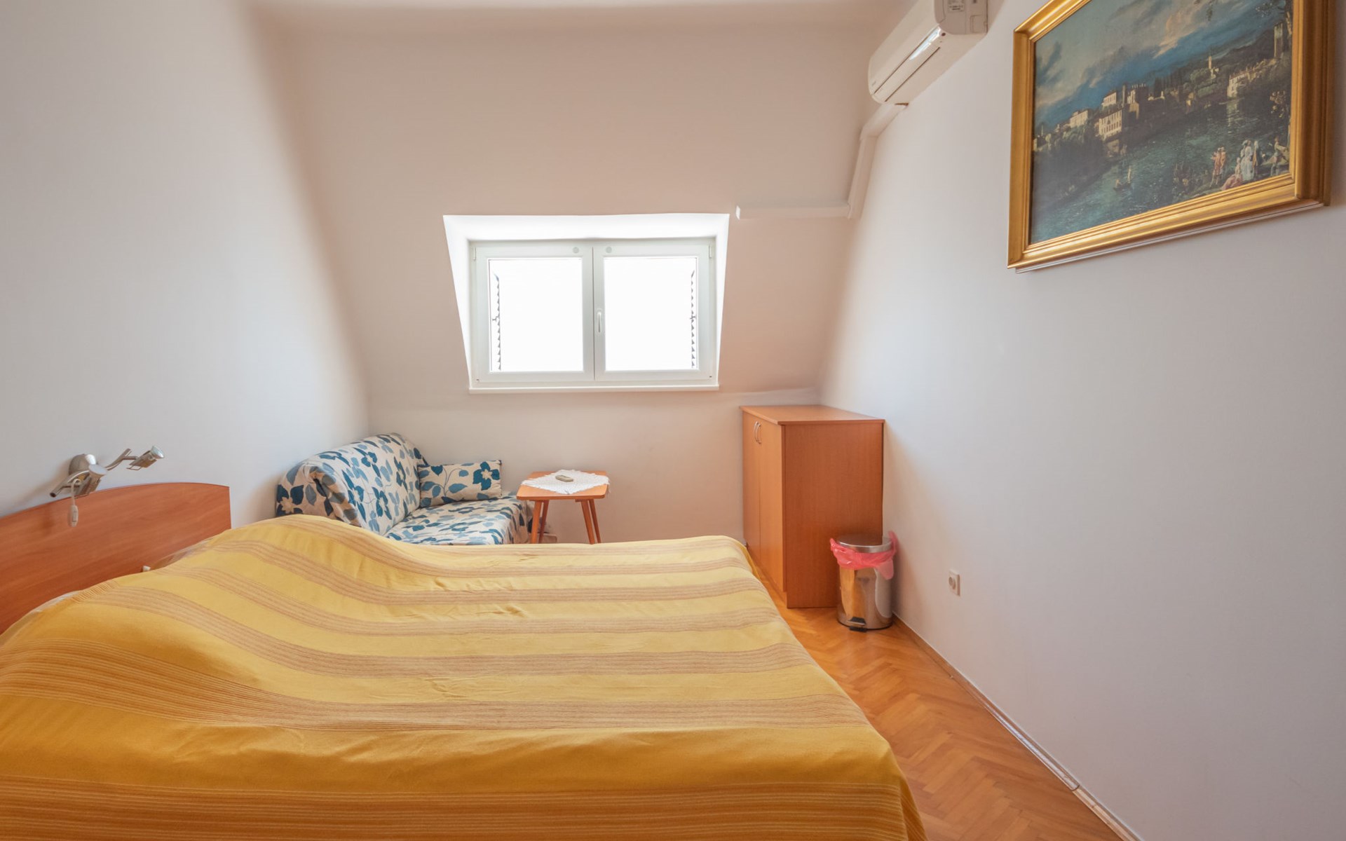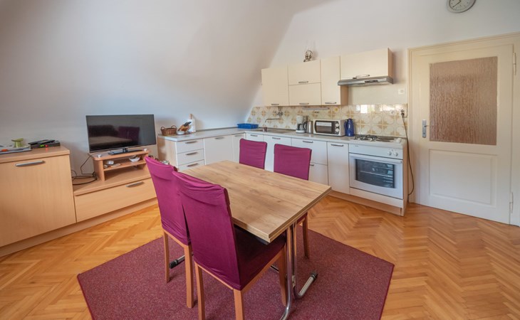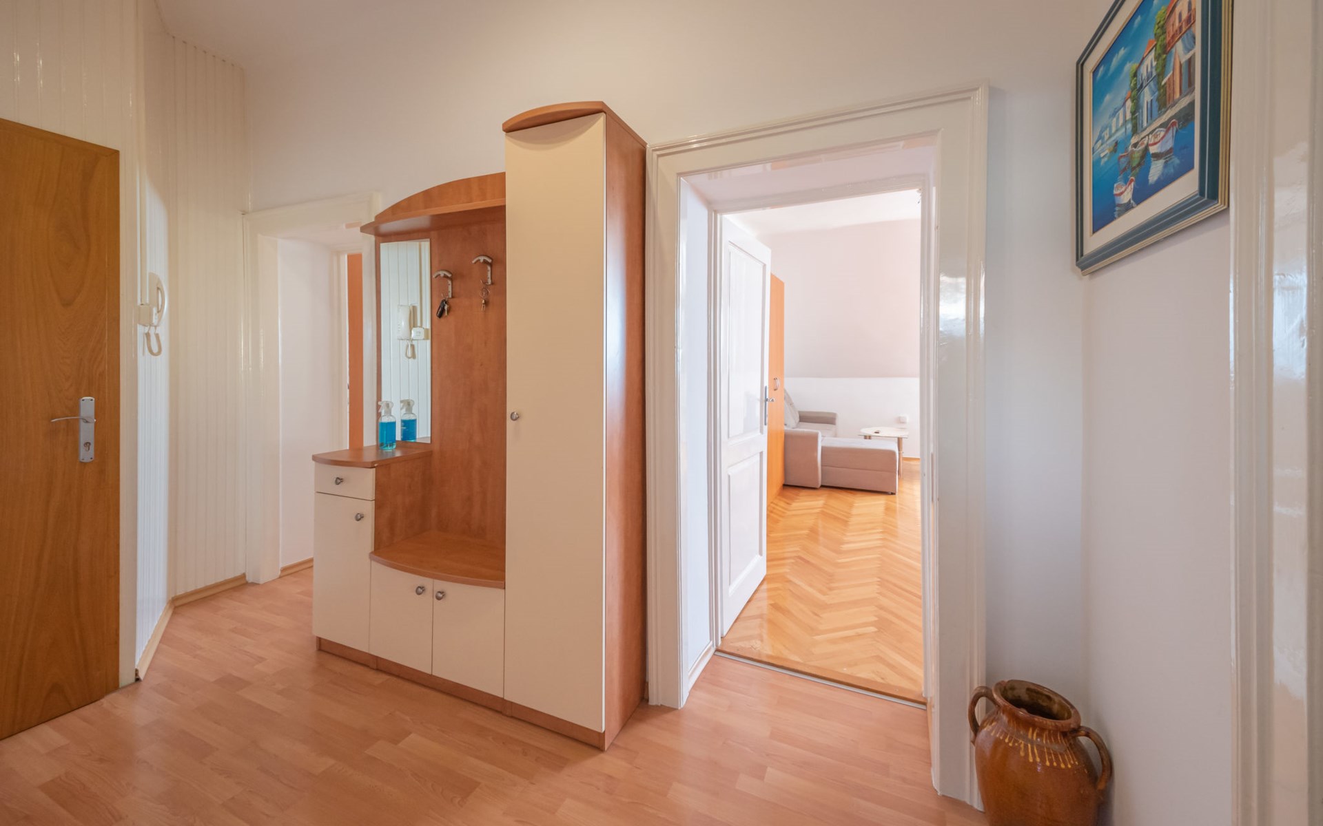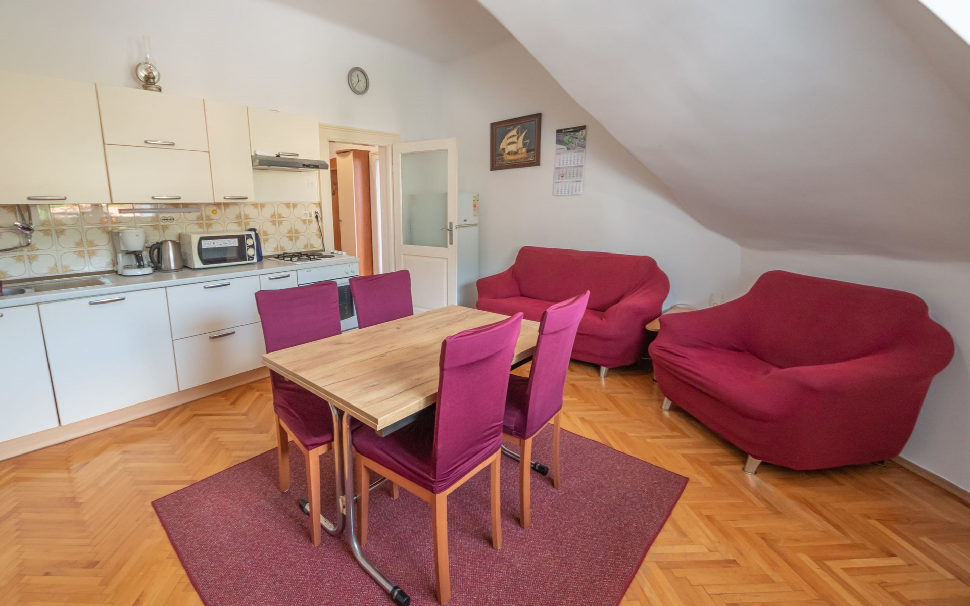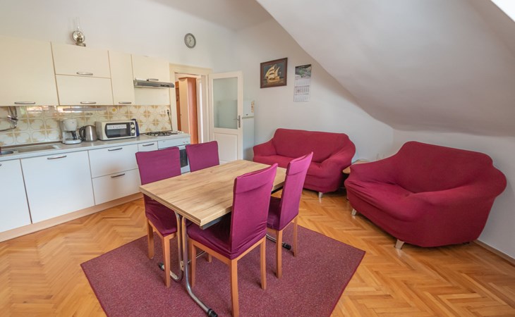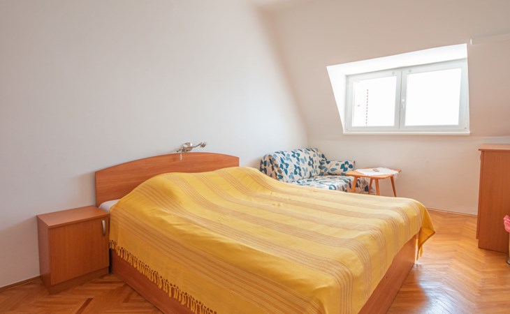 Old, beautiful, historical apartment house "Najade", built in 1906. In the resort, 15 m from the sea, 100 m from the beach. In the house: restaurant, internet access. Motor access to the house. Public parking 100 m extra. Shop 300 m, café 400 m, bus stop 300 m, pebble beach 400 m, rocky beach 100 m, public bathing area, concrete beach 100 m. Please note: Additional accommodations can be booked.