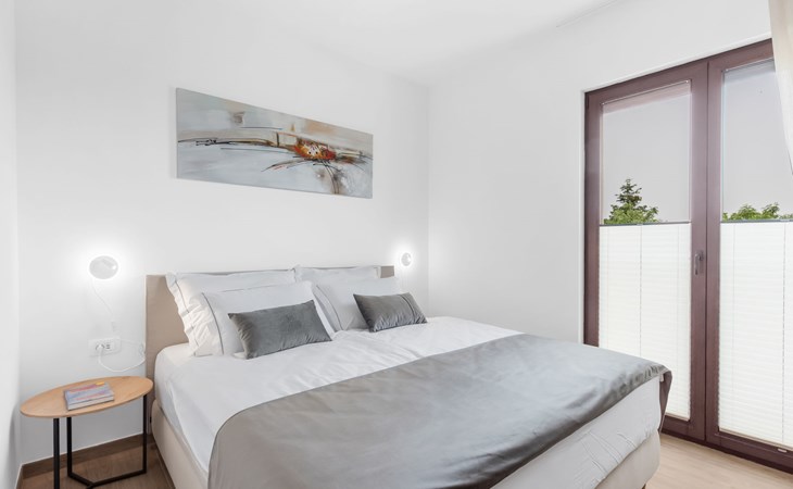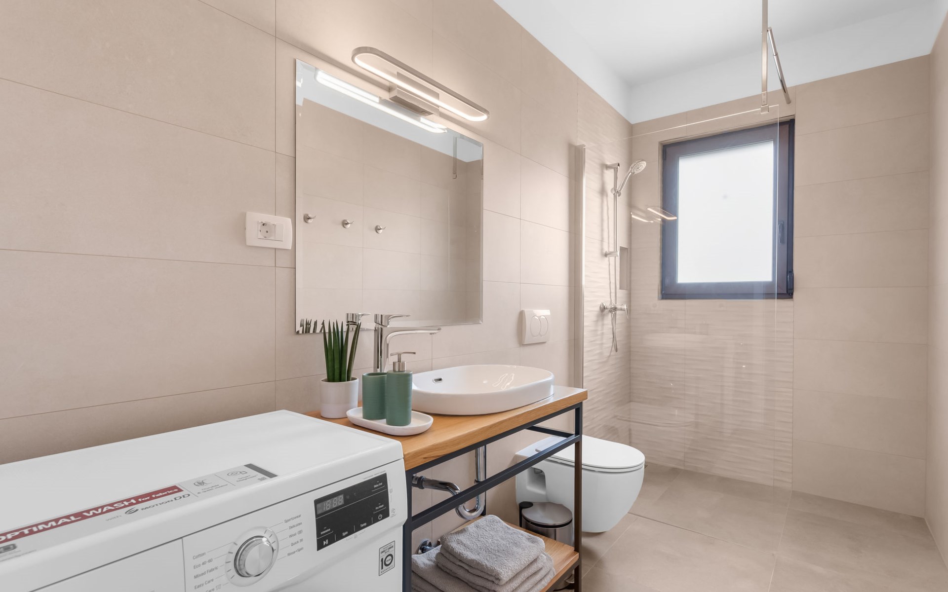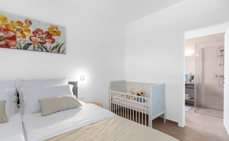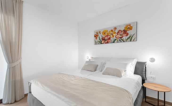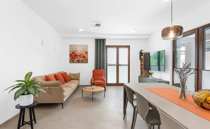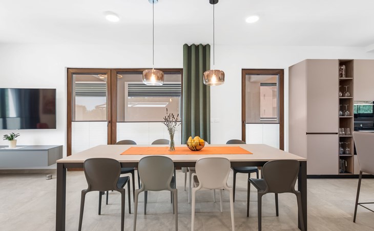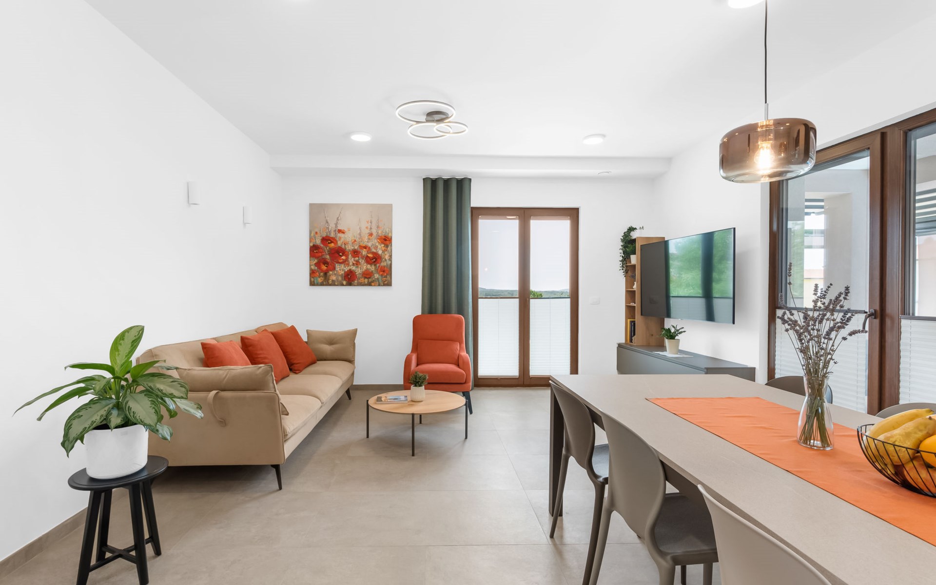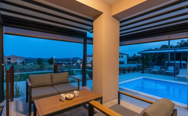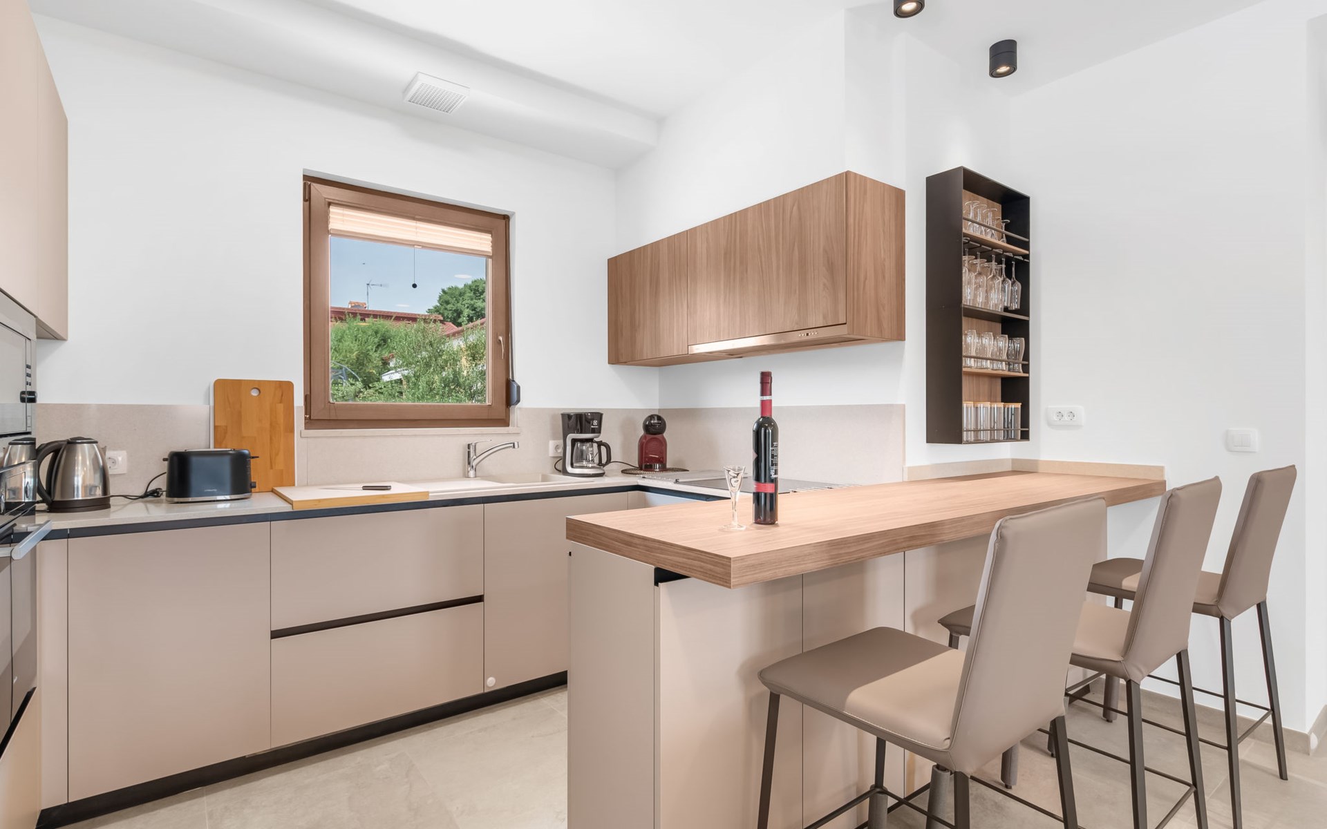 Very beautiful single-family house "Villa Karina", 2 storeys, built in 2022. In the hamlet Kadumi 5.5 km from the centre of Poreč, in a sunny position, 6 km from the sea. Private: property 1'100 m2 (fenced), swimming pool angular, heated (8 x 4 m, depth 150 cm, seasonal availability: 01.May. - 31.Oct.) with internal staircase. Outdoor shower, volleyball, badminton, barbecue, children's playground (slide, swing), pool maintenance by the owner/gardener. In the house: internet access, washing machine. Parking (for 4 cars) at the house on the premises. E-charging station. Shop 3 km, supermarket 3 km, restaurant 500 m, pebble beach 6 km, rocky beach 6 km. Walking paths from the house 100 m, cycle lane 150 m. Nearby attractions: Aquapark 5 km. Please note: suitable for families. The owner does not accept any youth groups. Swimming pool heated (extra). Outdoor kitchen (refrigerator).