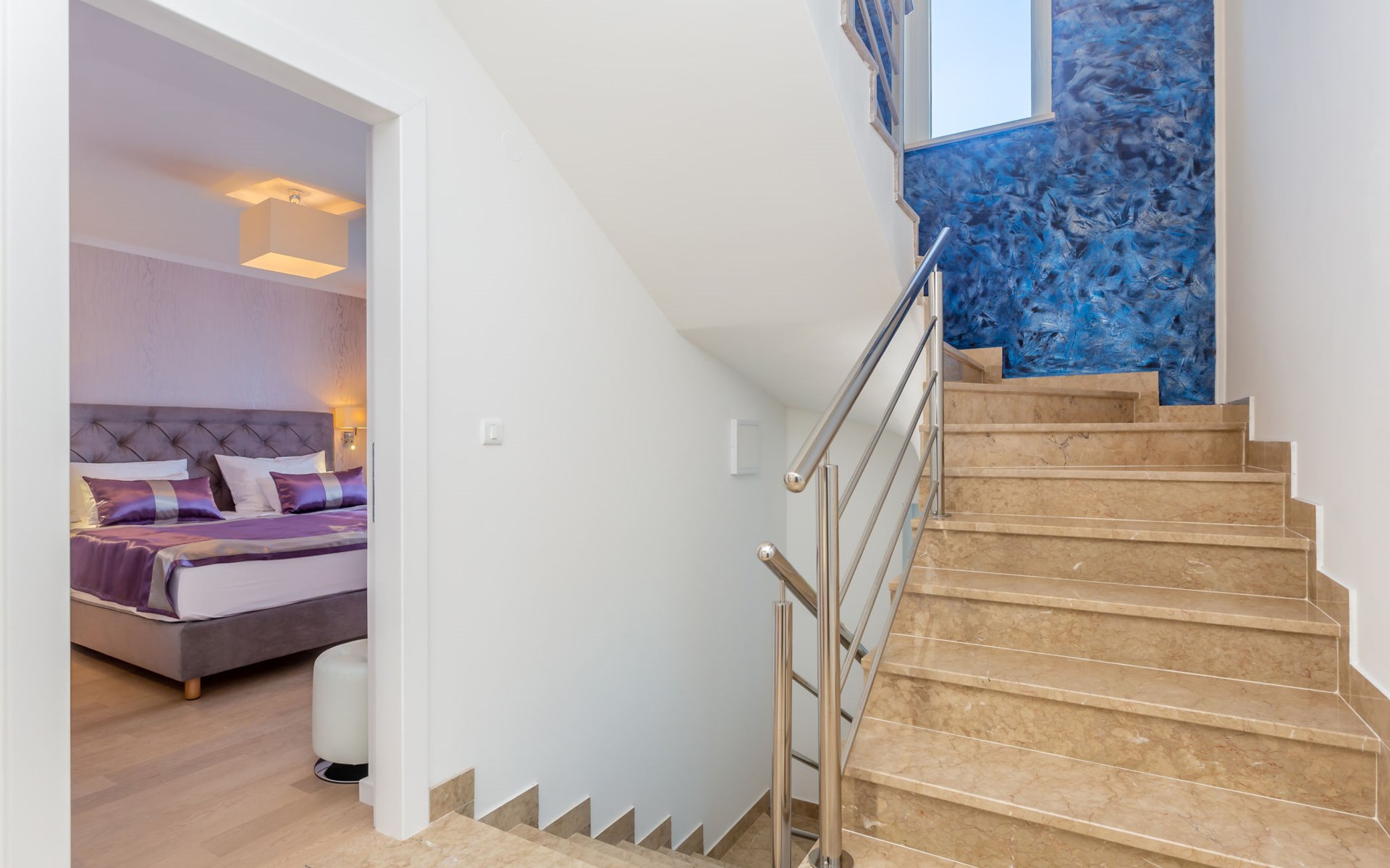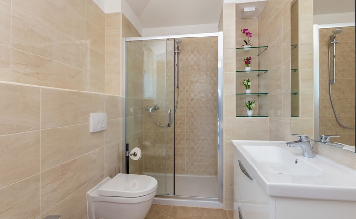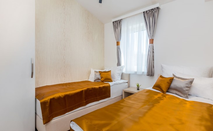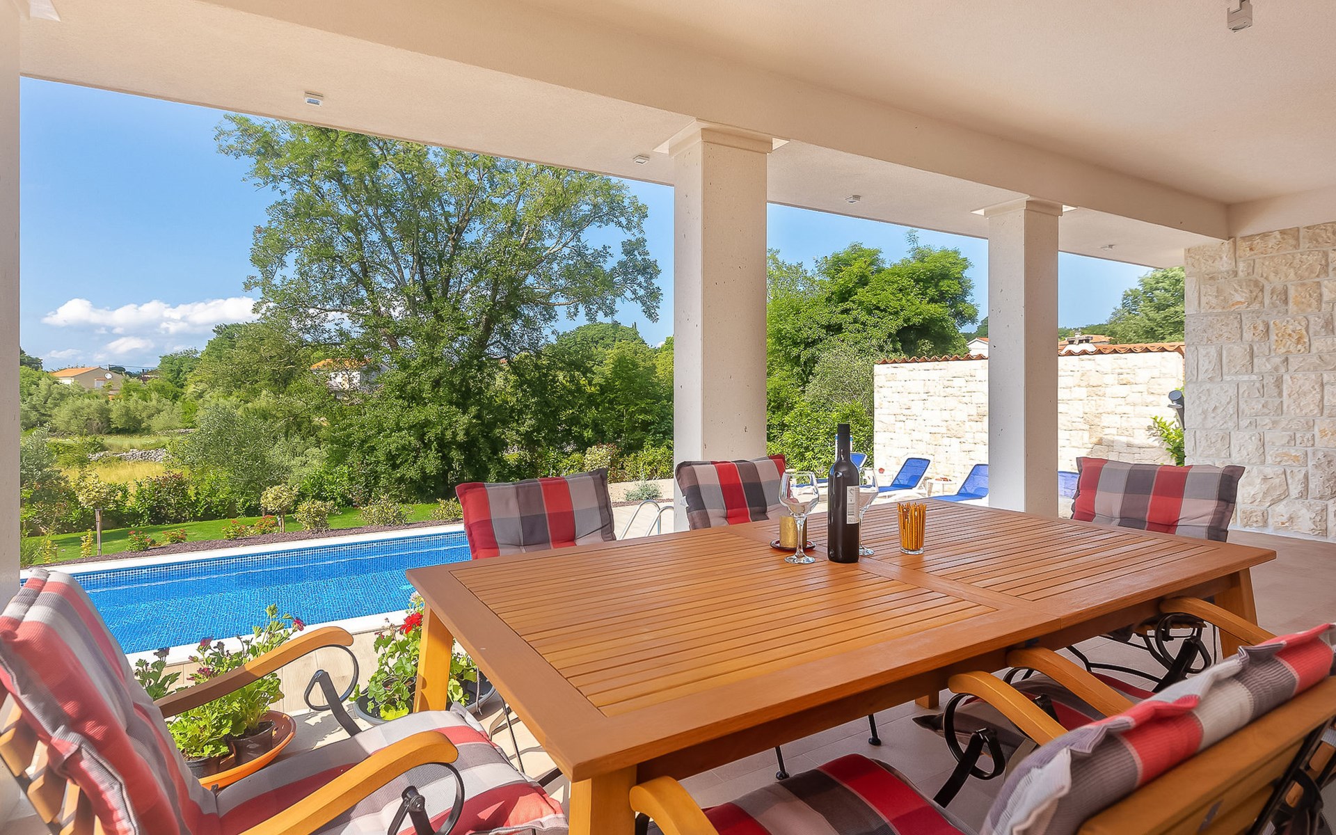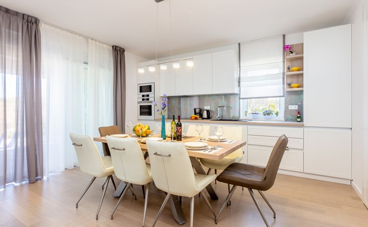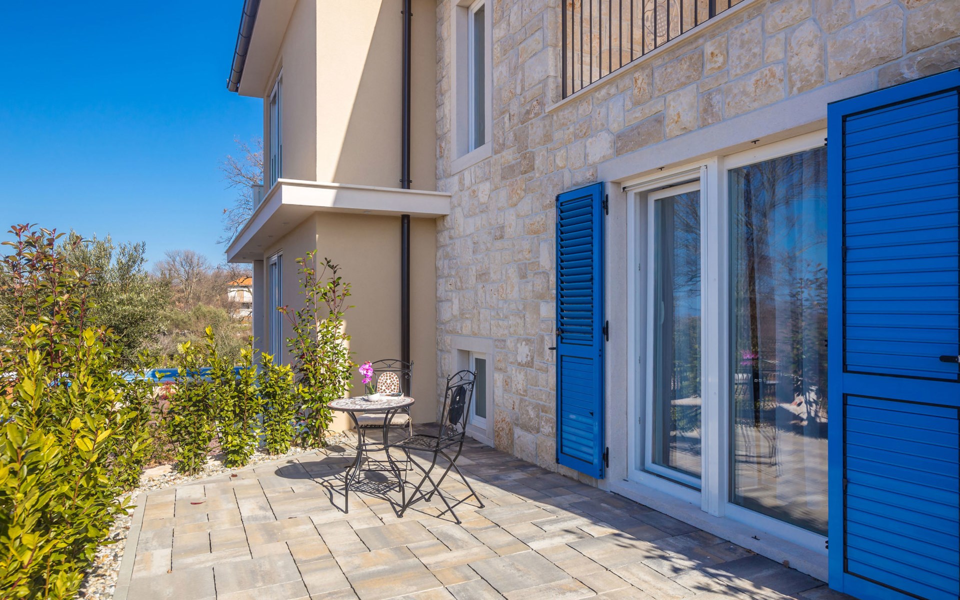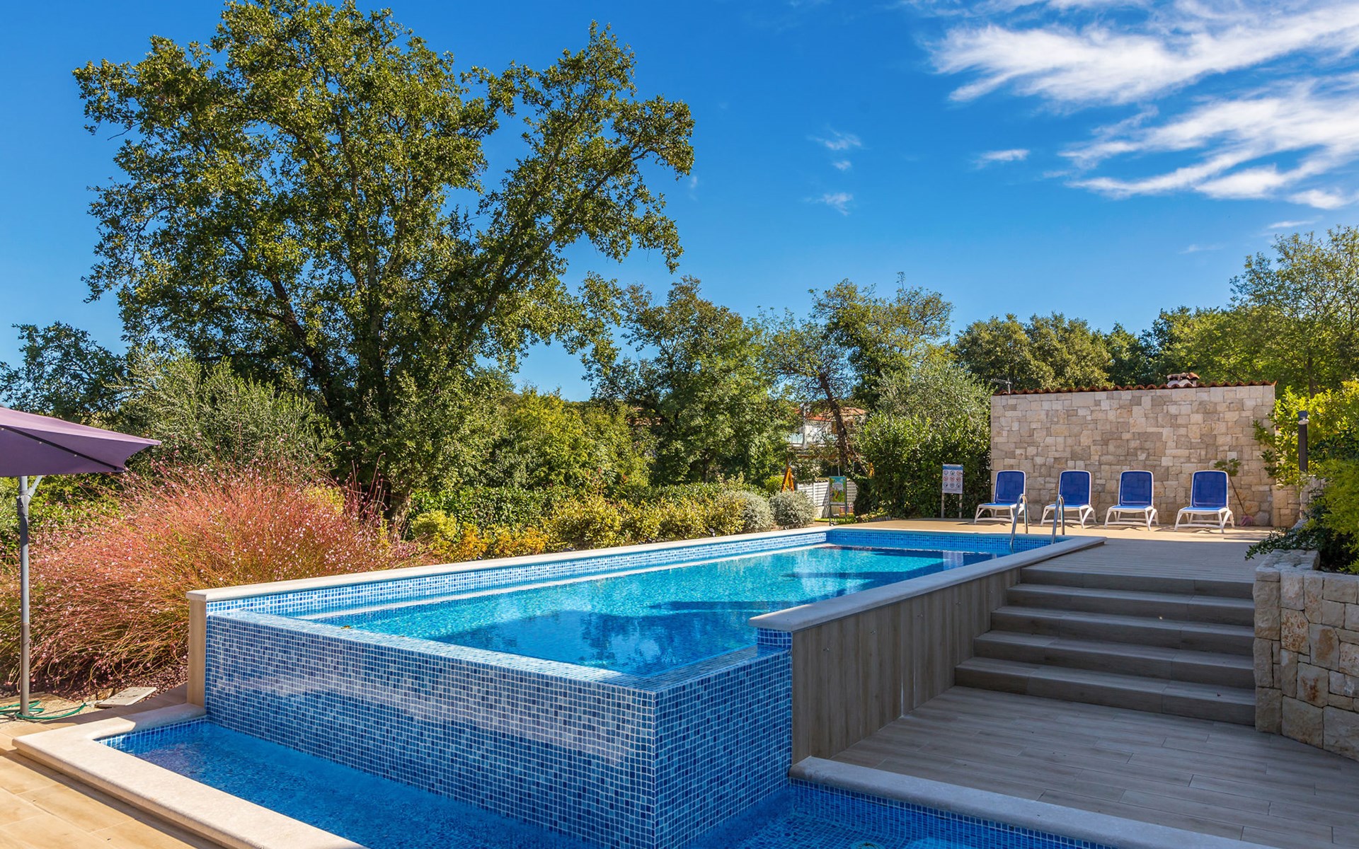 Beautiful villa "Roko", 3 storeys. In the hamlet Ljutići 2.5 km from the centre of Malinska, in a quiet, sunny position, 2.5 km from the sea, 2.5 km from the beach, in the countryside. Private: property 1'200 m2, swimming pool angular (10 x 3 m, depth 150 cm, seasonal availability: 01.May. - 31.Oct.). Paddling pool, outdoor shower, hot tub, terrace (100 m2). In the house: internet access, sauna, relaxation room, billiard table, washing machine, tumble dryer. Parking (for 4 cars) at the house on the premises. Shop 2 km, supermarket 4 km, restaurant 2 km, bus stop 1.3 km, pebble beach 2.5 km, public bathing area 2.5 km, concrete beach 2.5 km. Groups of teenagers on request only. By groups of young people double deposit is requested on arrival.