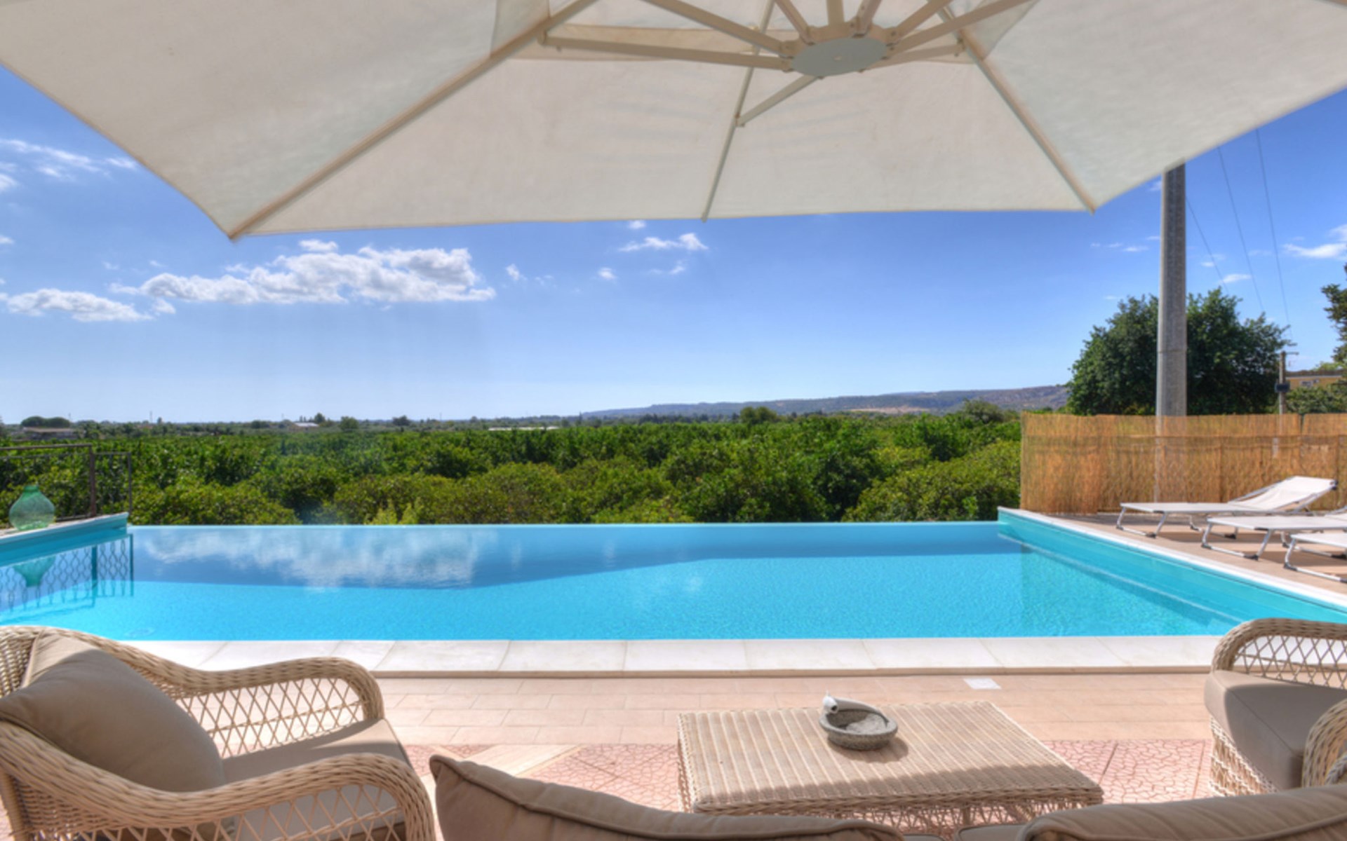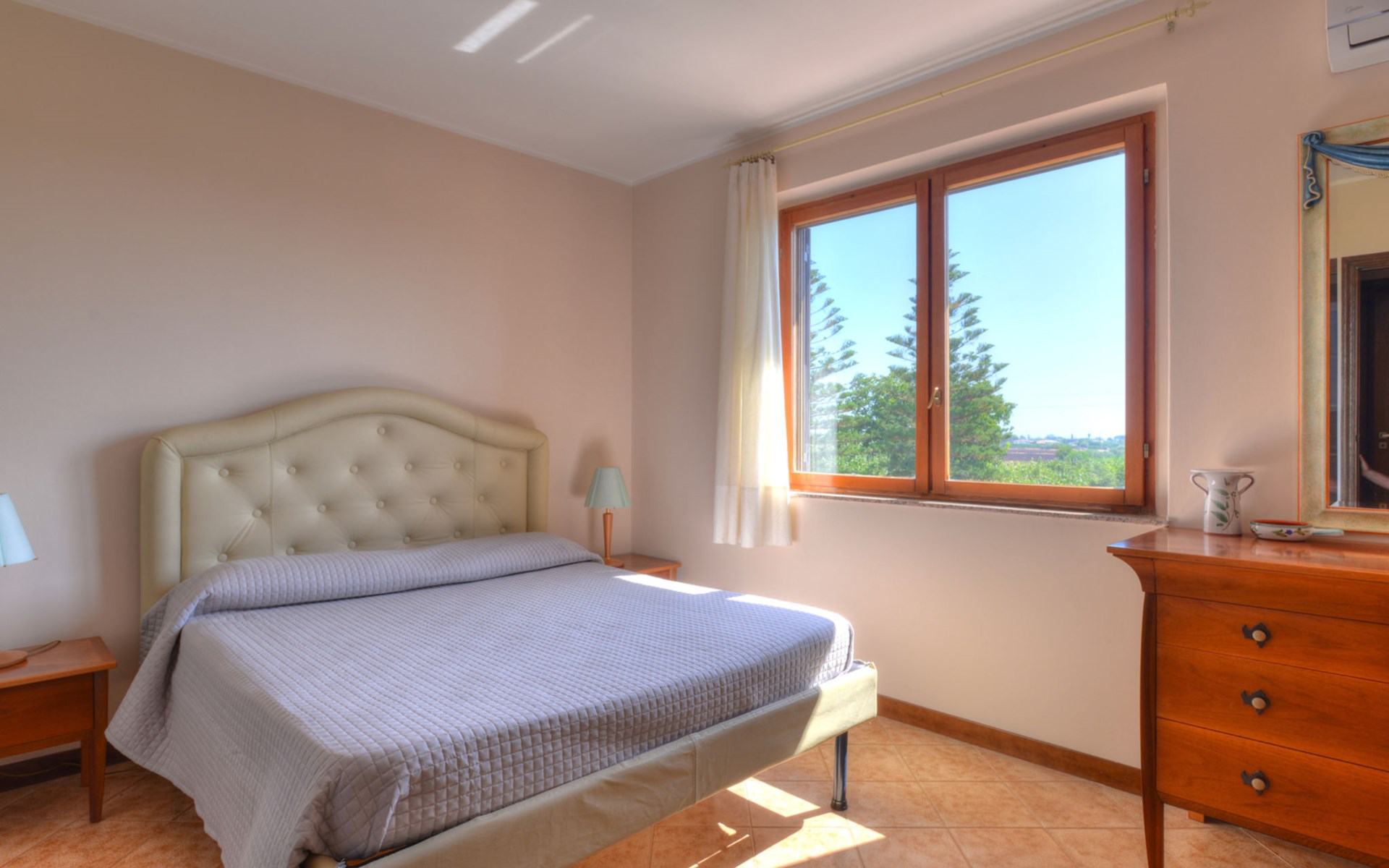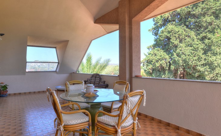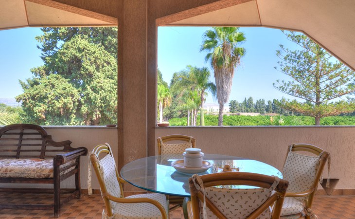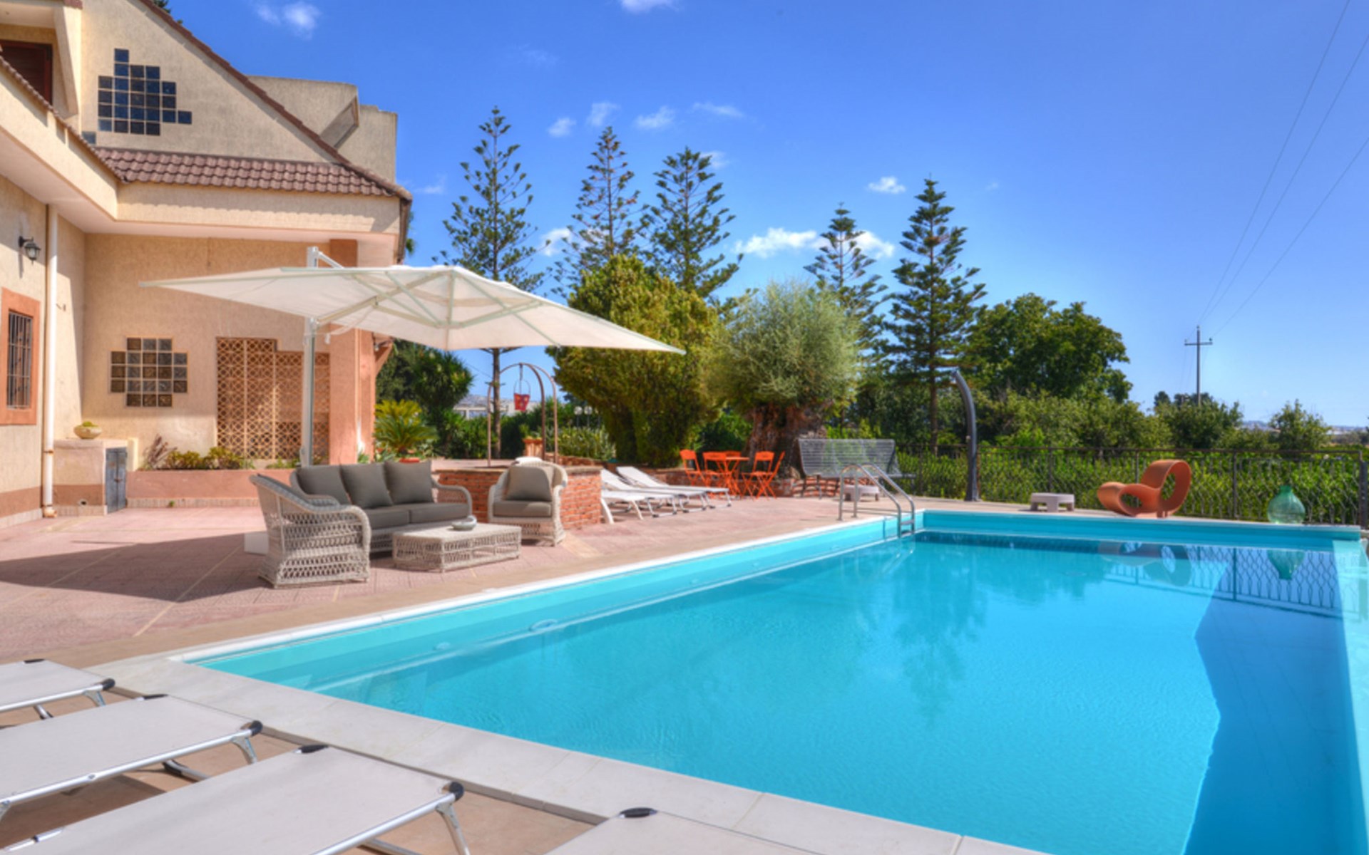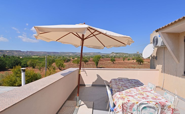 Villa "Smeraldo", surrounded by trees. 16 km from the centre of Siracusa, 4 km from the centre of Floridia, in a secluded, sunny position, 18 km from the sea. Private: property 500 m2, swimming pool (11 x 5 m, depth 140 - 200 cm, seasonal availability: 13.Jun. - 03.Oct.). Outdoor shower, pool maintenance by the owner/gardener. Stepped path to the house. Parking (for 3 cars) on the premises. Grocery 4 km, supermarket 5 km, restaurant 4 km, bar 4 km, bus stop "Floridia" 4 km, sandy beach "Fontane Bianche" 15 km. Nearby attractions: Necropoli di Pantalica 32 km, Noto 34 km, Riserva Naturale Faunistica Vendicari 40 km, Modica 68 km, Ragusa 70 km, Catania 70 km. Please note: car recommended. Animals in the neighbourhood. The property has a citrus grove, workers will occasionally be present for maintenance. The owner will be on the property daily to look after the animals in an enclosure.