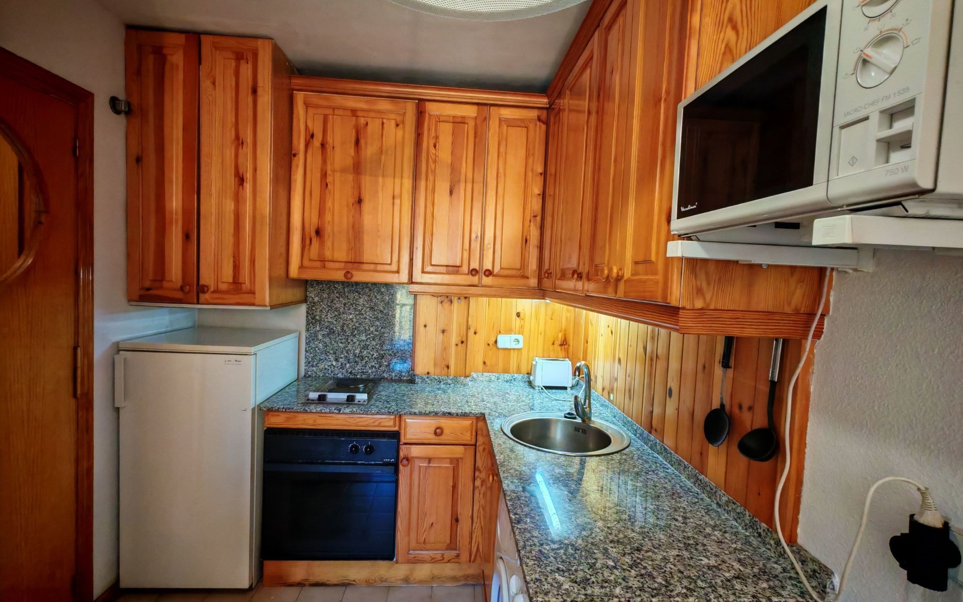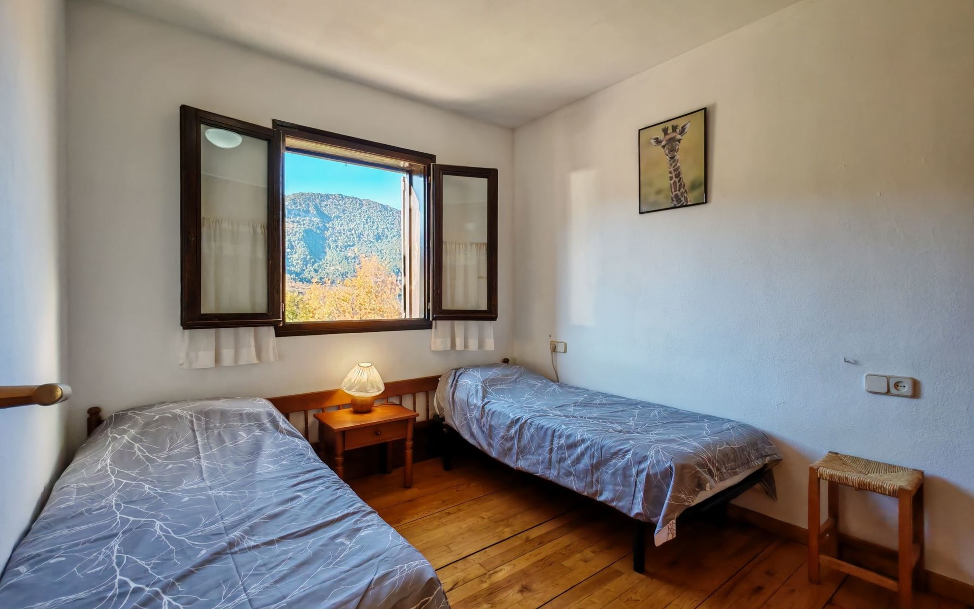 Inside, you will find all the necessary comforts to make your stay a homely and relaxing experience. The bedroom has two single beds that promise a restful sleep after a day of adventures. For added convenience, the accommodation has a washing machine for your exclusive use, ensuring you have all the facilities you need for long stays. And for those cooler evenings, the fireplace provides the perfect atmosphere to gather and share stories or simply enjoy the warmth of the fire with a nice glass of wine.