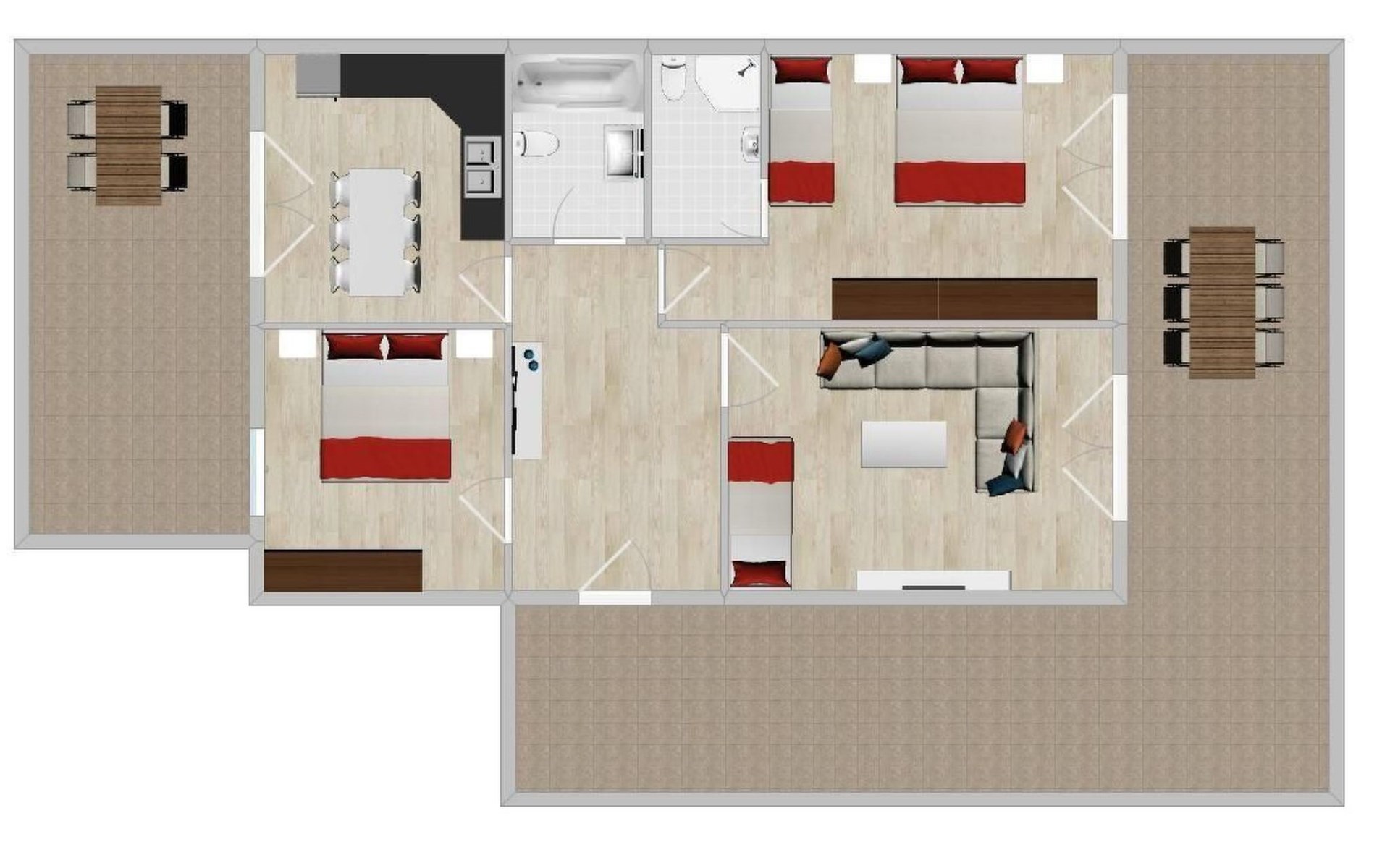 - 2x single bed