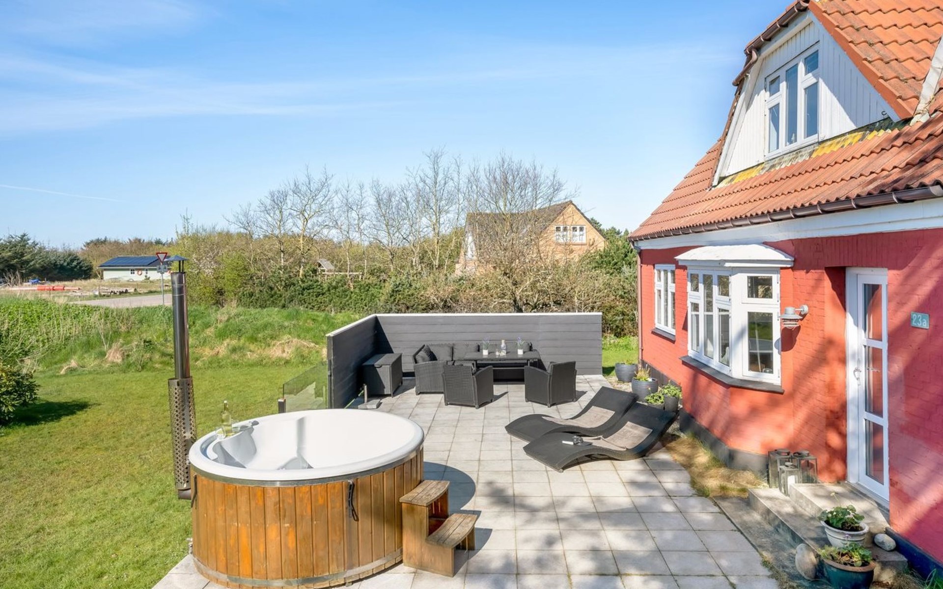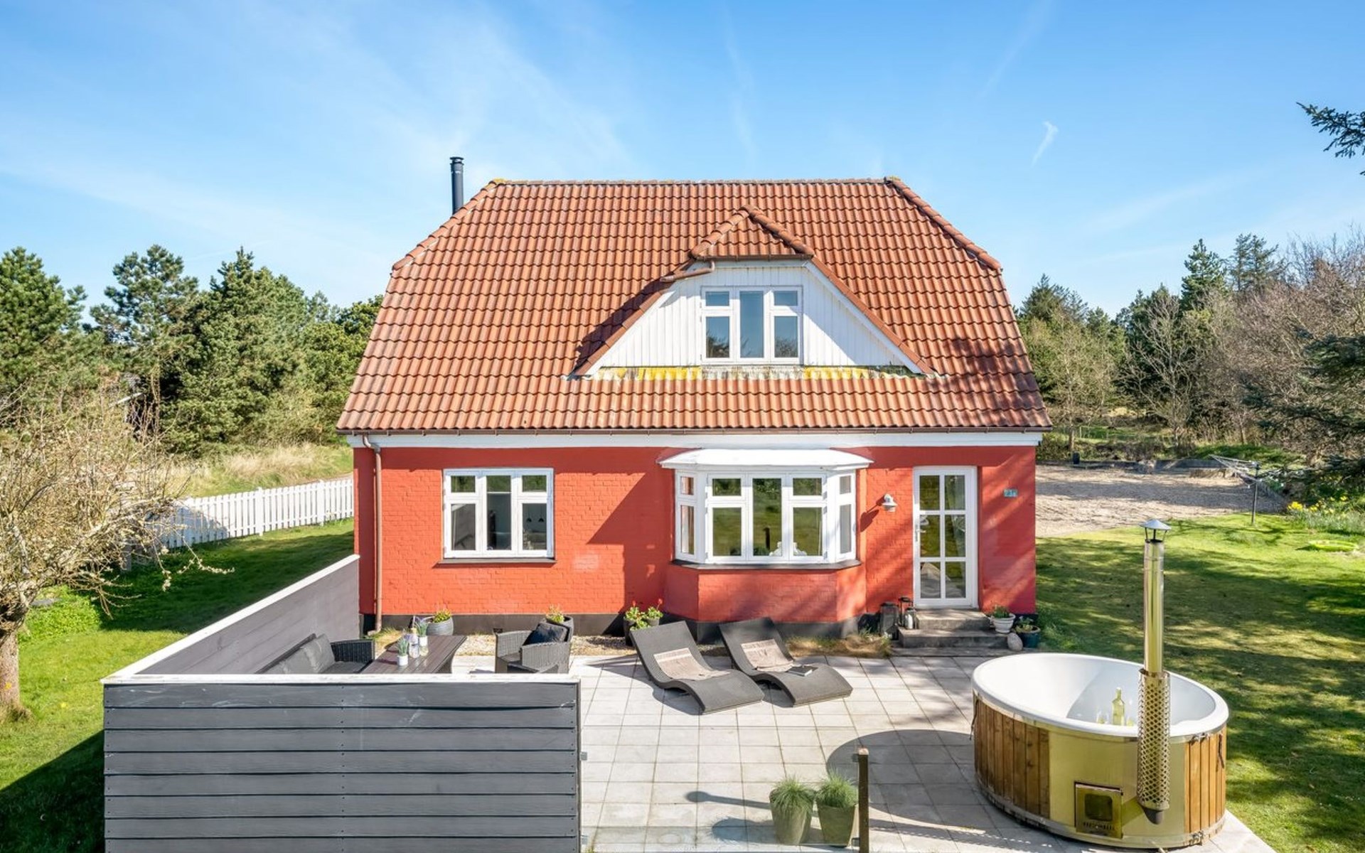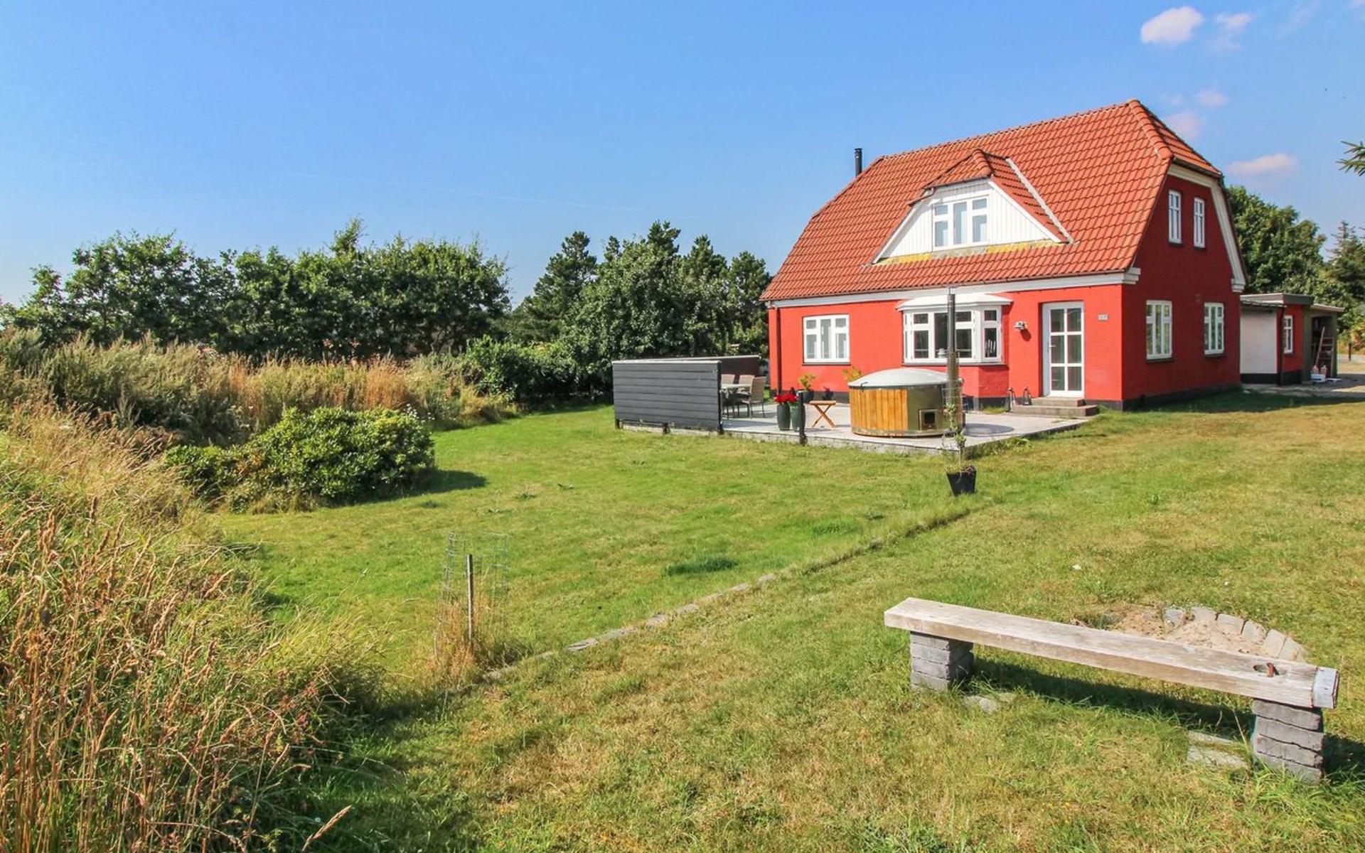 Single-family house, built in 1938. 1 km from the sea. Private: natural state property 3'900 m2. Terrace (80 m2), barbecue. In the house: table football, washing machine, tumble dryer. Parking at the house. Grocery 500 m. The owner does not accept any youth groups.
