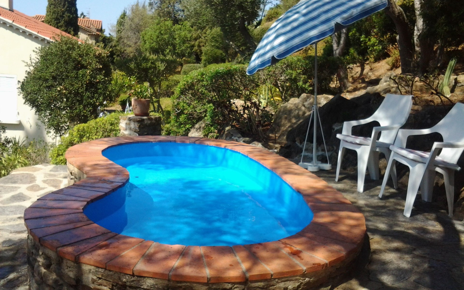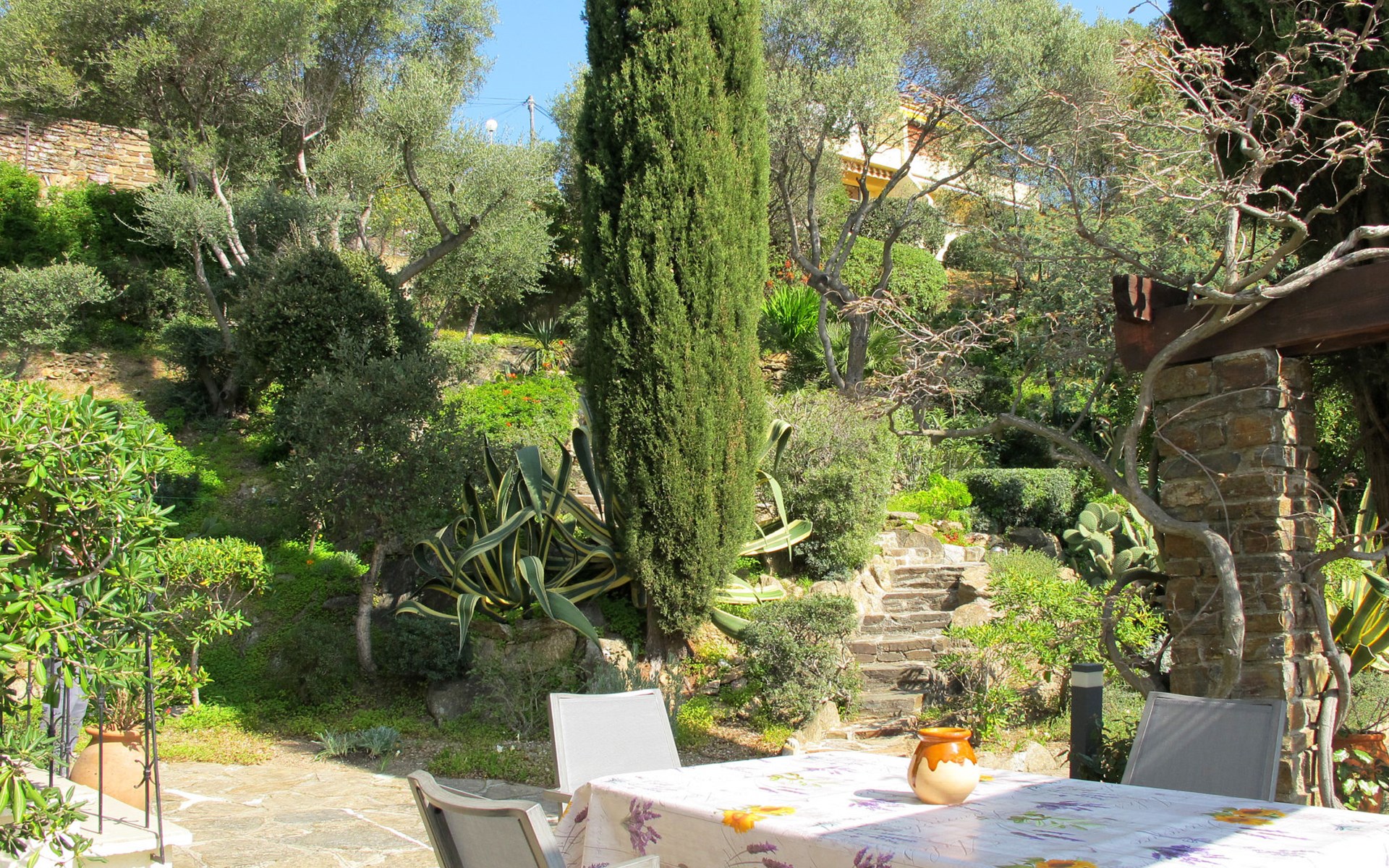 Apartment house "Villa Montemare". 4 apartments in the property. 600 m from the centre of Le Lavandou, 2.5 km from the centre of Bormes-les-Mimosas, 40 km from the centre of Toulon, on a slope, in the residential district, 750 m from the sea, 750 m from the beach. For shared use: natural state property 1'100 m2. Children's pool. In the house: laundry (extra). Stepped path (30 steps) to the house. Public parking on the road. Parking space or garage only for small to medium-sized cars. Dimension: height 180 cm width 200 cm. Shop 600 m, bus stop 500 m, sandy beach 750 m. Golf course (18 hole) 2 km, sailing school 1 km, tennis 1 km. Please note: baby equipment on request (included). Additional accommodations can be booked.