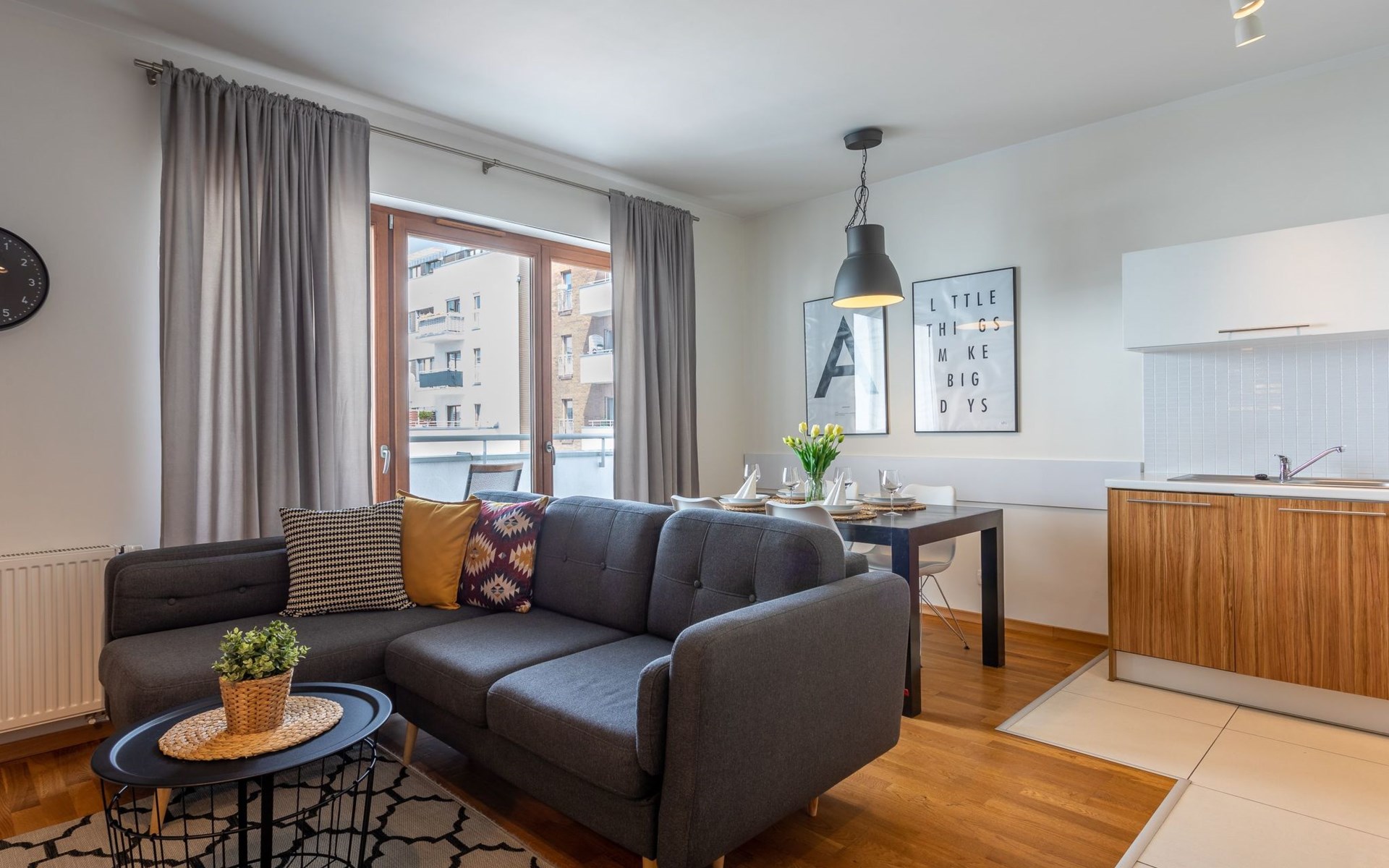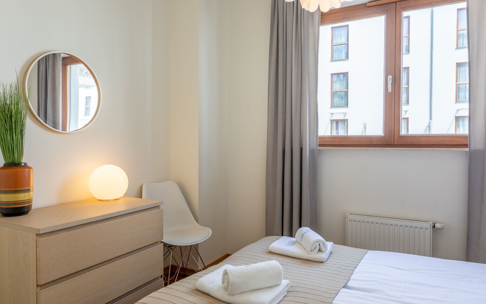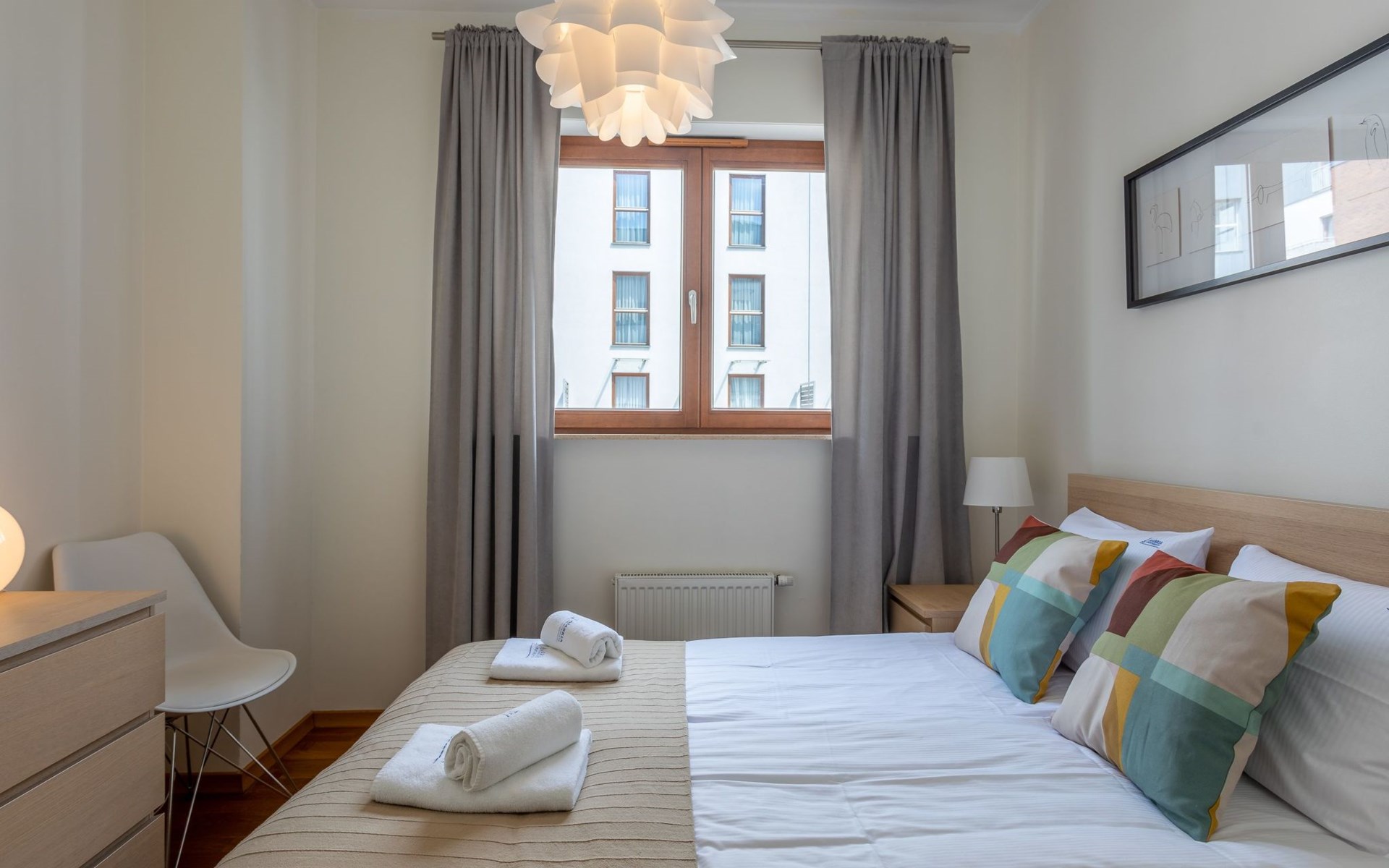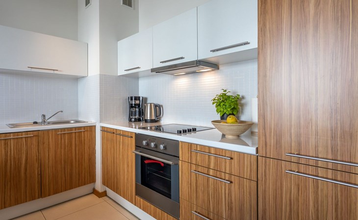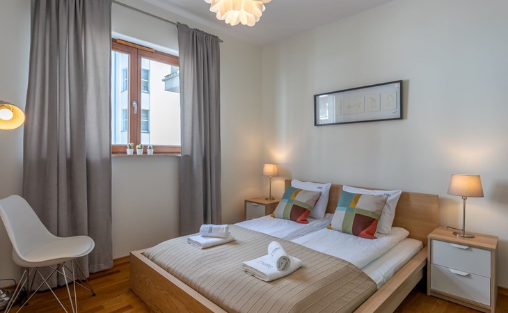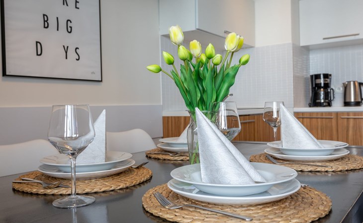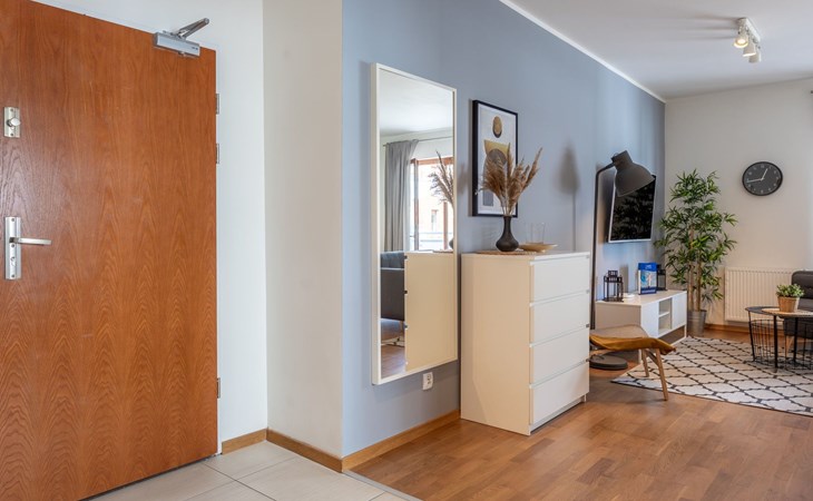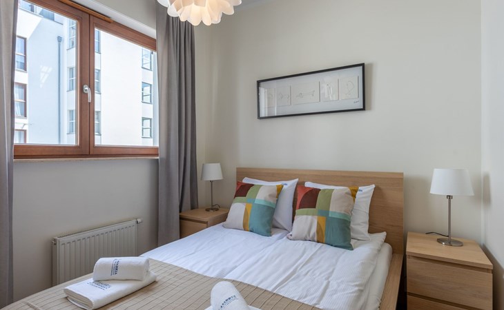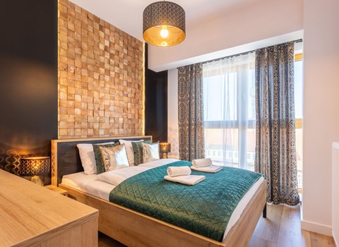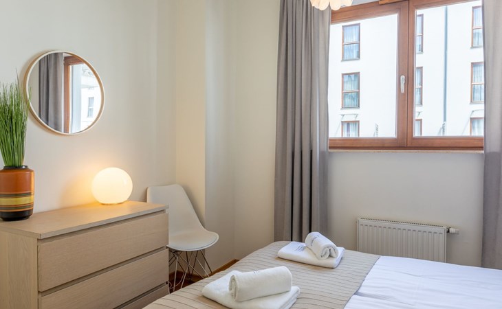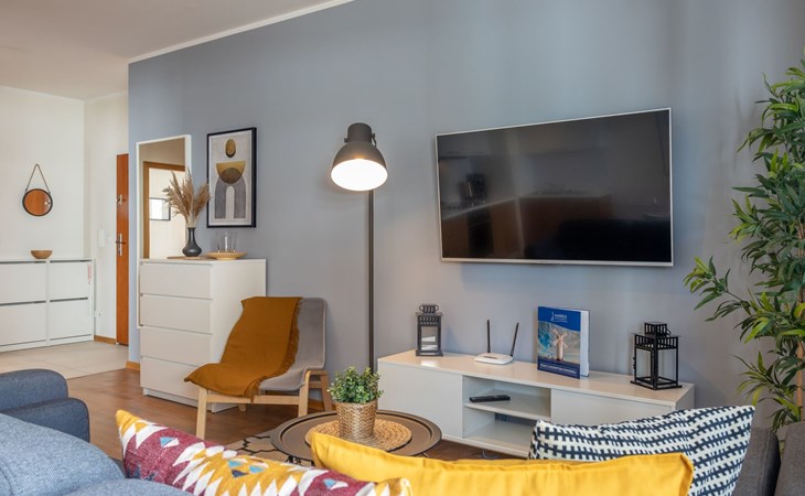 The "Platan IV" flat in Świnoujście is a unique place of rest and relaxation, loved by our guests who appreciate comfort and convenience as well as proven modern solutions that facilitate everyday and intuitive functioning. "Platan IV" is a fully equipped flat with two bedrooms, a living room with a kitchenette and a bathroom with a total area of 56 m2. Its additional advantage is a very spacious balcony from which you can admire the surrounding greenery and recharge your batteries between subsequent holiday activities full of impressions. It is a modern Scandinavian-style interior - bright, simple and functional. It is dominated by earthy colours: Beige, grey and brown. Its visual qualities are further emphasised by daylight through large areas of glazing. Thanks to numerous amenities, comprehensive facilities and understated aesthetics, it is suitable for both short and longer stays - although it definitely favours the latter option and allows you to relax in pleasant surroundings.