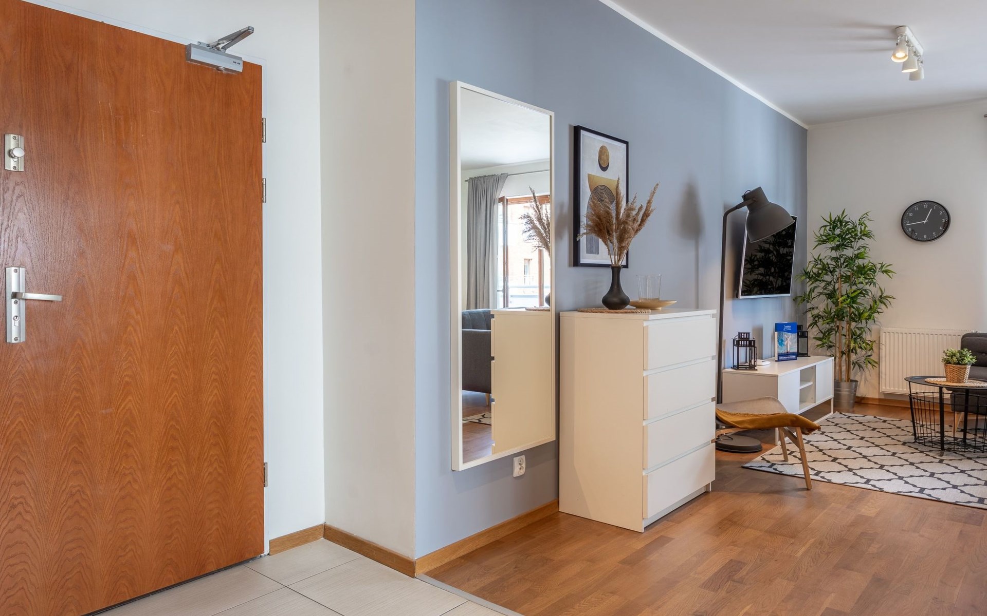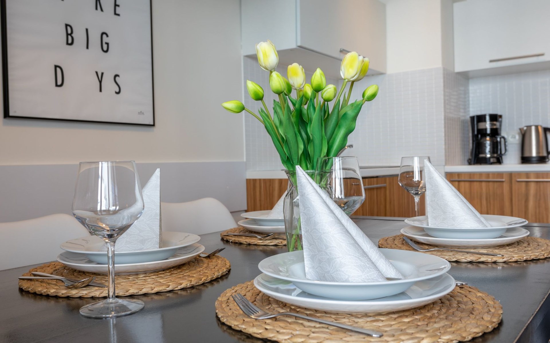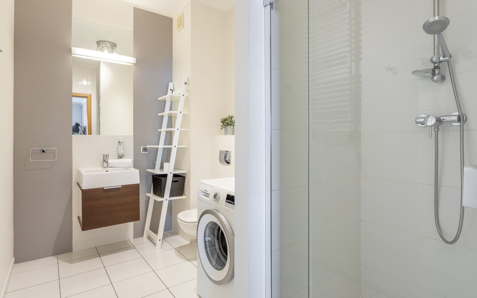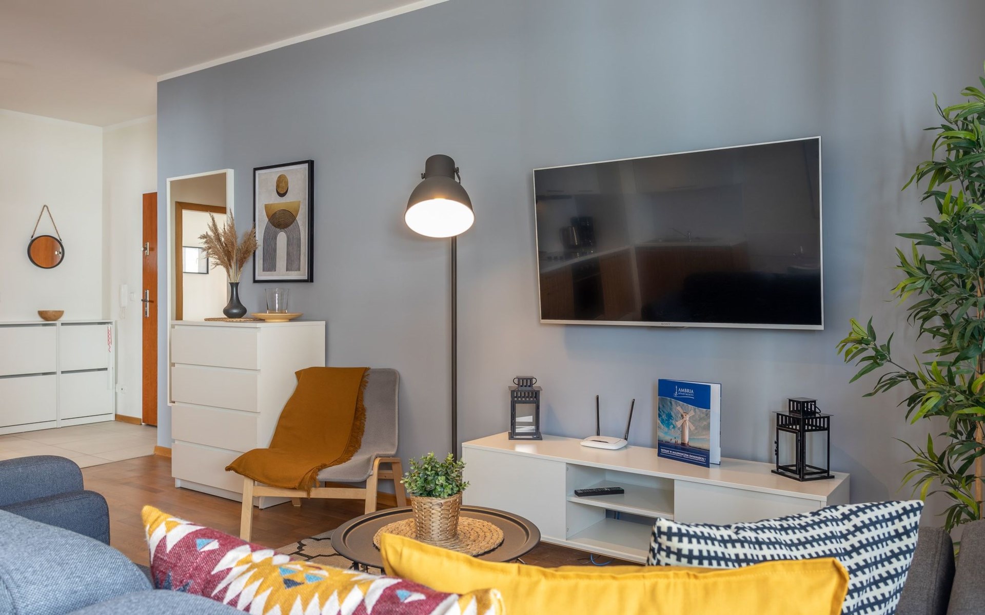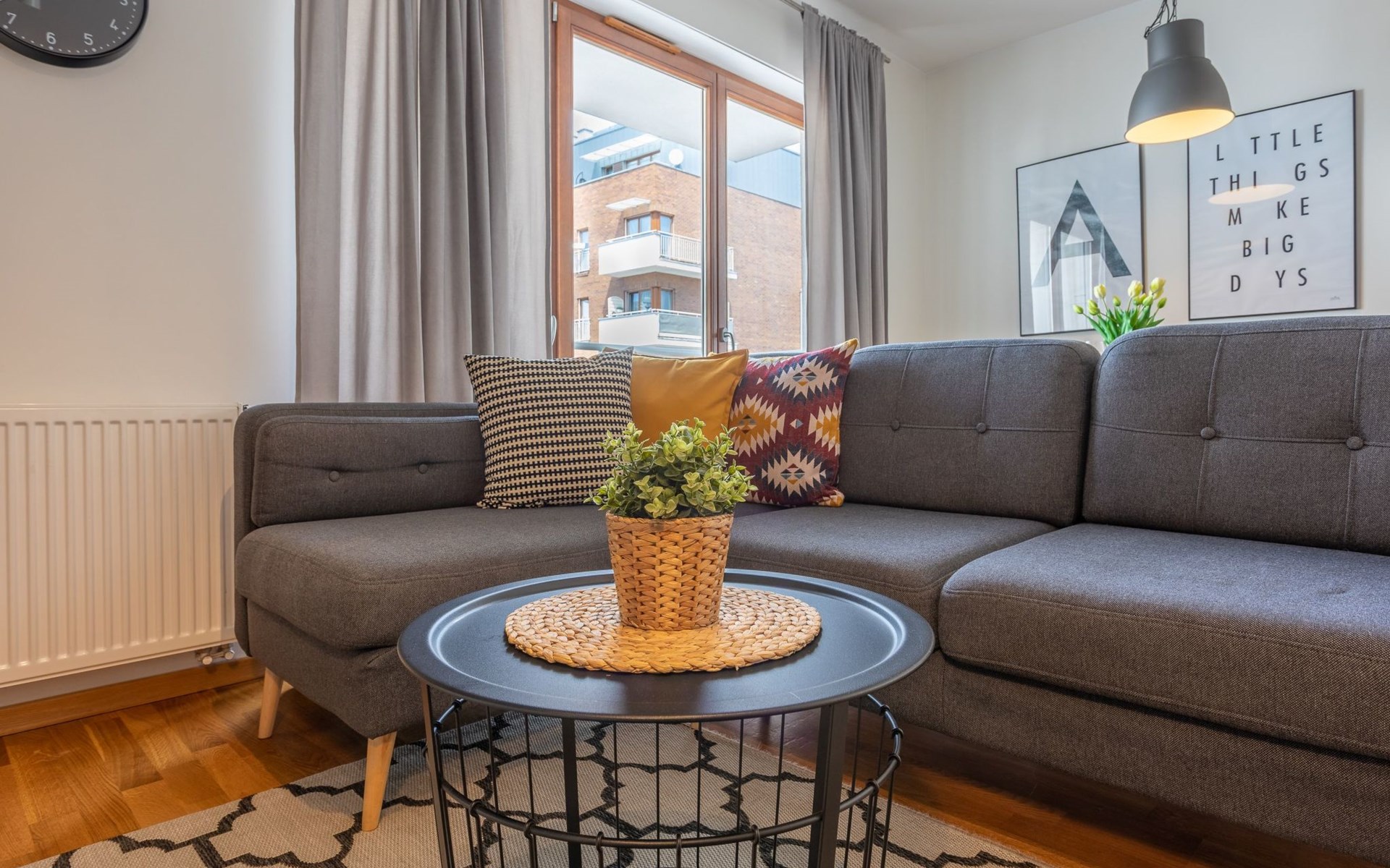 The "Platan IV" flat in Świnoujście is a unique place of rest and relaxation, loved by our guests who appreciate comfort and convenience as well as proven modern solutions that facilitate everyday and intuitive functioning. "Platan IV" is a fully equipped flat with two bedrooms, a living room with a kitchenette and a bathroom with a total area of 56 m2. Its additional advantage is a very spacious balcony from which you can admire the surrounding greenery and recharge your batteries between subsequent holiday activities full of impressions. It is a modern Scandinavian-style interior - bright, simple and functional. It is dominated by earthy colours: Beige, grey and brown. Its visual qualities are further emphasised by daylight through large areas of glazing. Thanks to numerous amenities, comprehensive facilities and understated aesthetics, it is suitable for both short and longer stays - although it definitely favours the latter option and allows you to relax in pleasant surroundings.