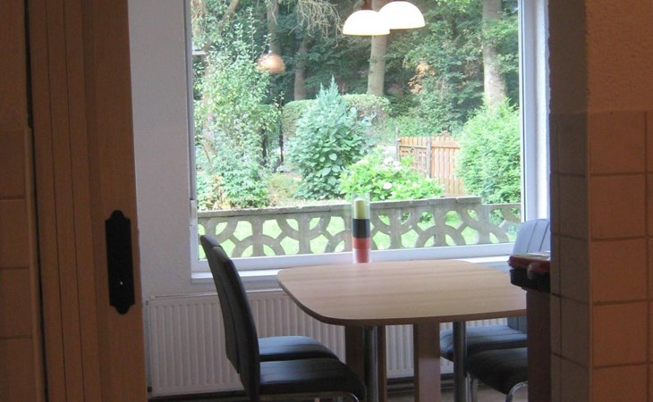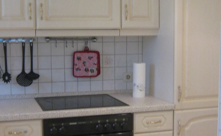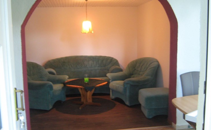 The holiday flat is equipped with a fitted kitchen, living room with dining area, sofa and pellet stove, bedroom with double bed (2 x 2 m) and a shower room. The pellet stove with connected heating can provide cosy warmth on cooler days. Heating material is provided.