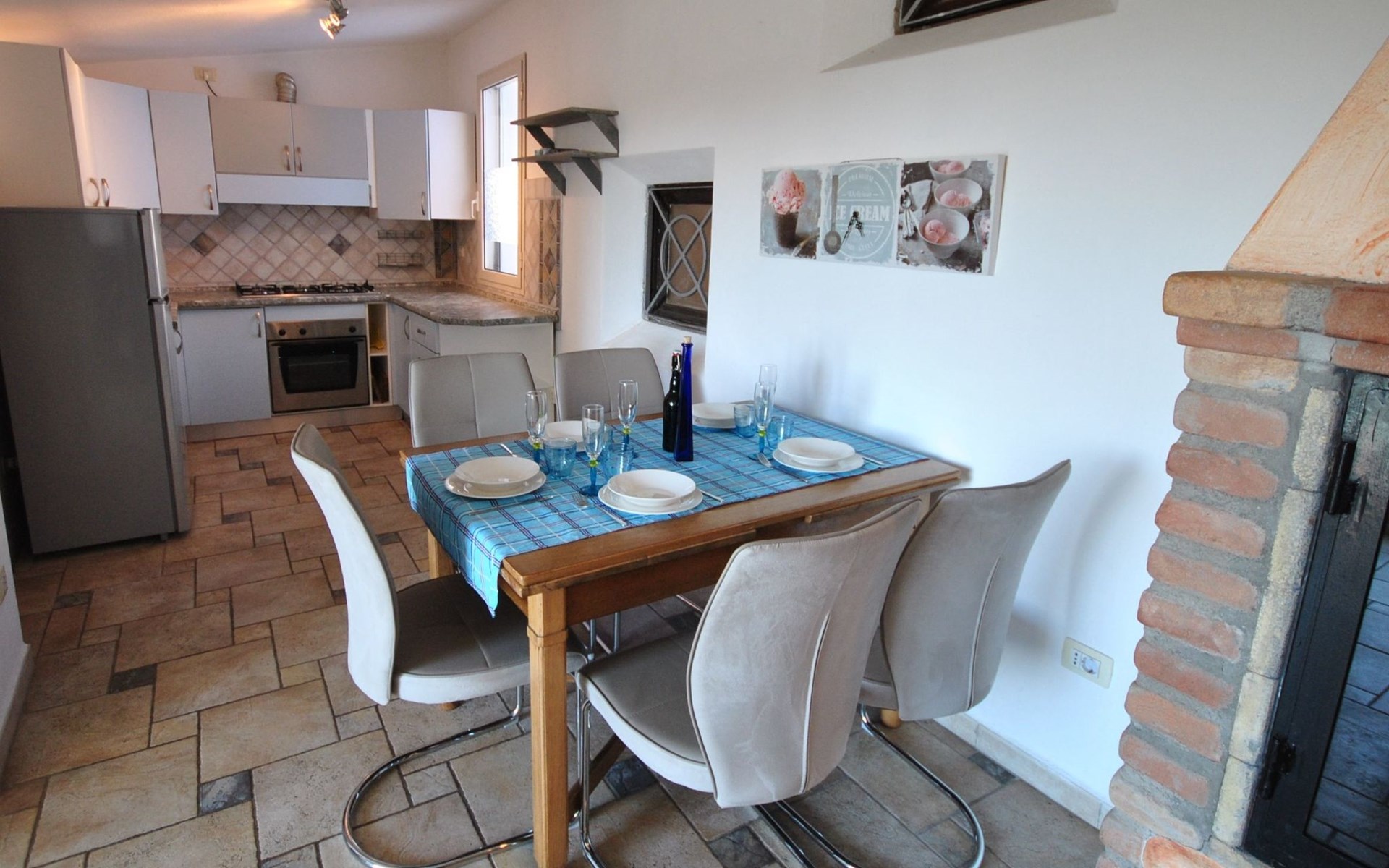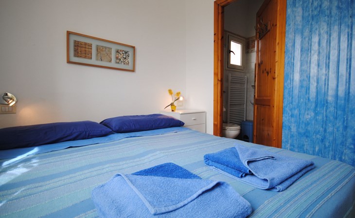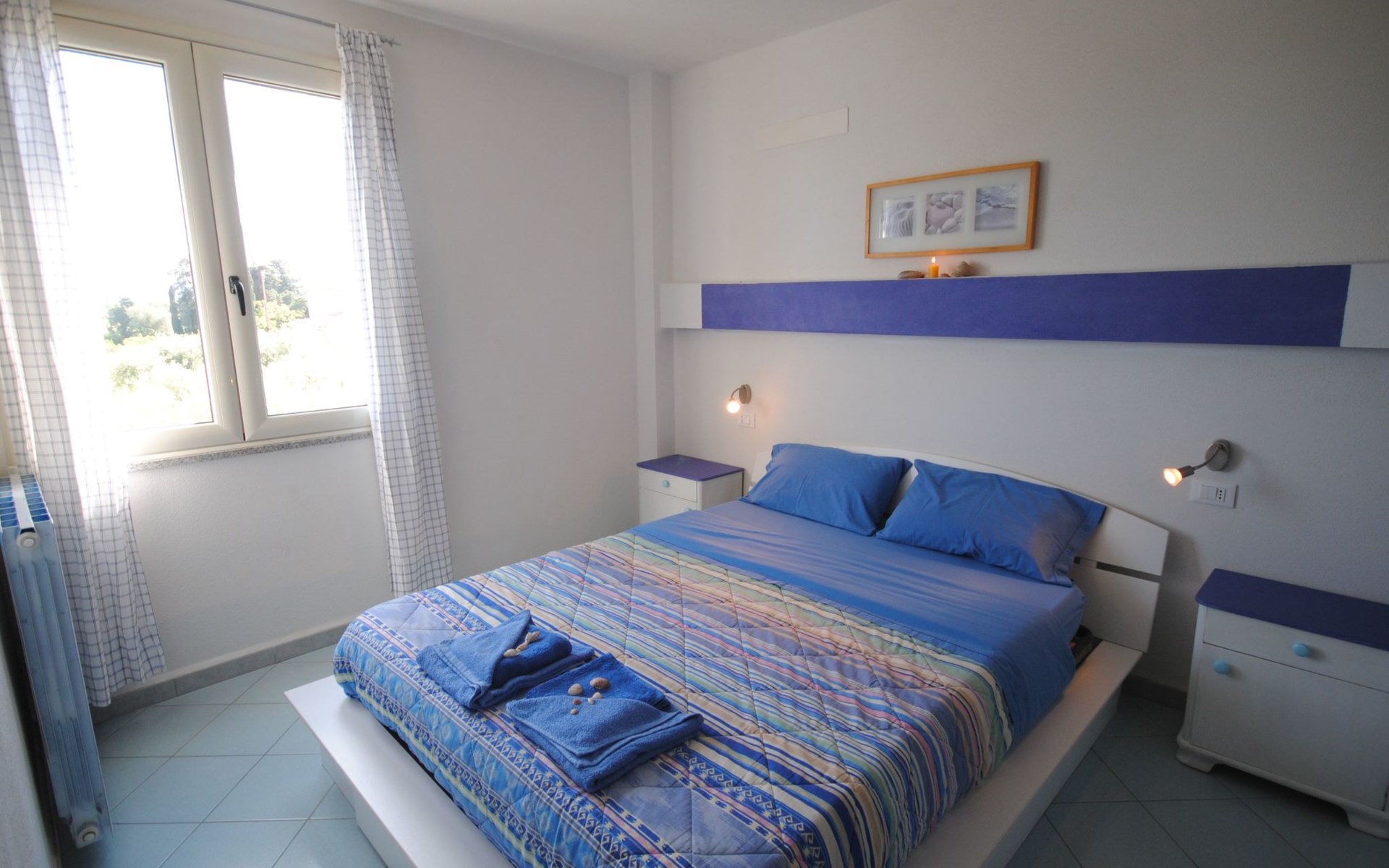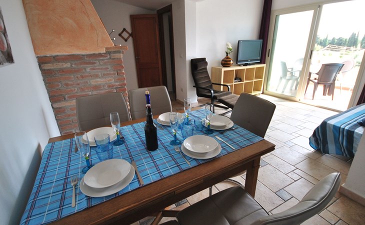 3-room flat 55 m², for 4 persons, 1st floor with 10 m² terrace, 1 large and 1 small bedroom with double bed and private bathroom. Kitchen-living room with double sofa bed. Fireplace and veranda with marvellous view of olive grove and mountains. Air conditioning/heating, fully equipped kitchen, fridge, freezer, gas hob, oven, washing machine in common room, tastefully furnished rooms (see photos, subject to change), barbecue. INCLUDED IN THE PRICE: air conditioning/heating, car park in the courtyard, WIFI, TV and towels.