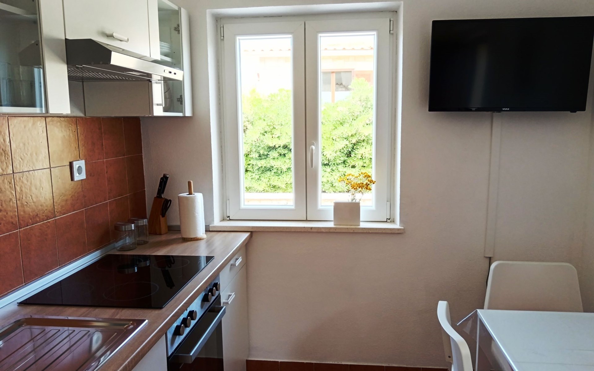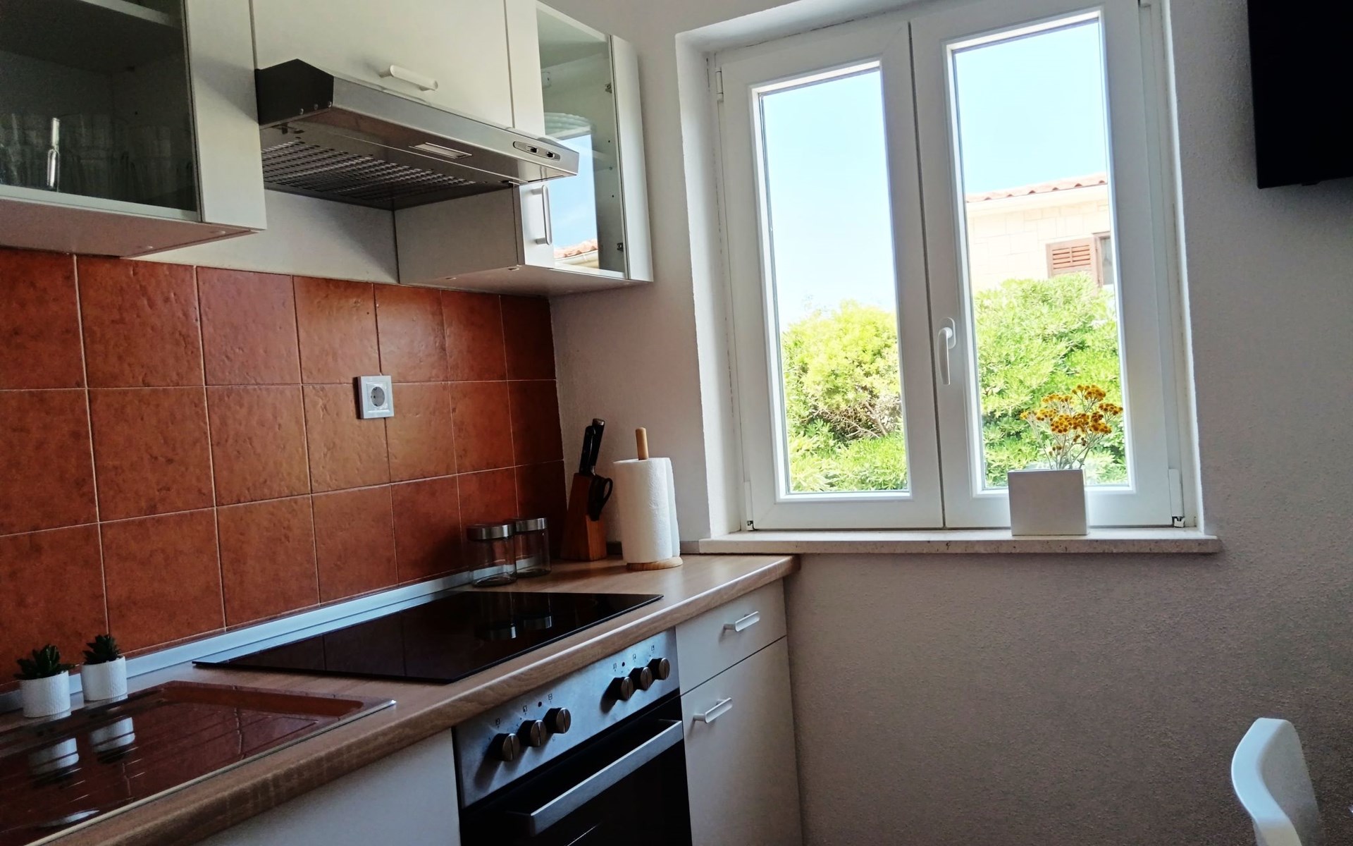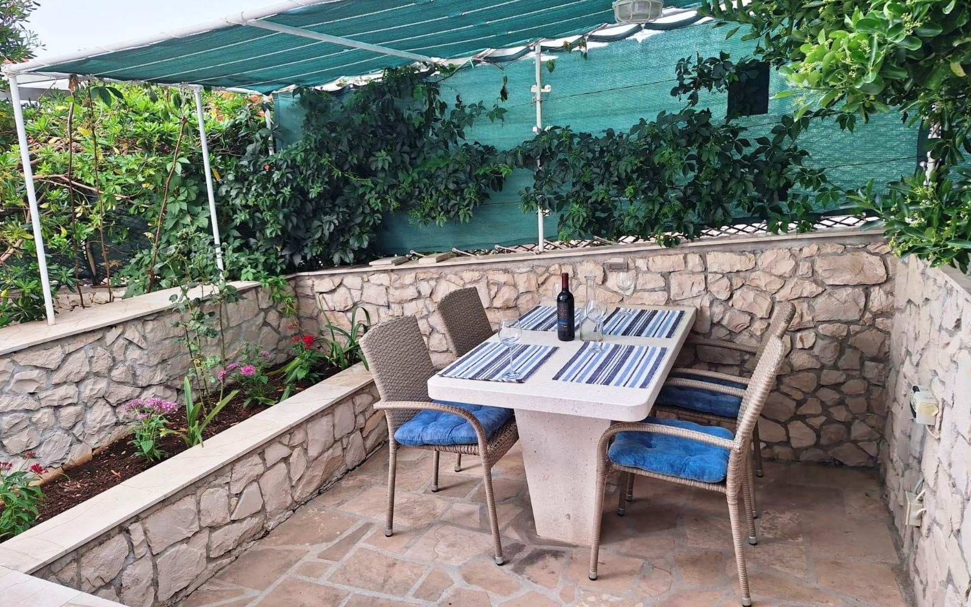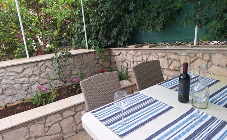 Apartment "Marijana" is thoughtfully designed to enhance your stay, featuring two bedrooms—one with a double bed (and an optional single bed) and the other with two single beds—a well-appointed bathroom, a fully equipped kitchen, and two terraces for private outdoor relaxation. Both apartments have been crafted inside a stone villa, blending traditional architecture with modern comforts, ensuring your stay is both authentic and comfortable. Guests have access to SAT TV (Astra and Hot Bird) channels, fast internet, and Wi-Fi, providing entertainment and connectivity throughout your stay.