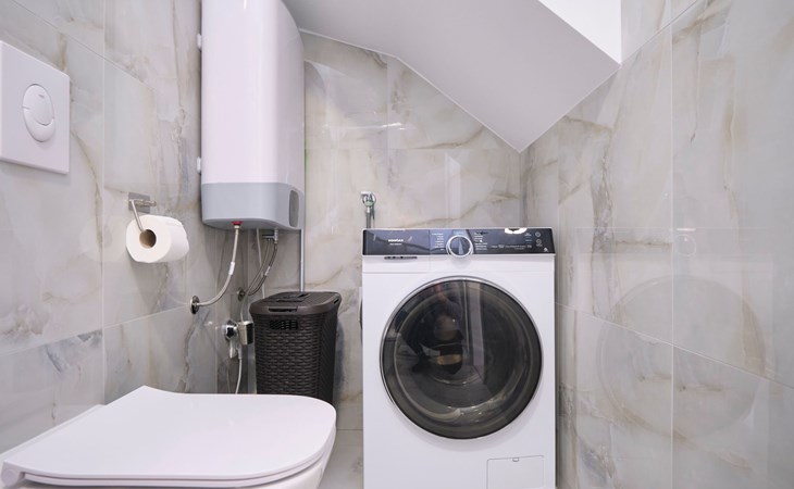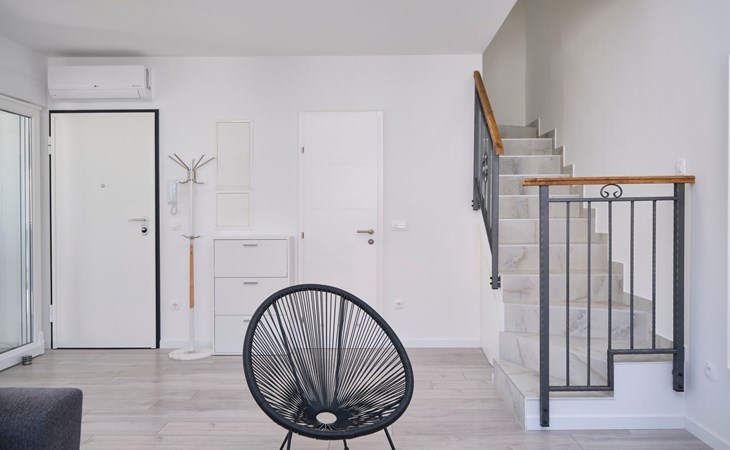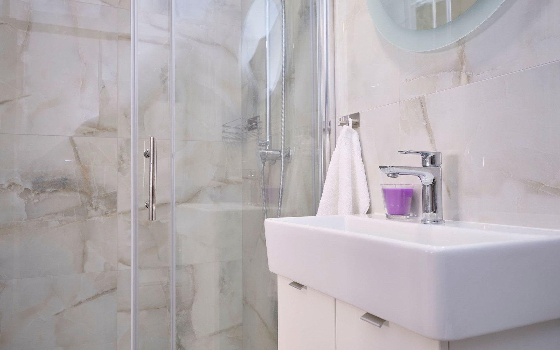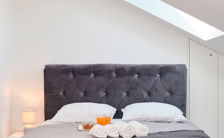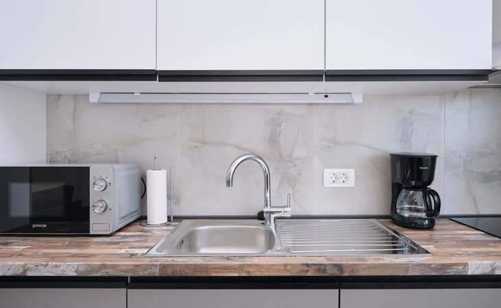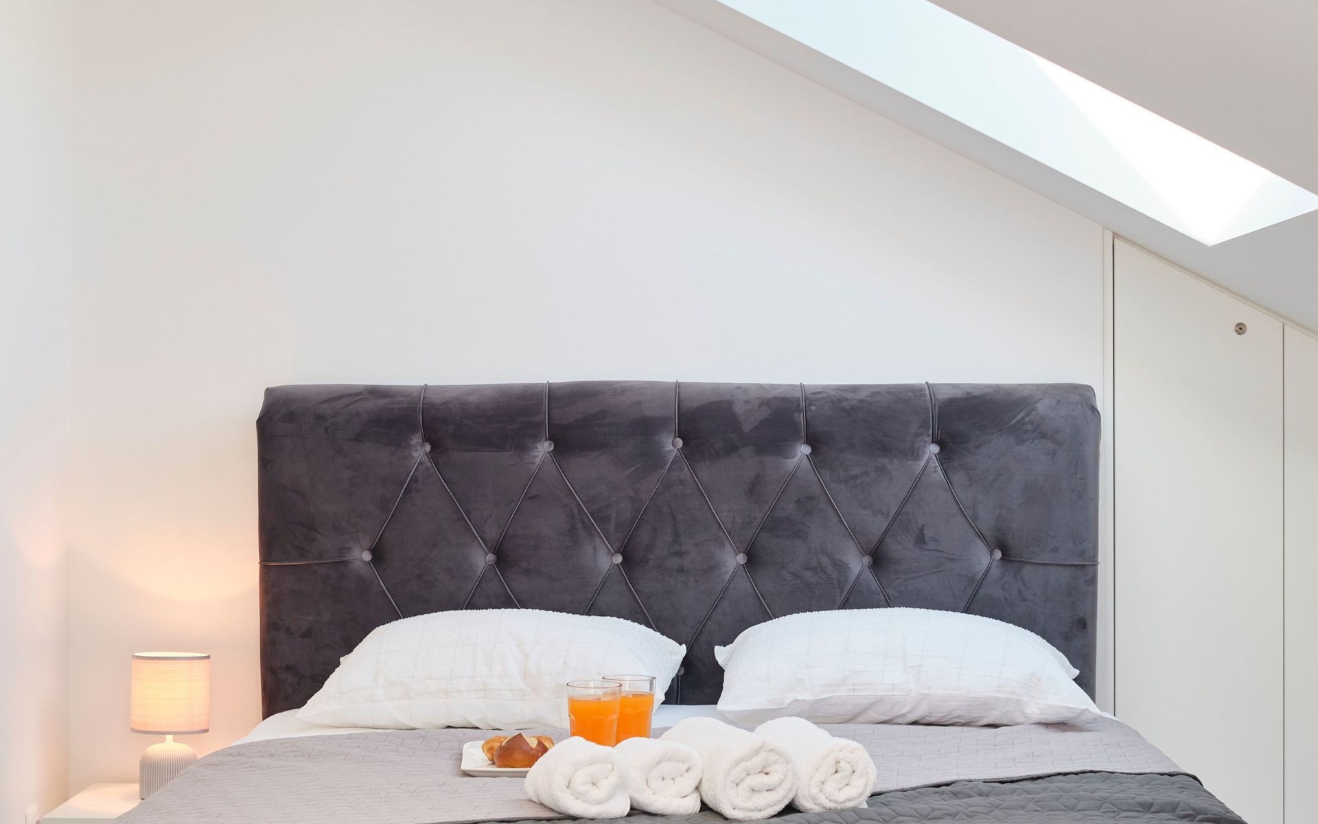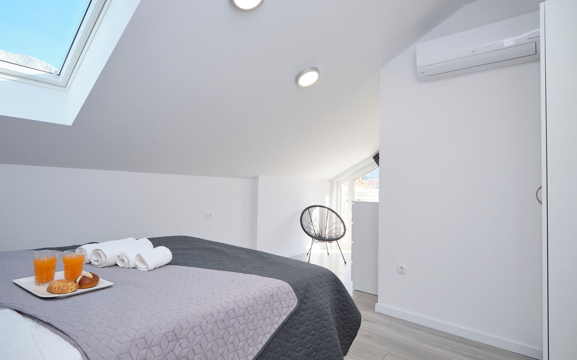 Inside, the apartment is thoughtfully equipped to ensure a comfortable stay. The cozy seating area, paired with a flat-screen smart TV, provides the perfect spot for unwinding after a day of adventure. The kitchen, furnished with stainless steel appliances including an induction hob, filter coffee machine, dishwasher, and electric kettle, caters to all your culinary needs with ample counter space for meal preparation. The spacious bedroom, bathed in natural light, features a luxurious queen-sized bed to ensure a restful night's sleep. For added comfort, the entire space is air-conditioned, and amenities such as free WiFi and a washing machine for personal use are included.