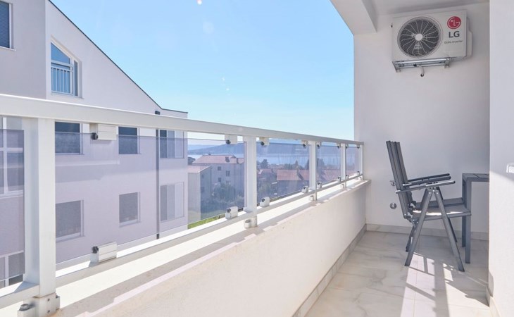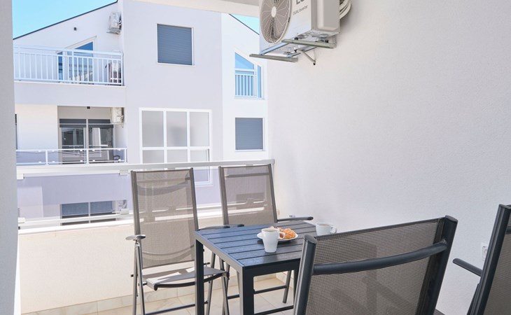 Stepping outside, the balcony presents a tranquil space to enjoy your morning coffee or an evening glass of wine. Though the apartment doesn't explicitly mention views, its positioning on the 3rd floor might offer a chance to gaze at the surrounding landscape. Being on a higher floor also provides a sense of privacy and seclusion, enhancing the peaceful atmosphere of your stay.