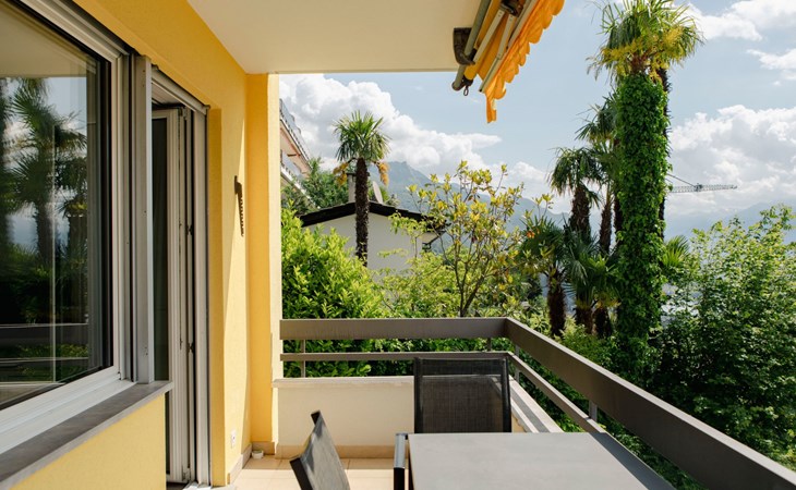 Outside, the balcony invites you to enjoy the peaceful surroundings to the full. It is the perfect place to relax with a good book or simply enjoy the view of Lake Maggiore and the city of Locarno.
